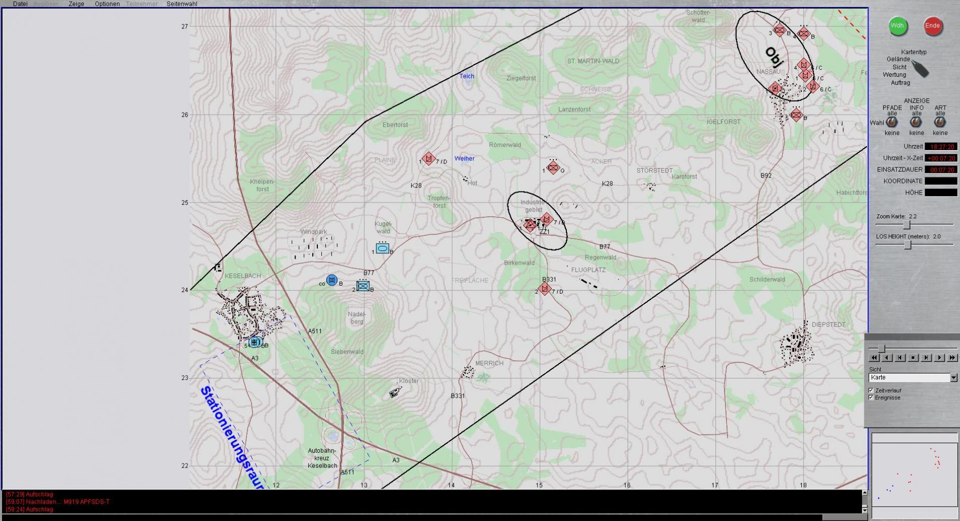 Wenn ROT tatsächlich angreifen sollte, warum tun sie das dann nicht mit ALLEN zur Verfügung stehenden Kräften gleichzeitig ?Was macht der ab und an auftauchende BTR Zug bei Flugplatz, wo kommen die Hinds her und was machen die ? Erneut welches Lagebild soll dargestellt werden ?