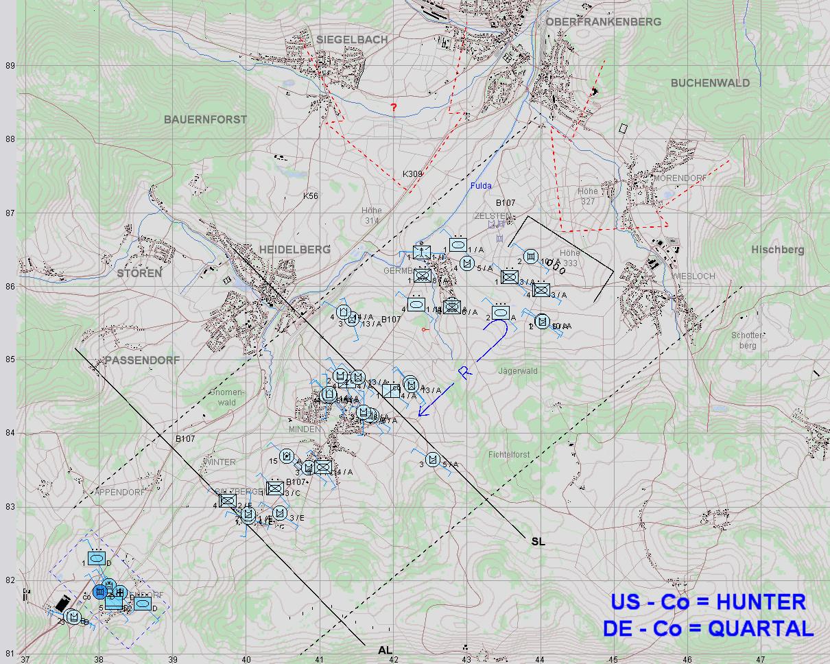 4./911 befindet sich hier SW von der 1. US Panzerdivision, die nach kurzer Zeit auf MINDEN ausweichen wird. Wir müssen dann anschließend auf eine geplante Stellung antreten und diese bis zum Ende halten und sichern.