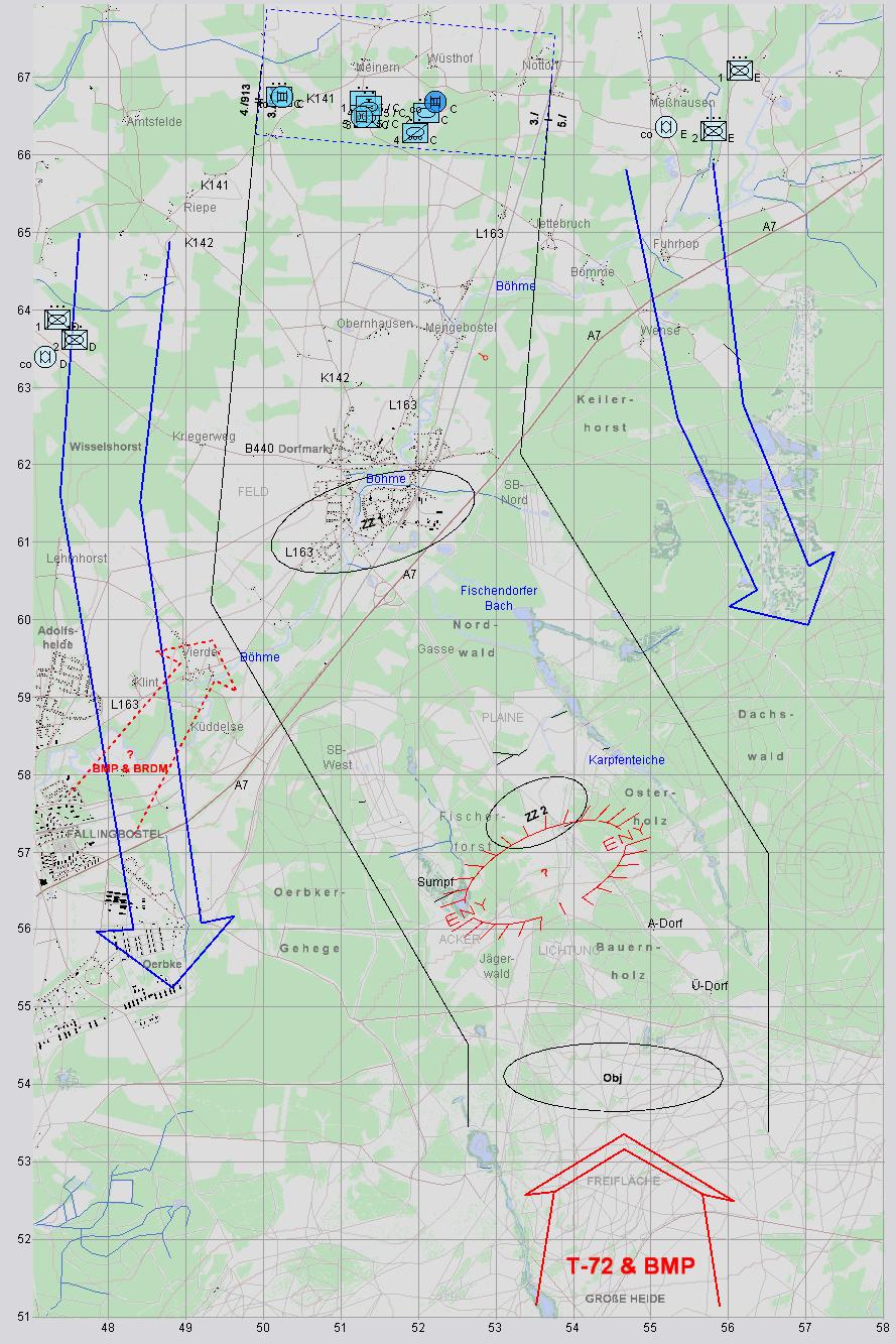 Auftrag: Bis nach Süden ins Objekt anzutreten, um das mögliche Antreten von Rot abwehren zu können.