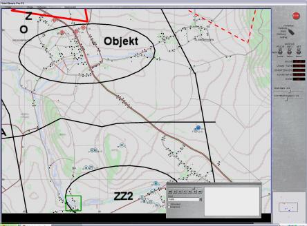 - Sichern Objekt und abwehren Gegenangriff rot: Charlie und Bravo zerschlagen aus flankierenden Stellung im zusammengefassten Feuer roten Gegenangriff, Alpha überwacht von Höhe Berg und kann hier ebefalls wirken,