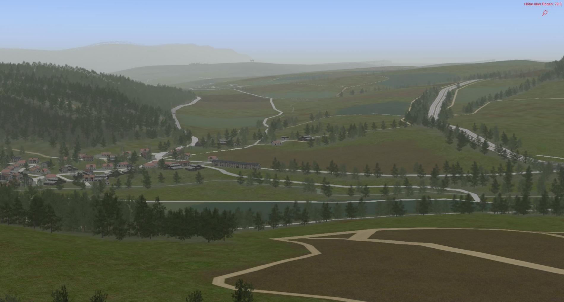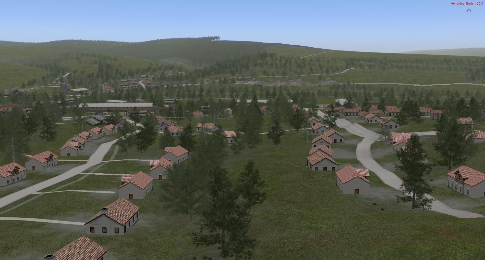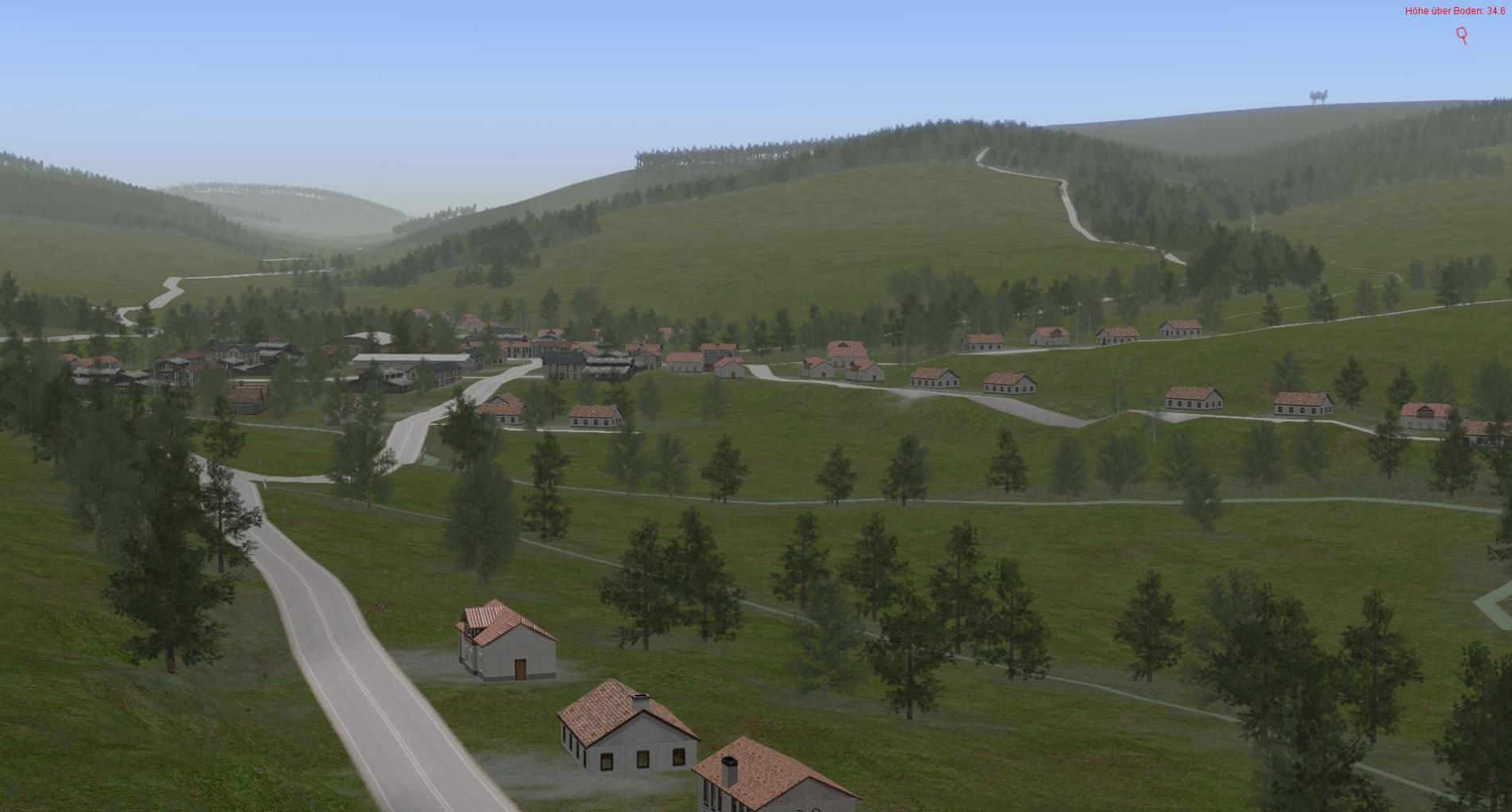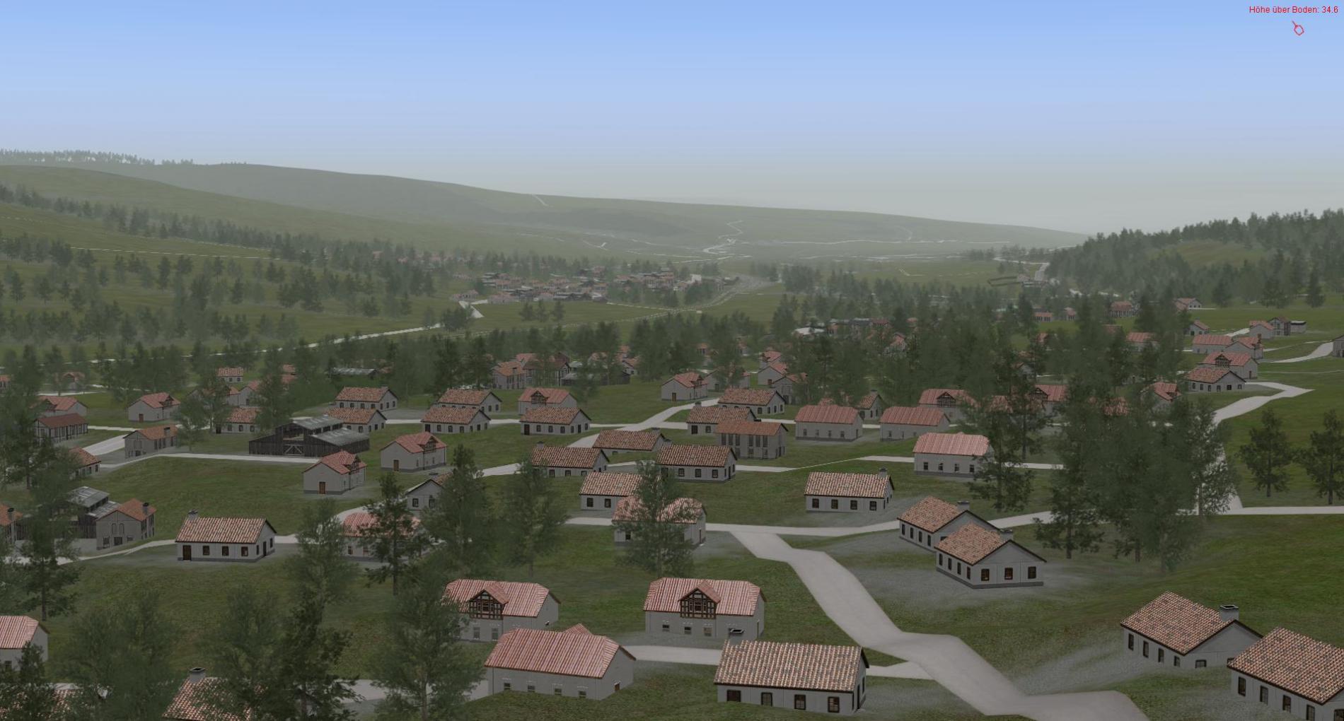 Setzt man nun die Häuser weiter weg von der Strasse um dem Strassenverlauf seine Kanten zu nehmen wird es wieder unrealistisch. Gerade Bergdörfer sind sehr nah an der Strasse angeordnet.
