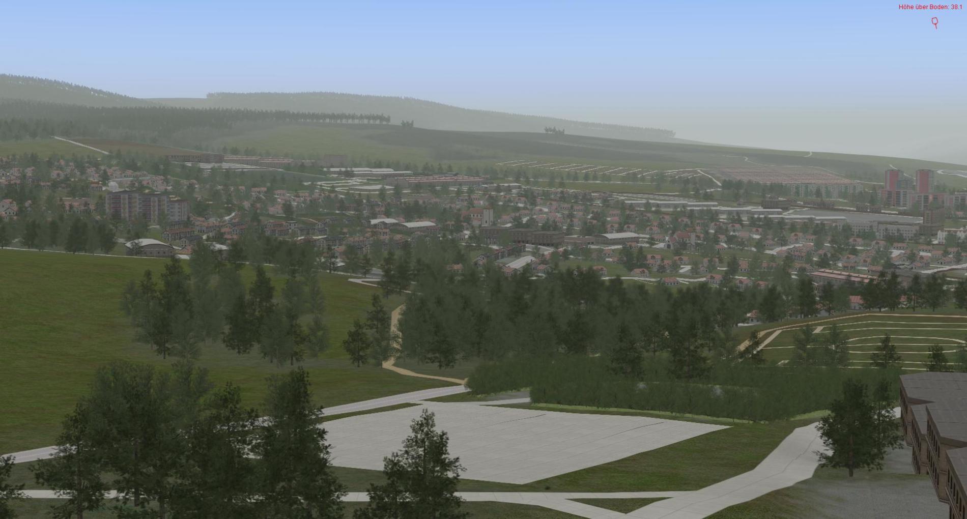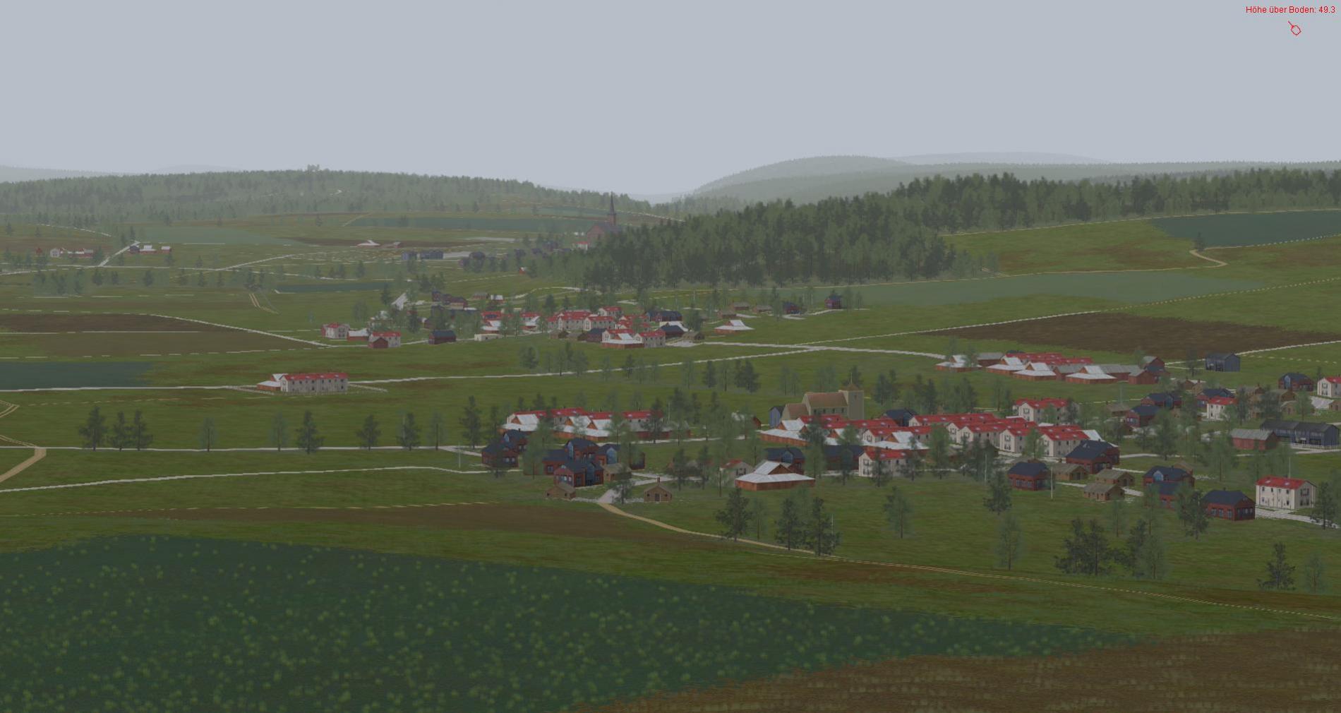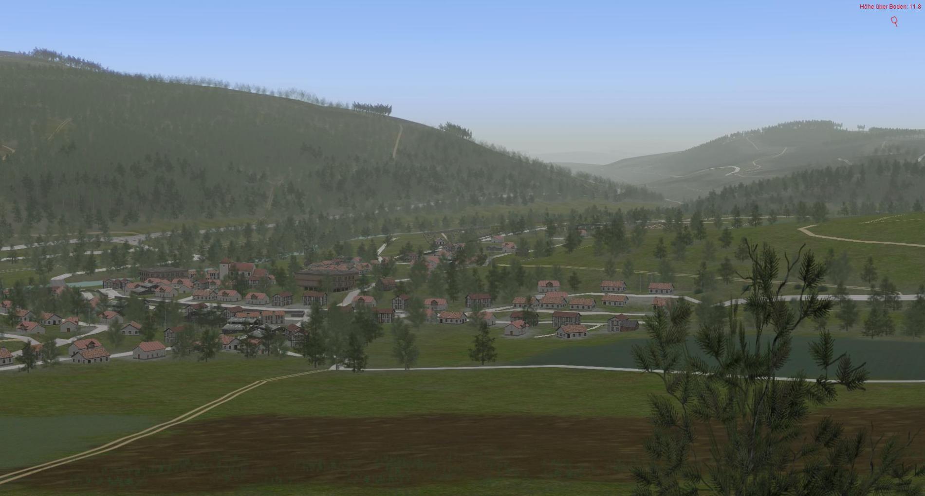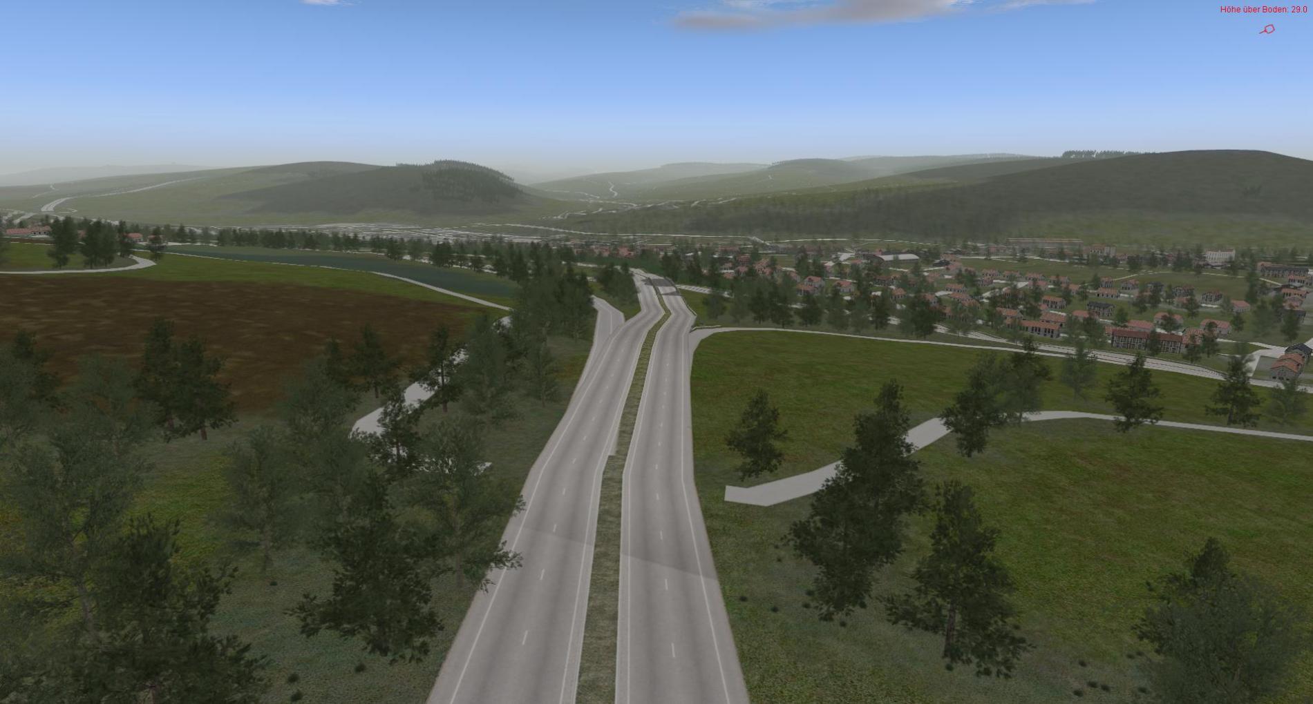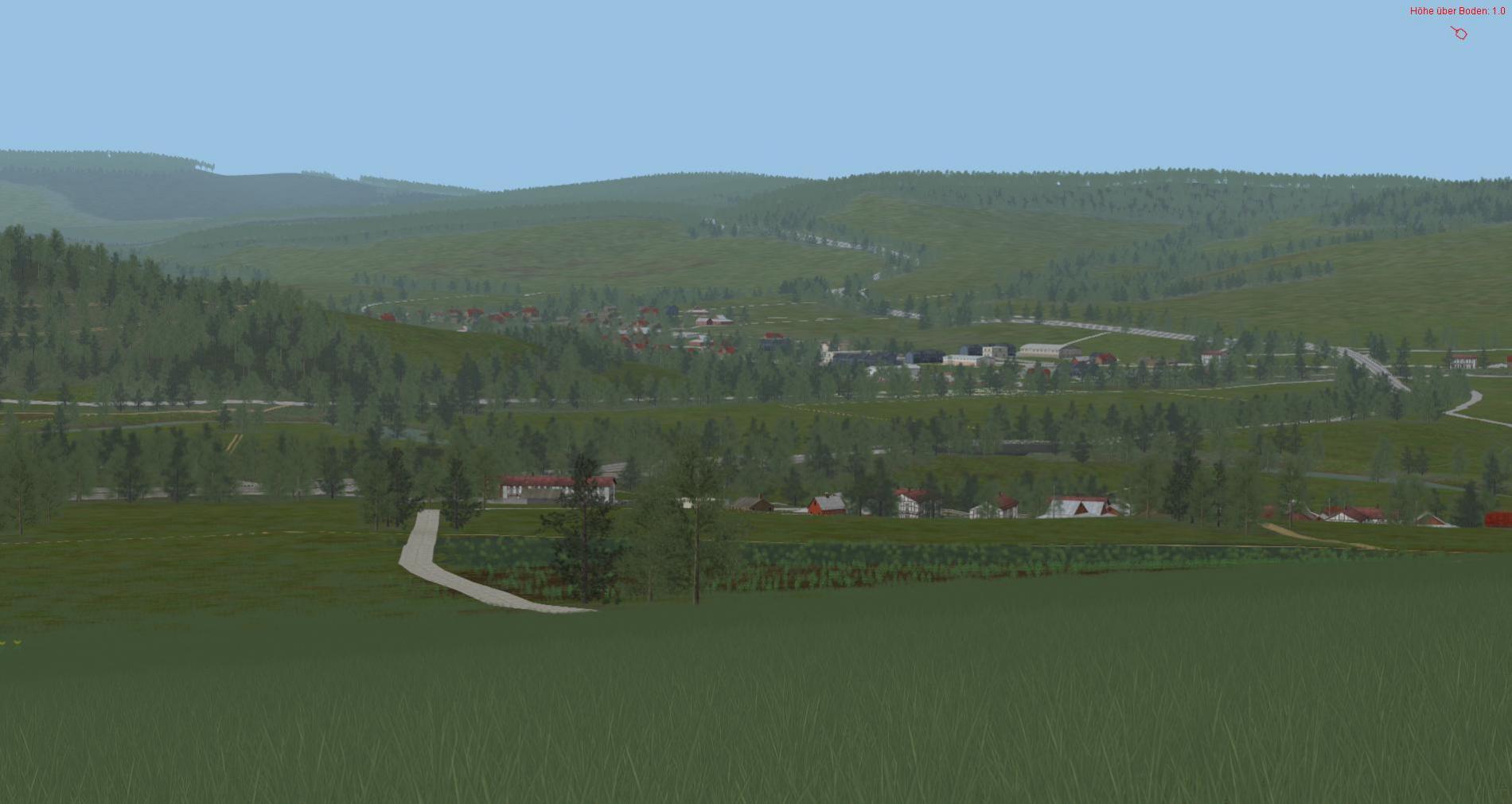 Setzt man nun die Häuser weiter weg von der Strasse um dem Strassenverlauf seine Kanten zu nehmen wird es wieder unrealistisch. Gerade Bergdörfer sind sehr nah an der Strasse angeordnet.