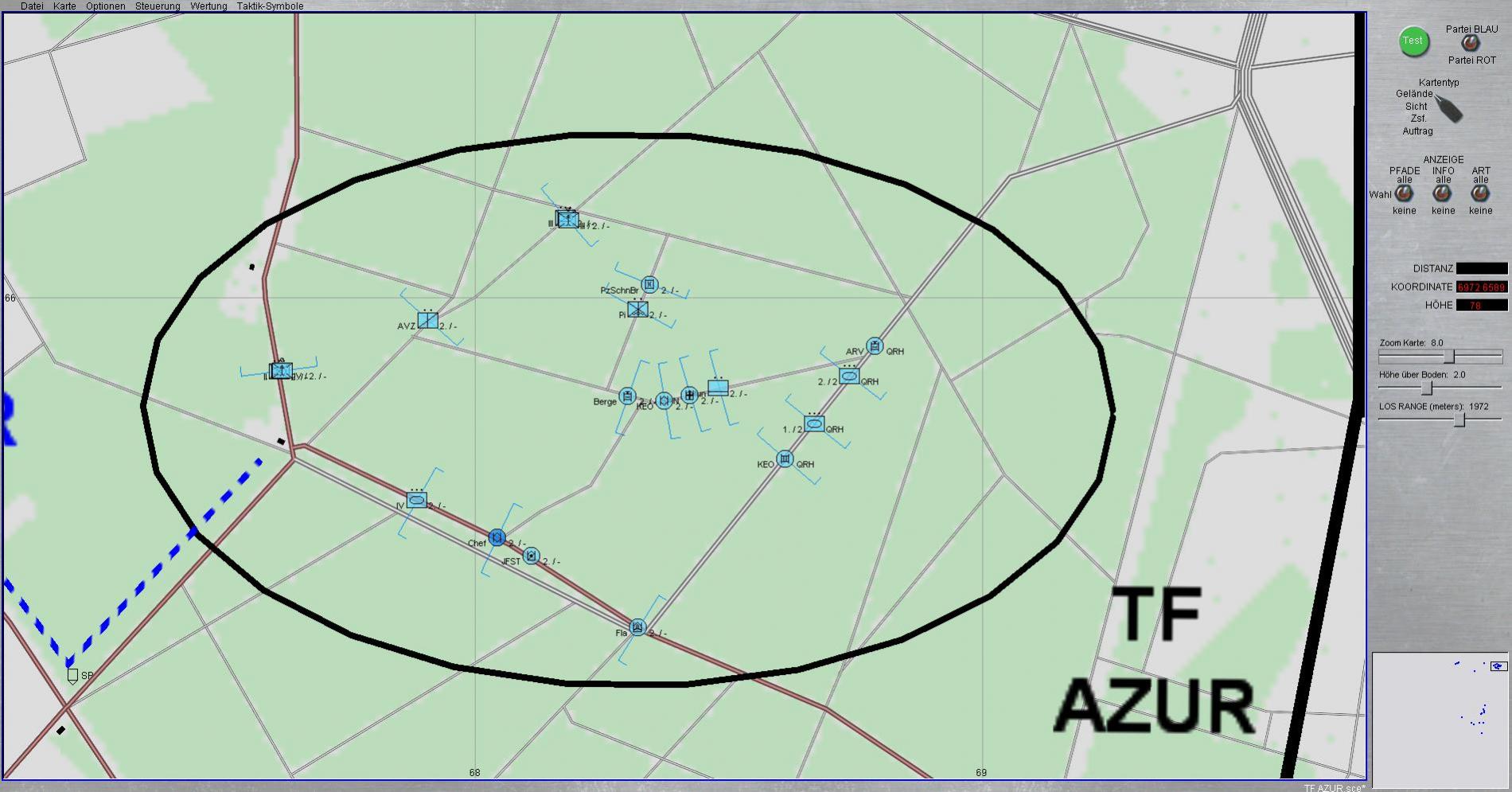 2./-; Teile 4./PzBtl 911 und Teile 2nd Co 1st Bn QRH Regiment (UK) bilden TF AZUR und schließt z.Zt Versorgung ab.
