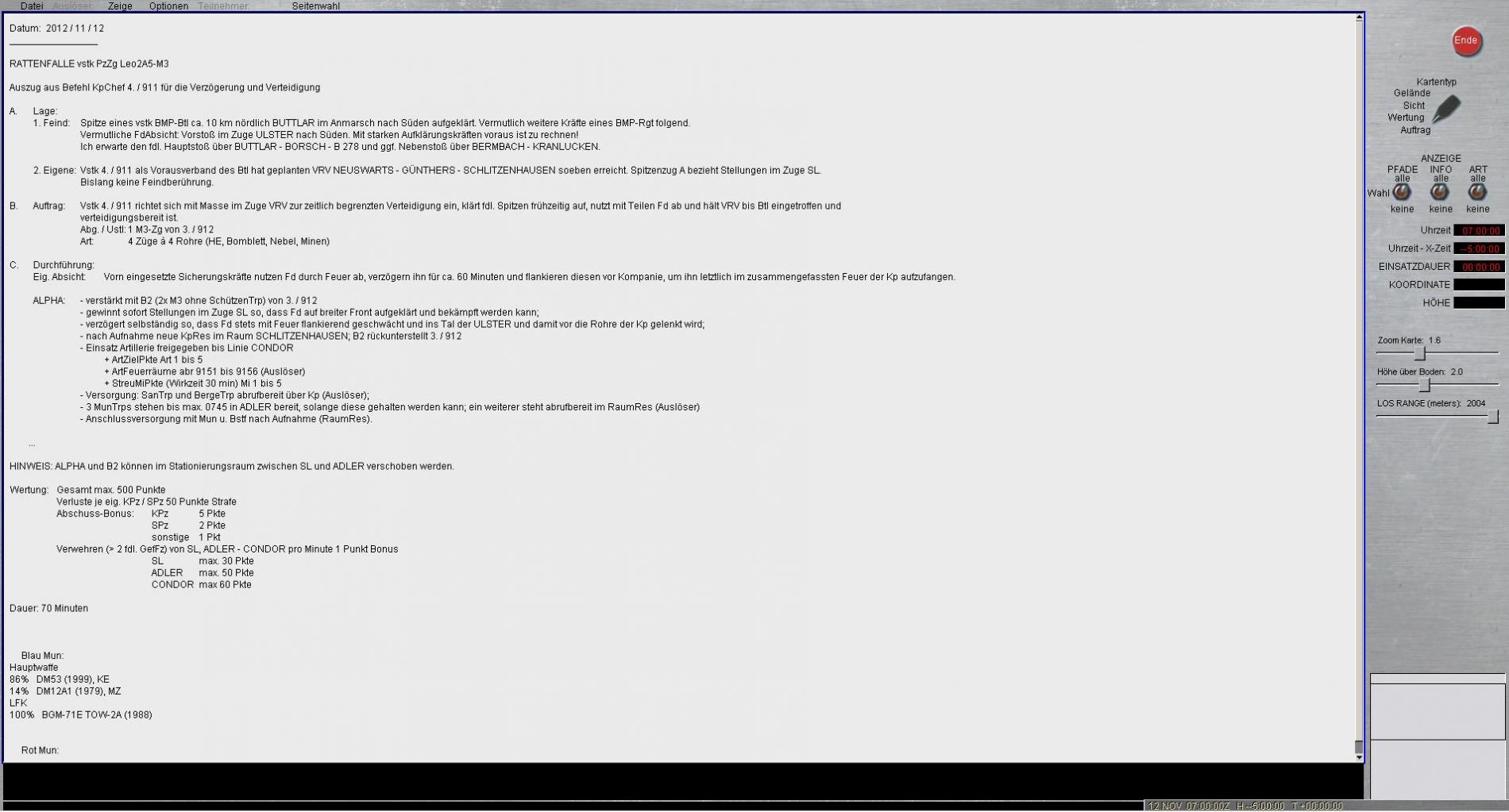 Feind verfügt mit Hauptsachen über Schützenpanzer die LFK lediglich aus dem Stand abfeuern können, die verfügbaren Kampfpanzer sind aber als gleichwertig zu betrachten und werden den Hauptstoß führen.