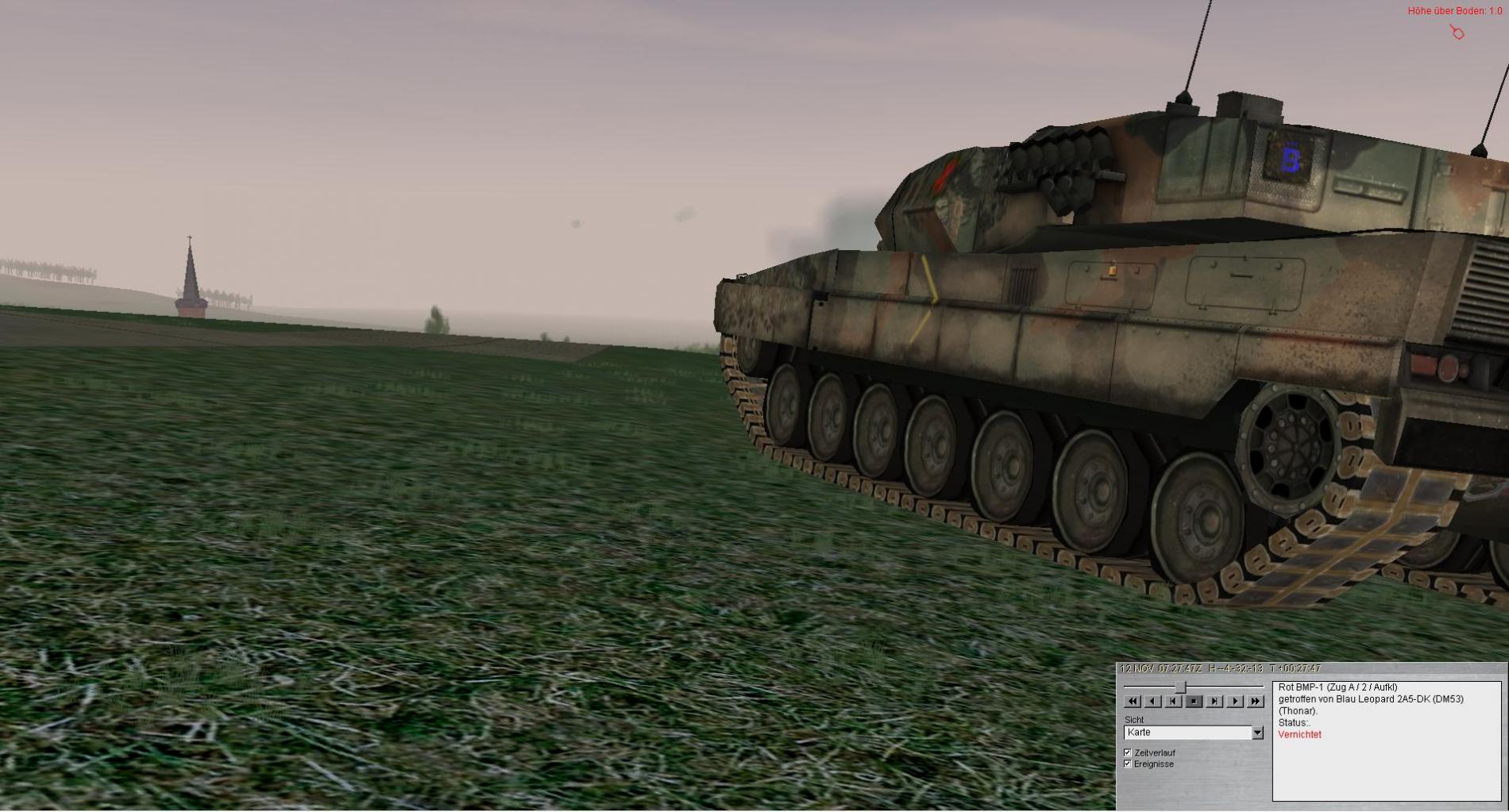 A2 hat Stellungen westlich UNTER- /OBERROTHOF erreicht und überwacht Richtung KRANLUCKEN. A2 meldet Kettengeräusche und Sichtkontakt zu BMP Zug.