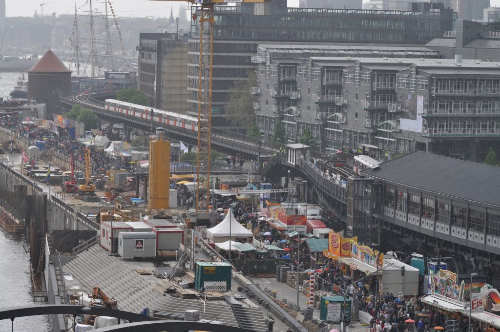 Komme ich gerade her. Echt voll. Ich habe die Chance genutzt und bin mit dem Korb von einem Leiterwagen der Feuerwehr in die Höhe und habe dort Bilder gemacht. Morgen um zehn geht es auf die gorch fock.