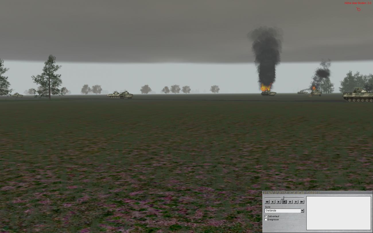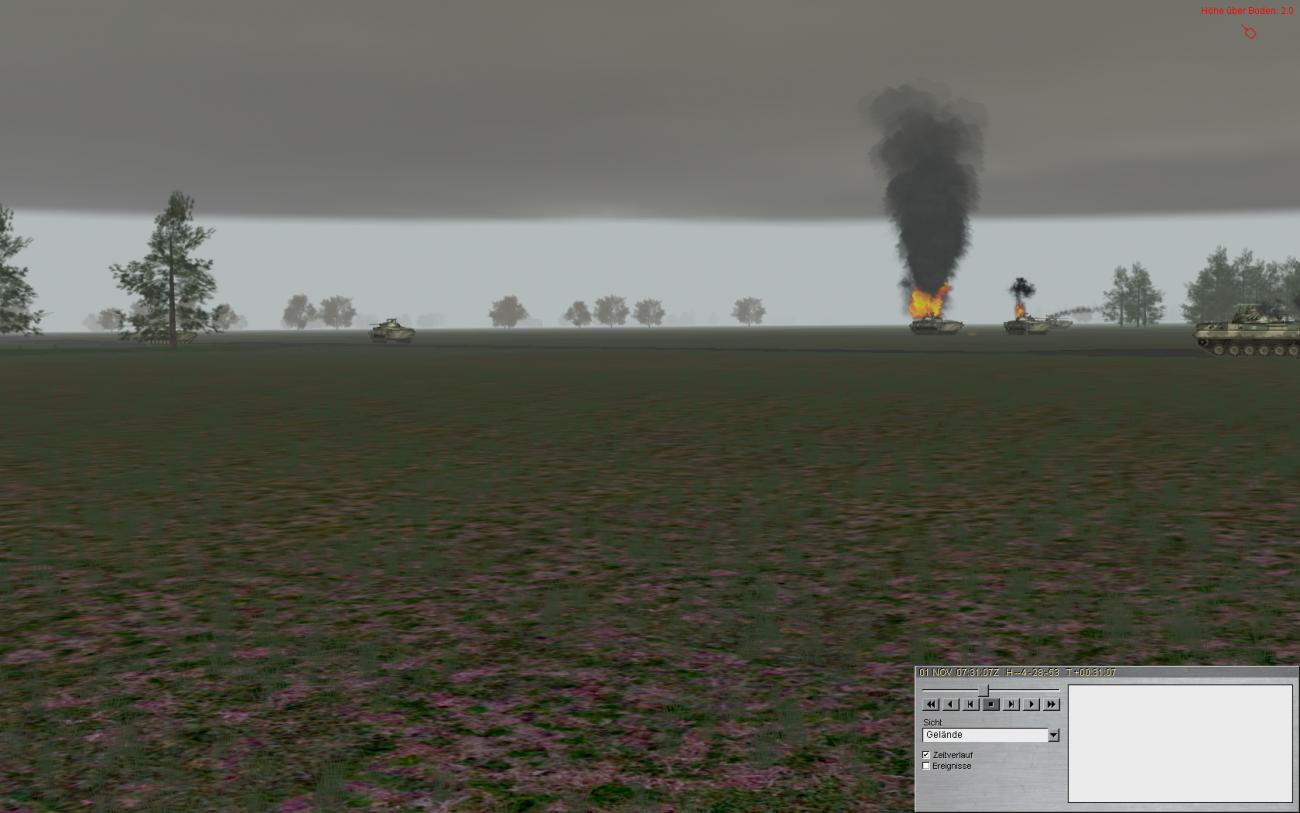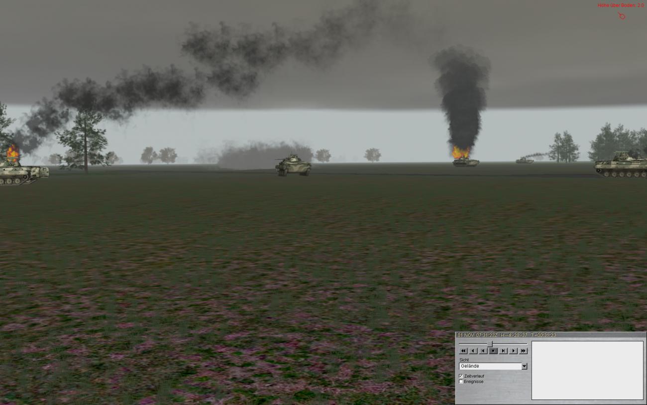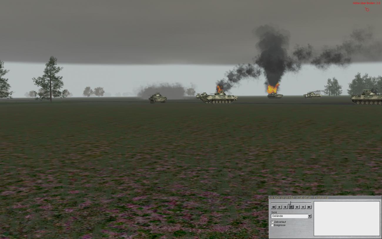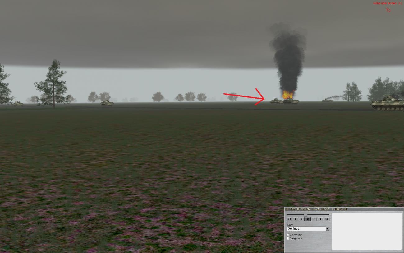 Jedenfalls, man beachte den BMP der noch funktionsfähig ist (siehe Pfeil). Der wird von mir abgeschossen und fährt brennend weiter mit nem leichten dreher nach rechts. Ist dann nach ein paar Sekunden auch zum Stehen gekommen.
