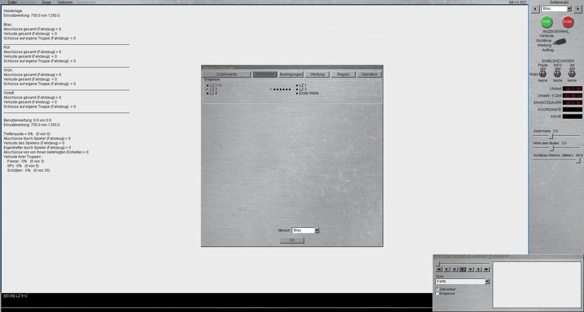 Tritt der Fehler auch auf, nachdem Steel Beasts neu gestartet bzw. der Szenario-Editor verlassen und dann mit dem Szenario neu geöffnet wurde?