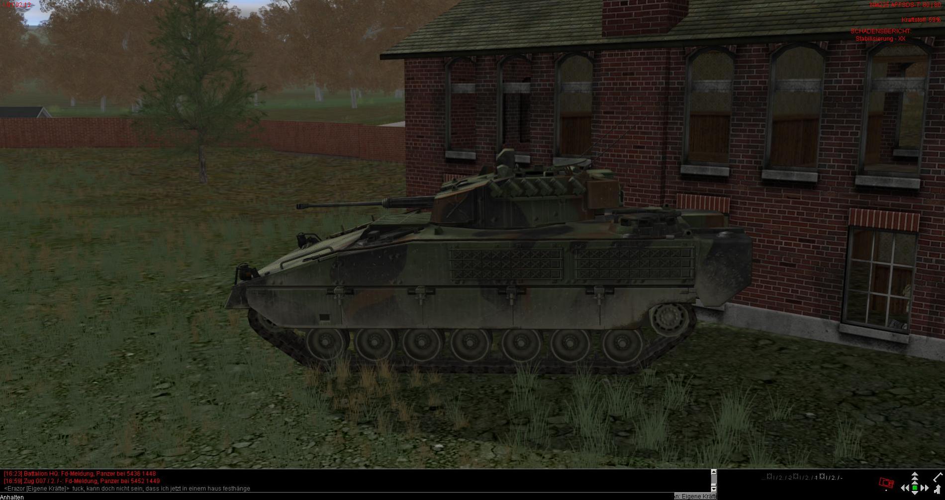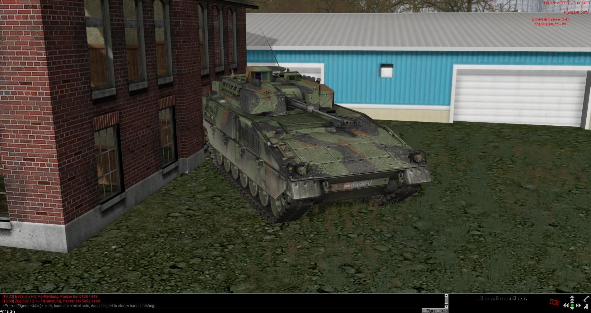 Ich hatte vor kurzem das Problem, dass ich mit dem Heck meines Panzers in ein Haus gekommen bin. Dann hat sich das Fahrzeug dort festgefressen. Selbst der Einsatz eines anderen Panzers, mich da durch gezieltes Anfahren wieder herauszubringen, schlug fehl.