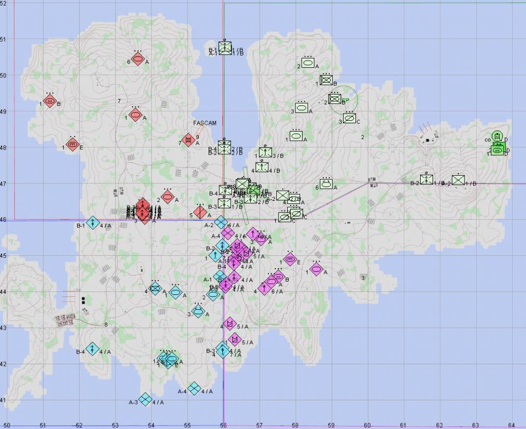 This was the final mission in the OPV4 campaign. It began with a risky move by the Canadians trying to drive their tanks through a British minefield, but it paid off, and they were able to link up with their forces in their beachhead. This move diverted UK forces from the south in an attempt to contain the Canadian tanks, and the Brits were successful in hunting them down with the help of a Danish tank platoon. The combined UK/Danish force also cleared out a number of NZ LAV's that had crossed the bay in the north. In the south, the US and Denmark traded shots, but eventually Denmark was able to break out in the south and UK tanks helped the advance to the west.