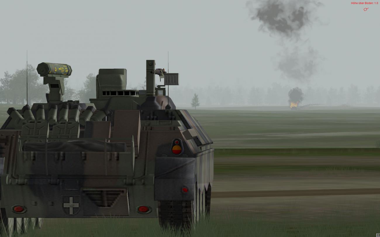 Am südlichen Rand der Schießbahn 2B, steht ein PzJ-Zg (Jaguar) so in Stellung, dass Dieser flankierend Richtung Osten überwachen kann.