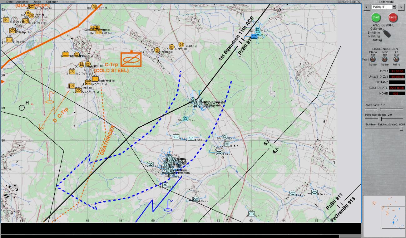 Ist ein größeres COOP-Szenario. 1st Squadron 11th ACR (in GOLD) und teile der PzBrig 91 (in BLAU) - also Teile vom PzBtl 911, sowie der 4. JgBtl 916 und Pioniere.
