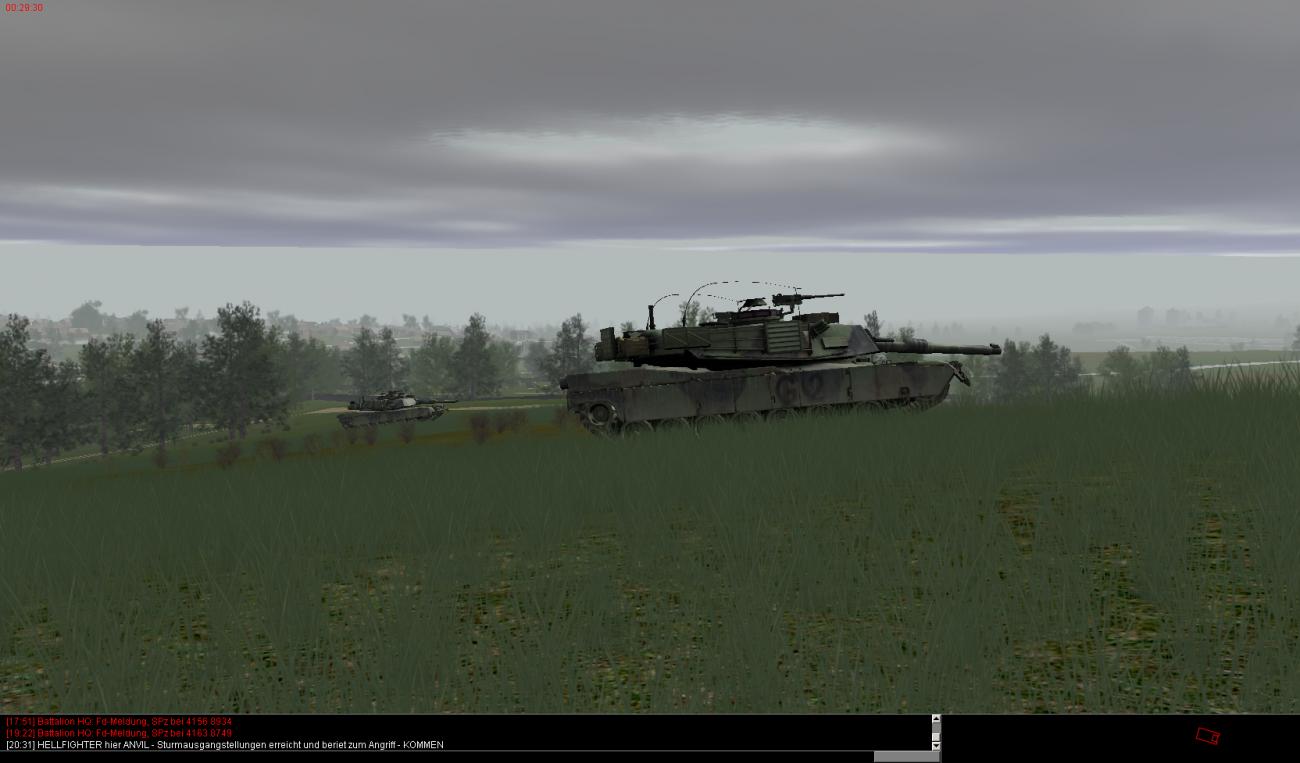 Der Angriff von ROT, in Stärke einer Brigade, ist südlich von FULDA zum erliegen gekommen, wobei ROT fast 60% der Kampfkraft verloren hat. Die 3rd Squadron 11th ACR hat einige Kilometer östlich, die Nachschubwege zur fdl Brigade abgeschnitten.