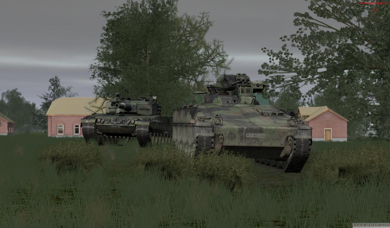 Zur Not kann man noch einen Kampfpanzerhalbzug Leo2A4 anfordern (bleibt KI), um eventuell zu starken Feind aus deren Stellungen zu drücken, falls die Artillerie wieder vorbei ballern sollte. ![]()