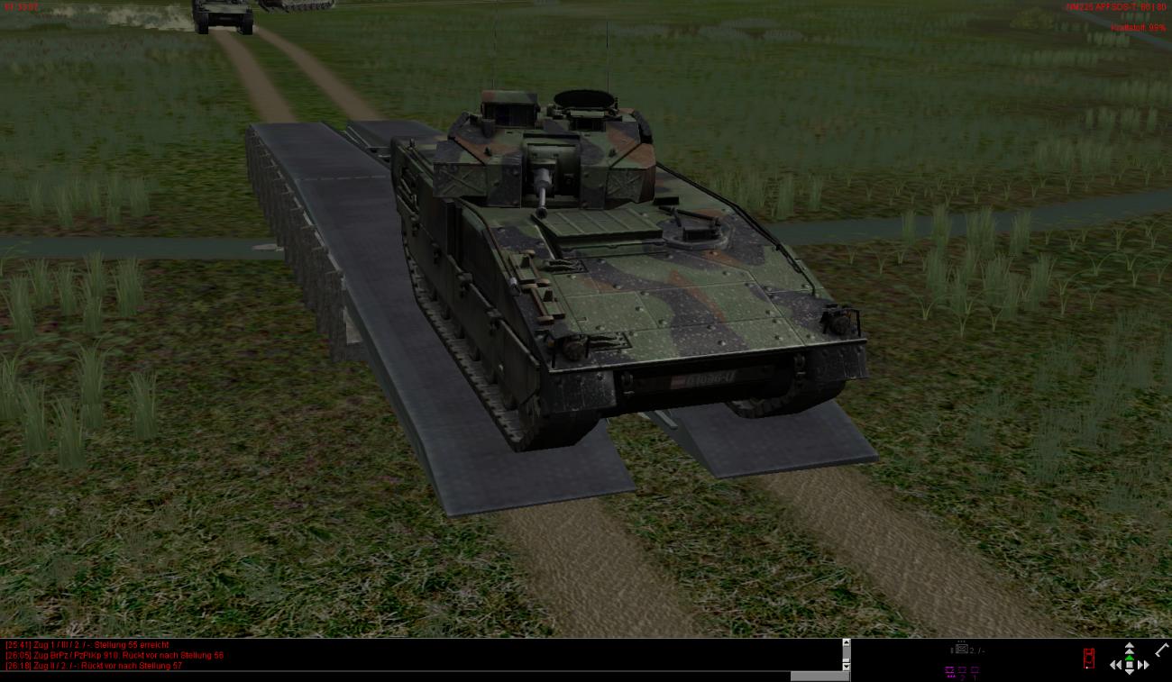 Die beiden Mörserzüge fahren erst noch in die Feuerstellung rein und können dann erst den Grenadieren mit Steilfeuer unterstützen.
