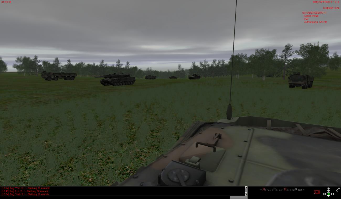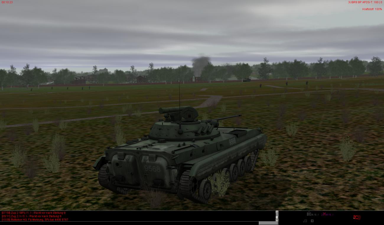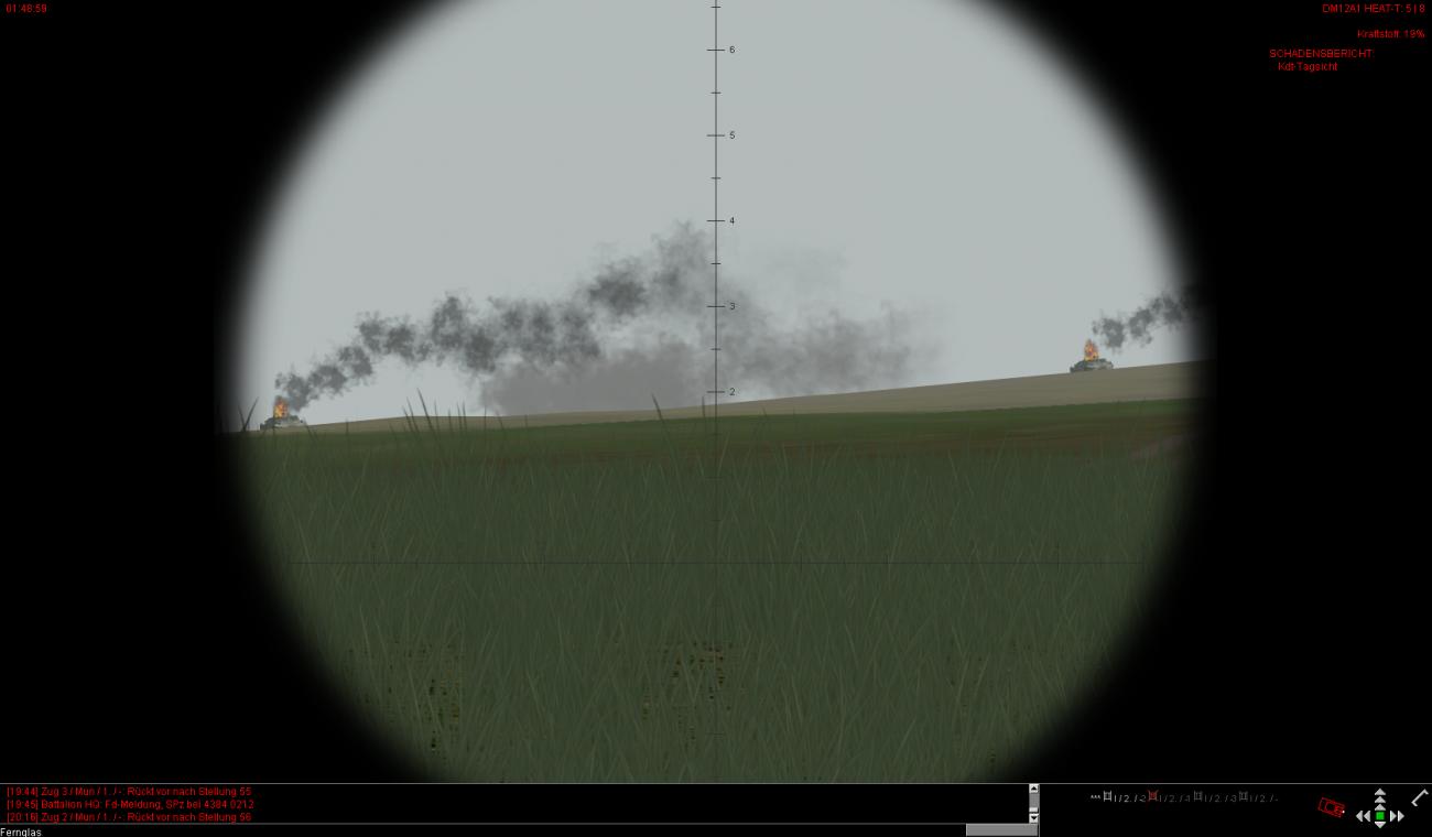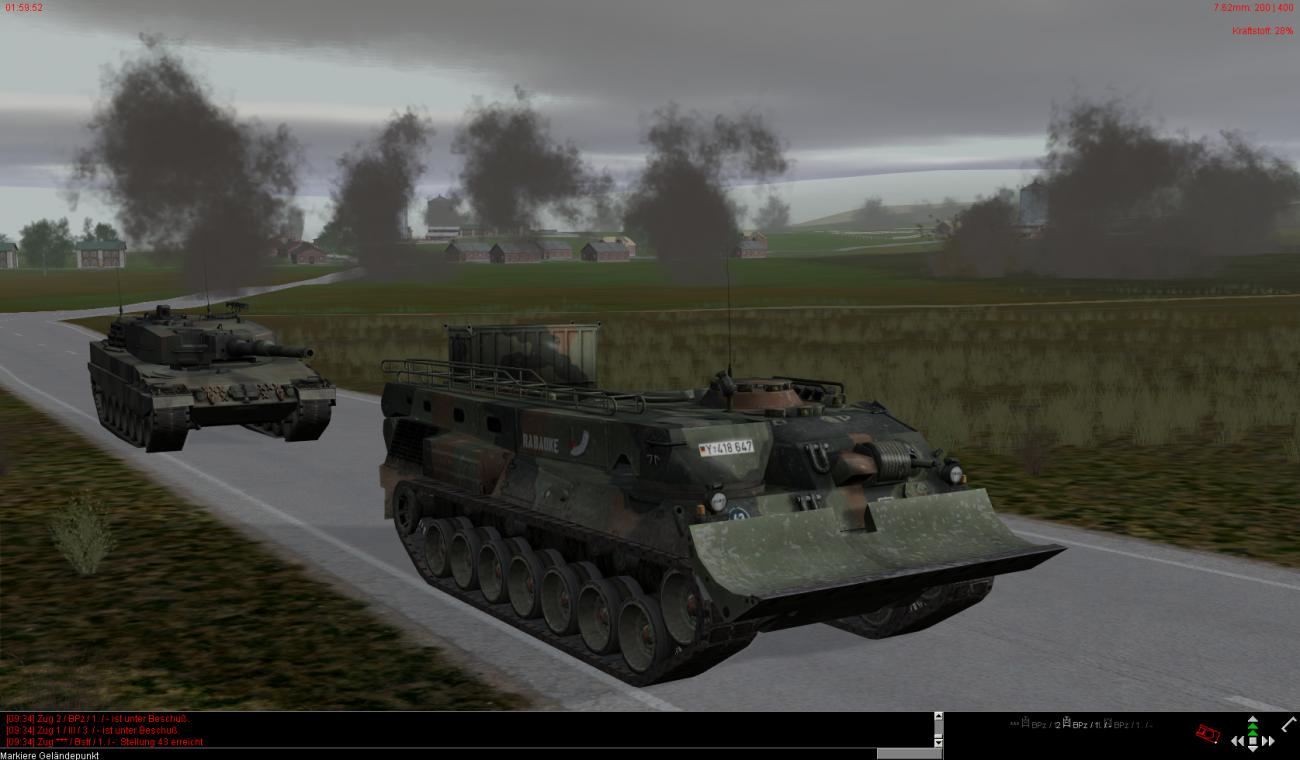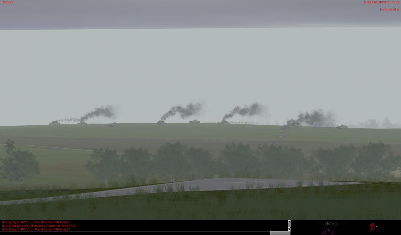 Die vorderen dezimierten Kompanien haben auch teilweise noch leichte bis mittlere Schäden und sind zudem auch noch auf ca. 30-40% heruntergeschossen. Ein paar Fahrzeuge stehen auch bewegungsunfähig noch weiter vorne, können aber noch rechtzeitig von BergeTrps herausgeholt und instand gesetzt werden.