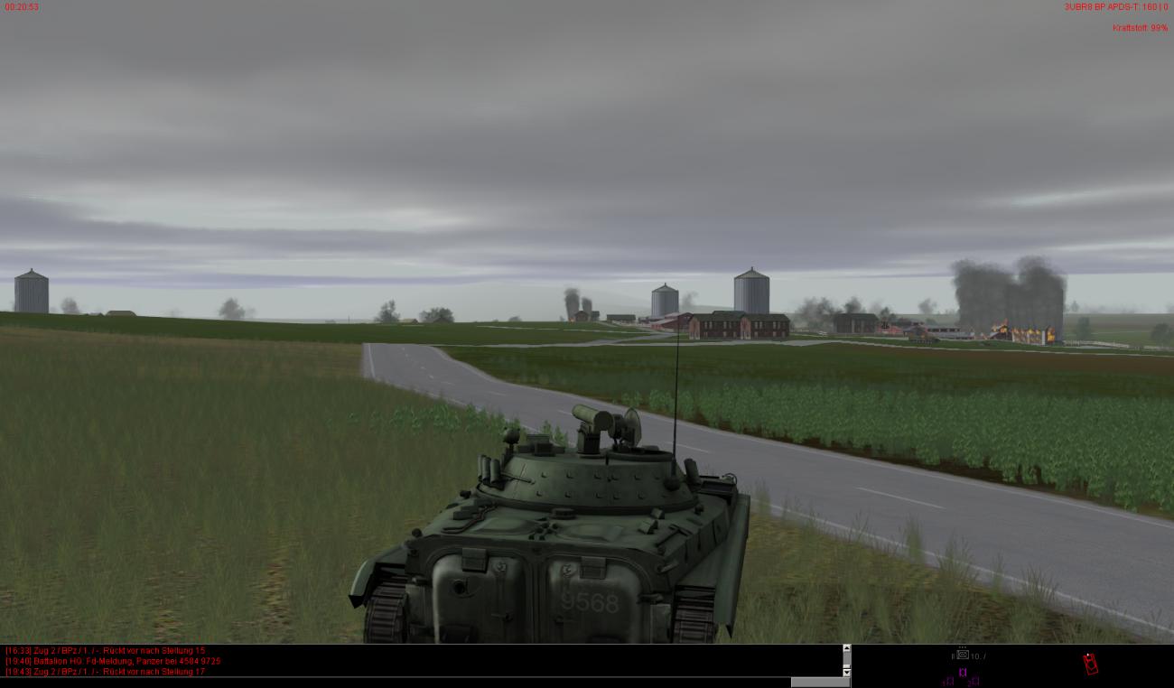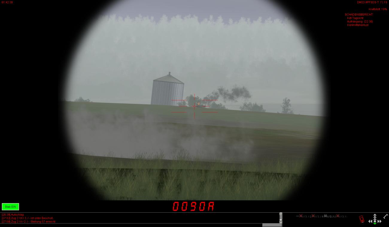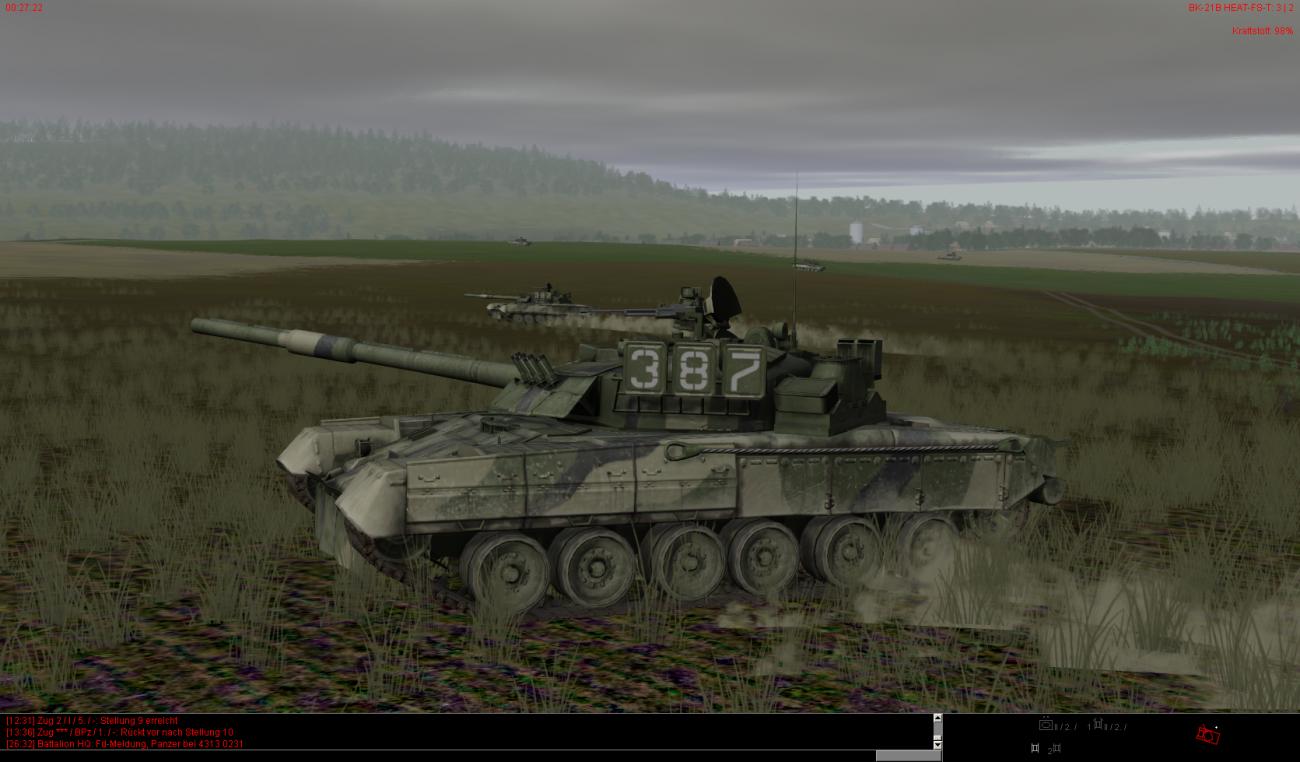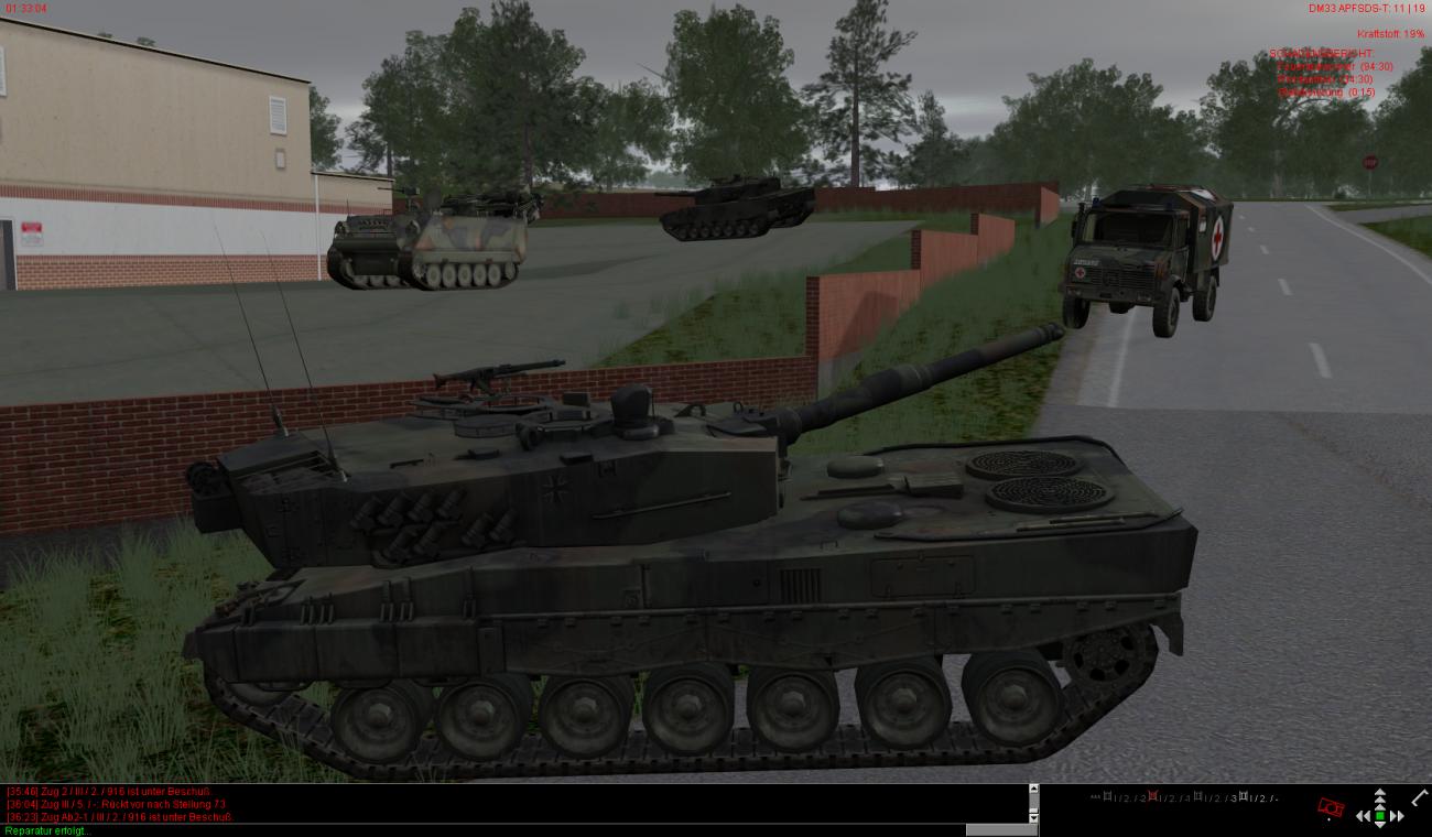 Die vorderen dezimierten Kompanien haben auch teilweise noch leichte bis mittlere Schäden und sind zudem auch noch auf ca. 30-40% heruntergeschossen. Ein paar Fahrzeuge stehen auch bewegungsunfähig noch weiter vorne, können aber noch rechtzeitig von BergeTrps herausgeholt und instand gesetzt werden.
