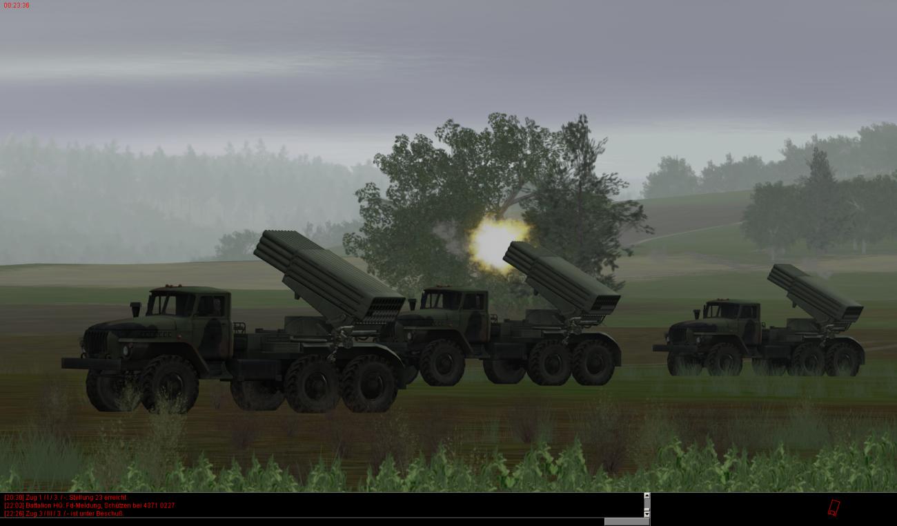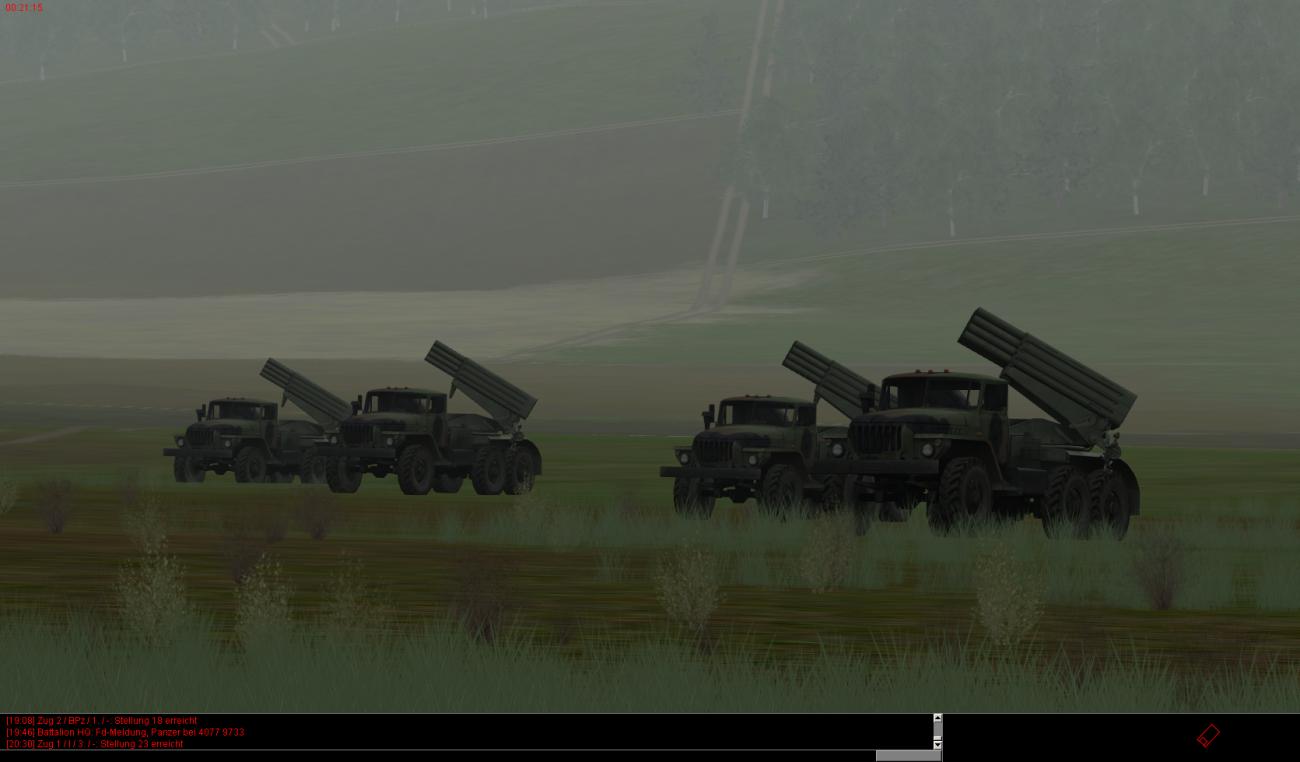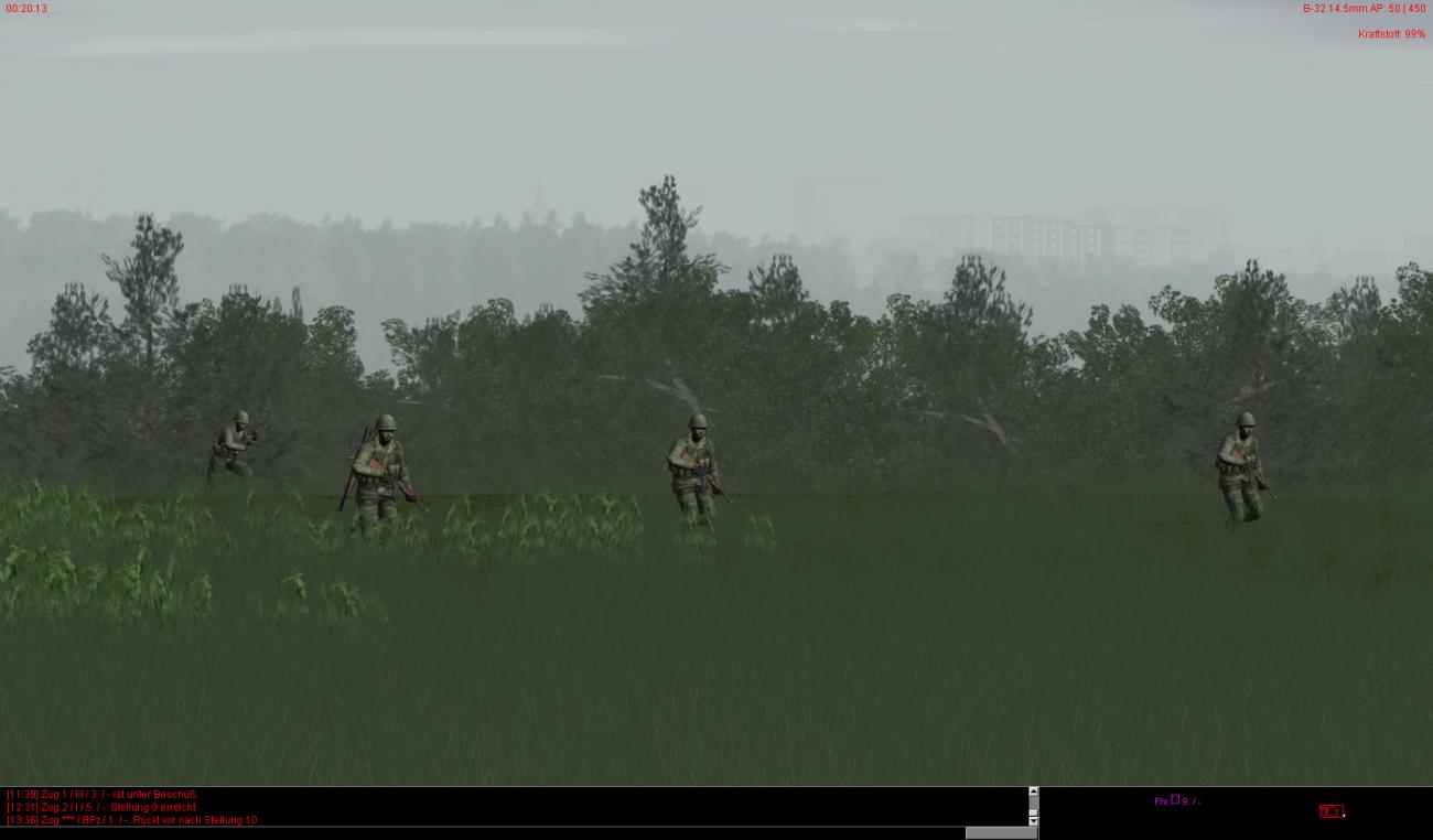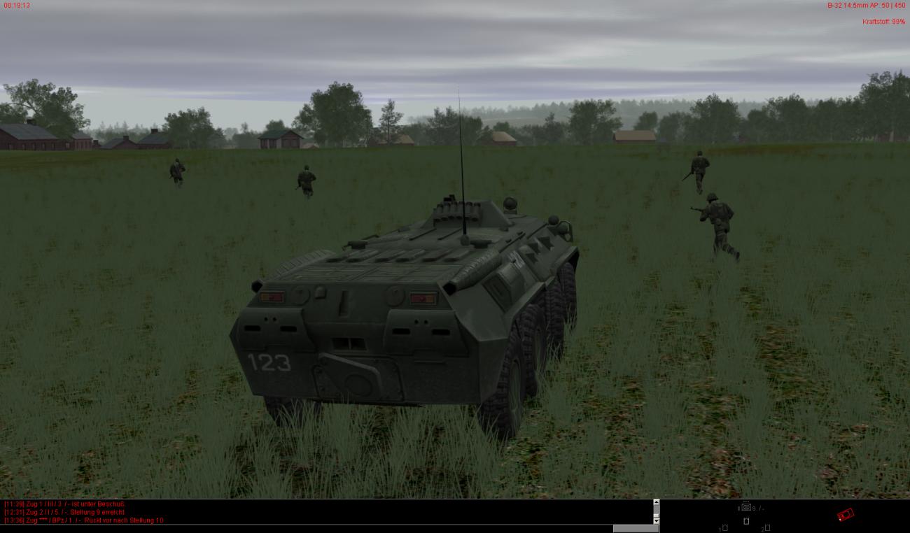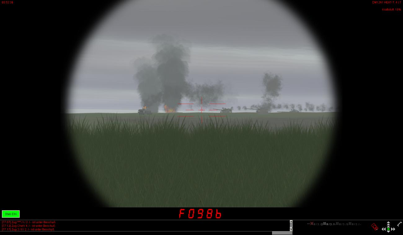 Die vorderen dezimierten Kompanien haben auch teilweise noch leichte bis mittlere Schäden und sind zudem auch noch auf ca. 30-40% heruntergeschossen. Ein paar Fahrzeuge stehen auch bewegungsunfähig noch weiter vorne, können aber noch rechtzeitig von BergeTrps herausgeholt und instand gesetzt werden.