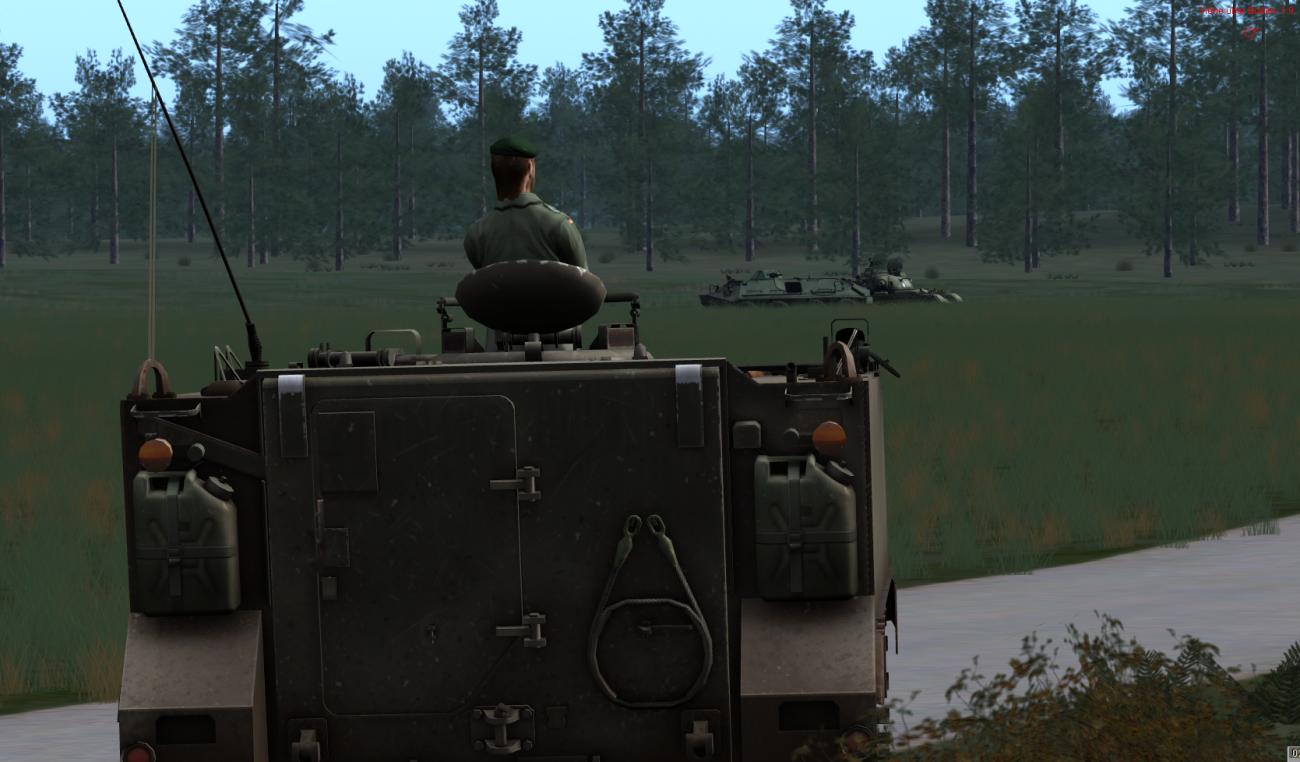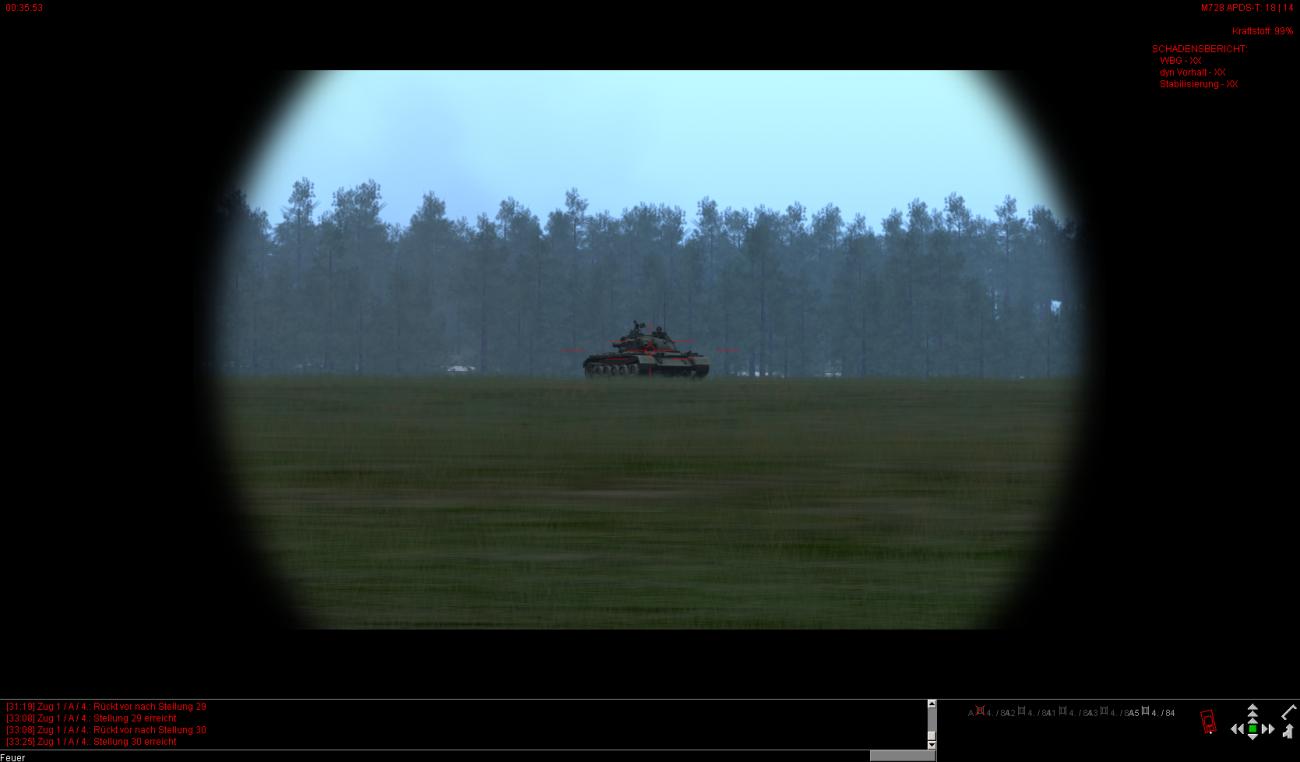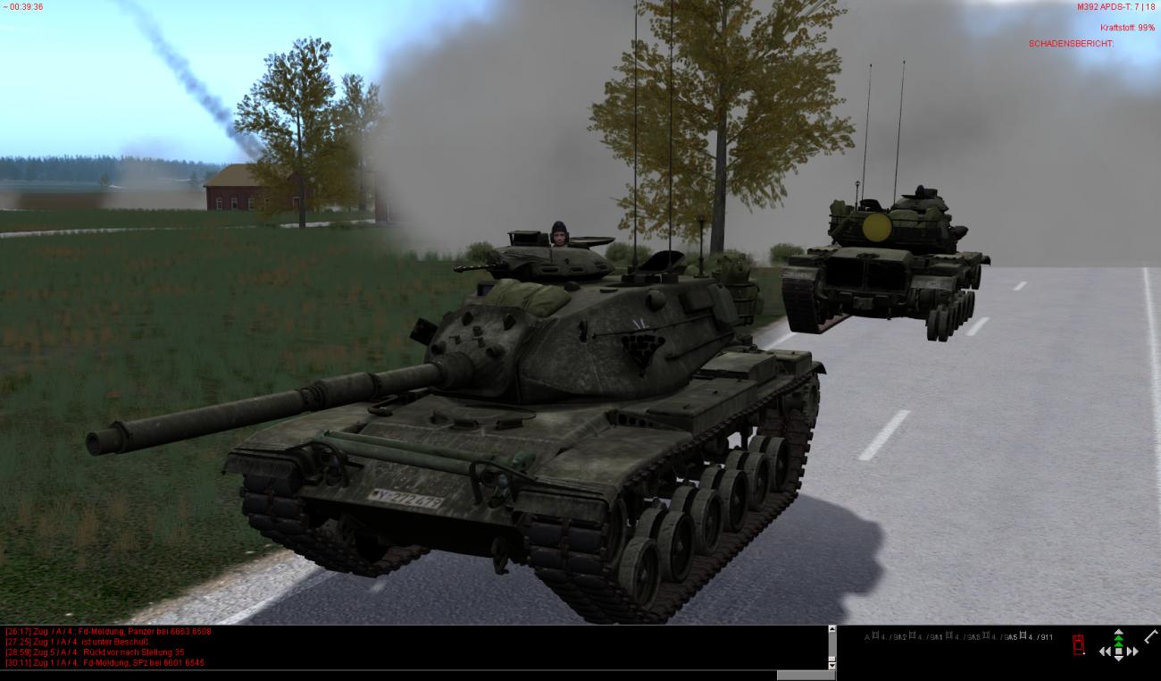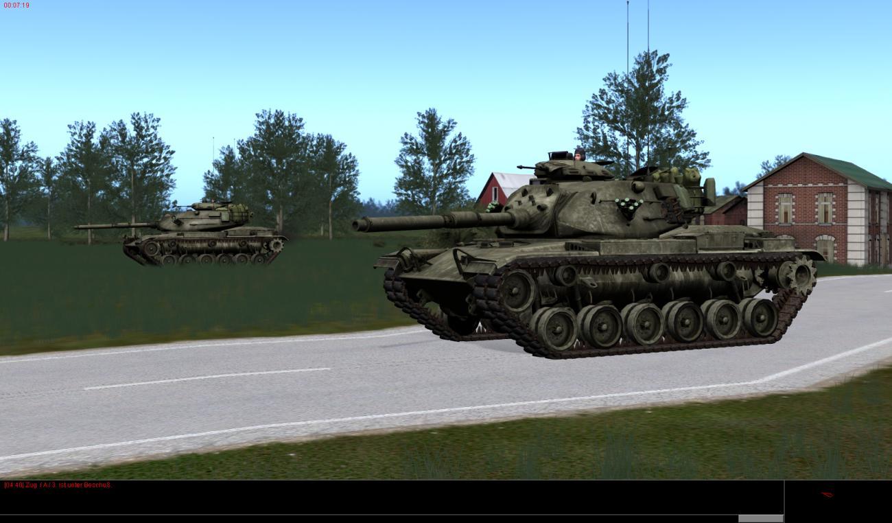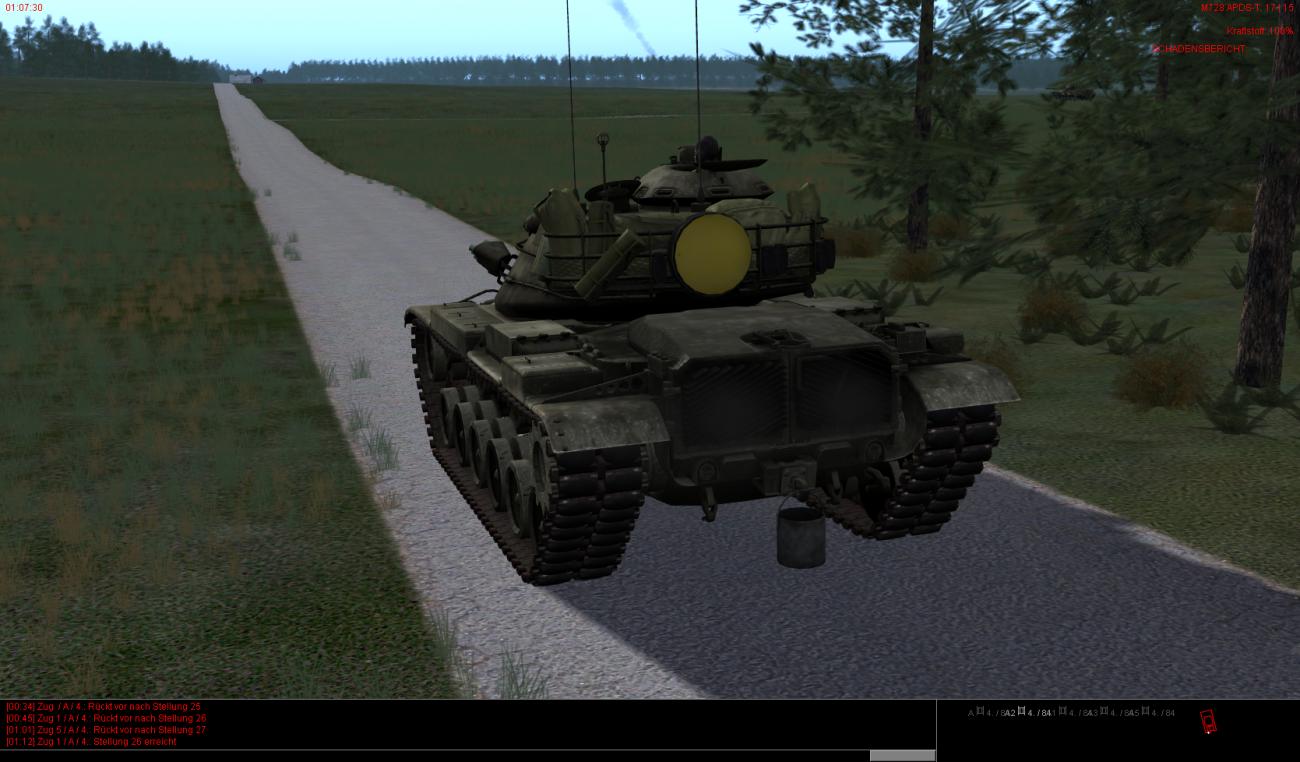 Ein gemischter Panzerzug (3x M48 + 2 M113A2G) eingesetzt in der Verzögerung. Der Rest des Panzerzuges ist KI und verzögert ebenfalls rechts von uns. Wir sind im Gefechtsstreifen der 3./72 eingesetzt, die einen erwartenden Nebenstoß des Hauptangriffs auf Munster-Süd abwehren soll.