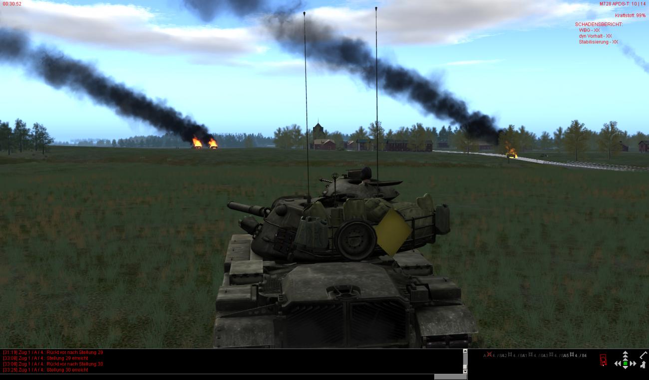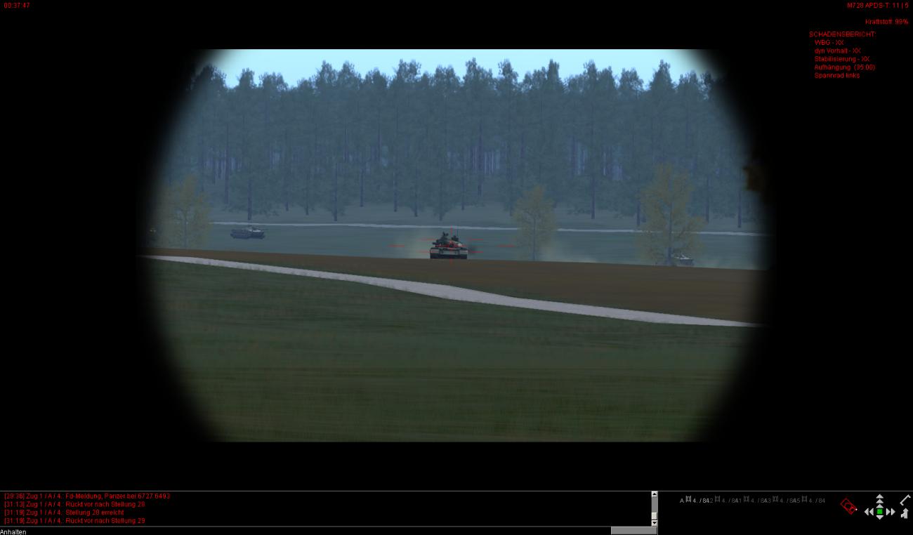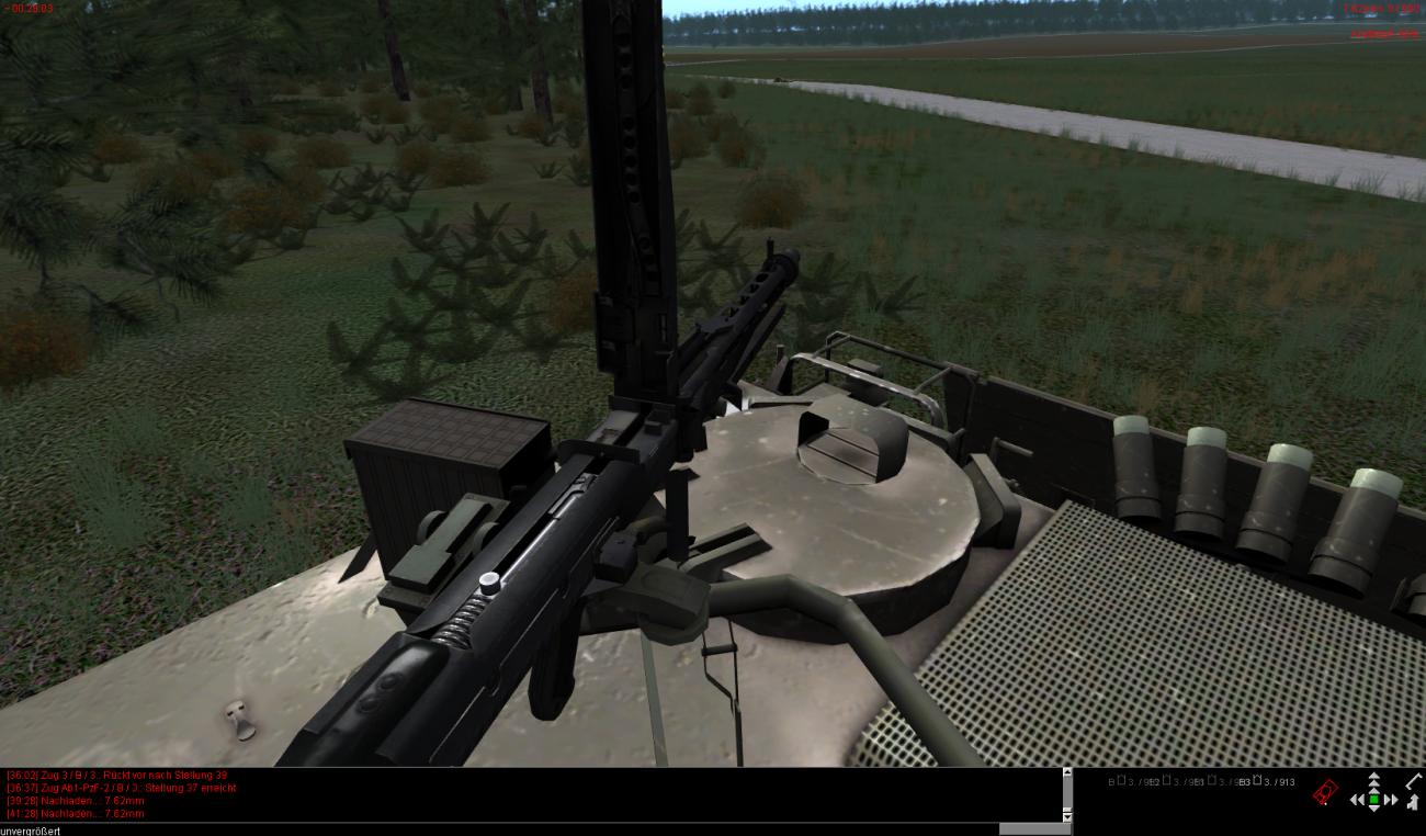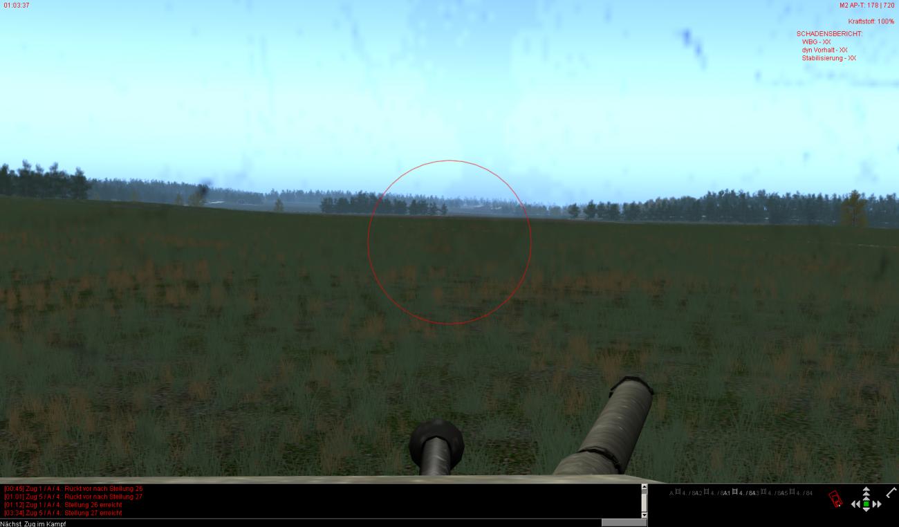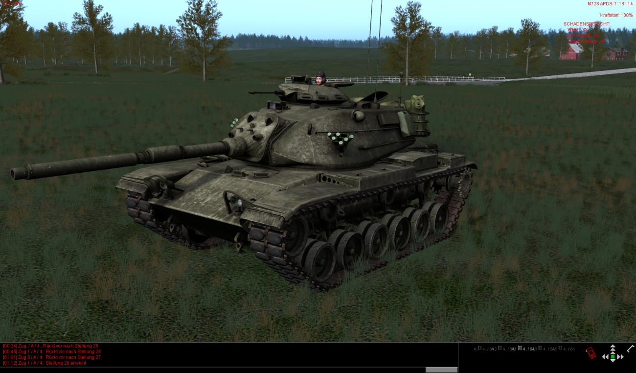 Ein gemischter Panzerzug (3x M48 + 2 M113A2G) eingesetzt in der Verzögerung. Der Rest des Panzerzuges ist KI und verzögert ebenfalls rechts von uns. Wir sind im Gefechtsstreifen der 3./72 eingesetzt, die einen erwartenden Nebenstoß des Hauptangriffs auf Munster-Süd abwehren soll.