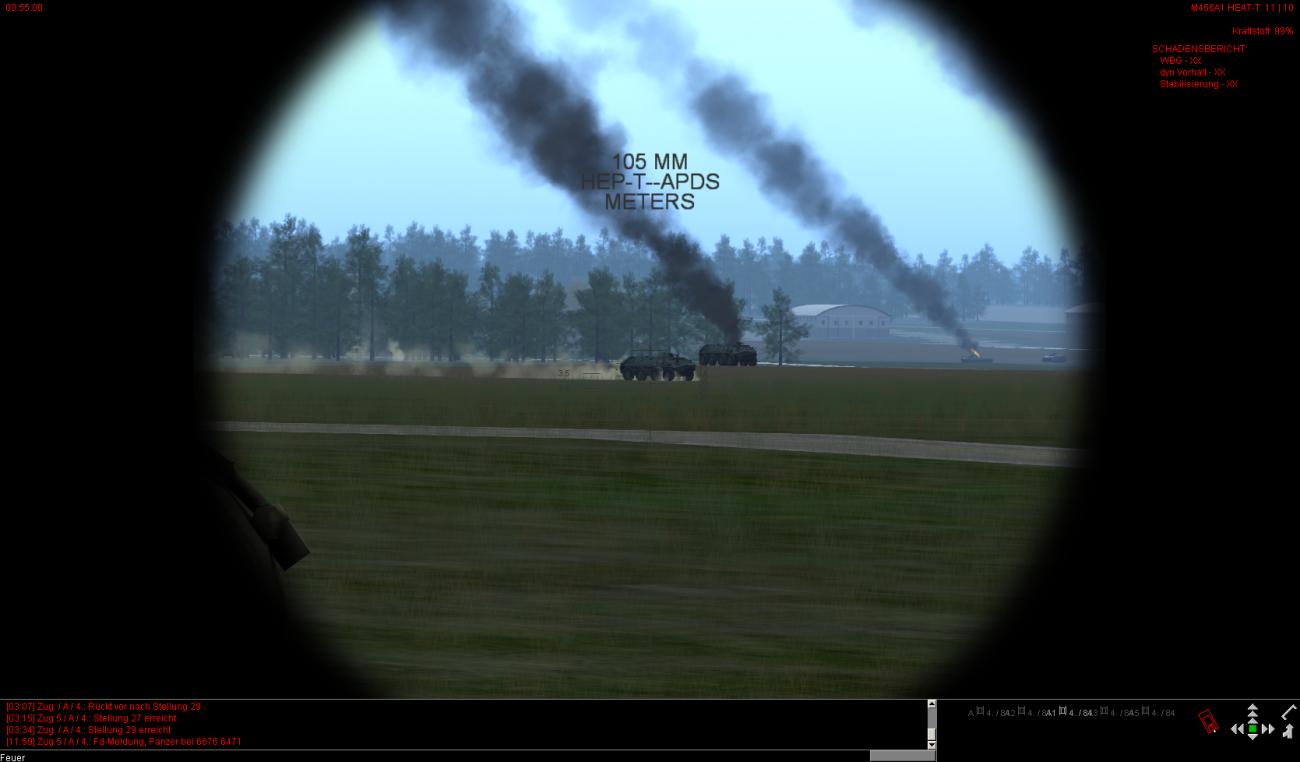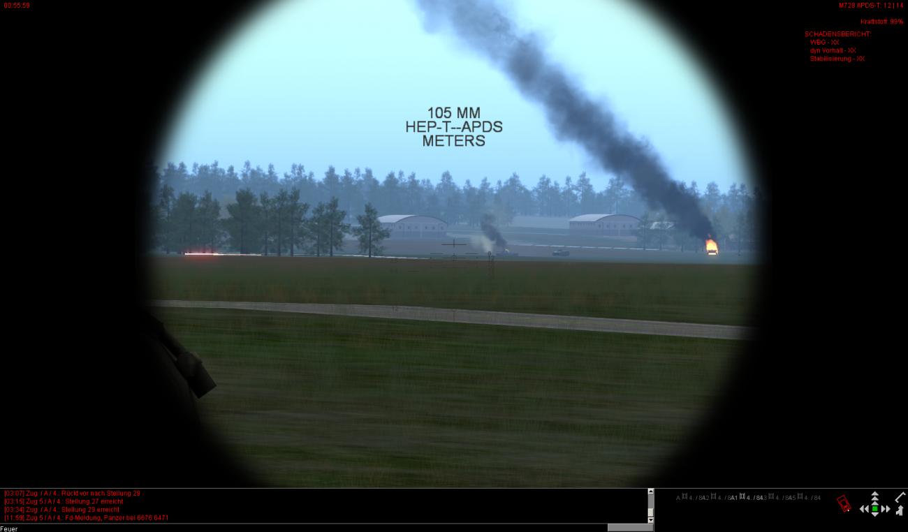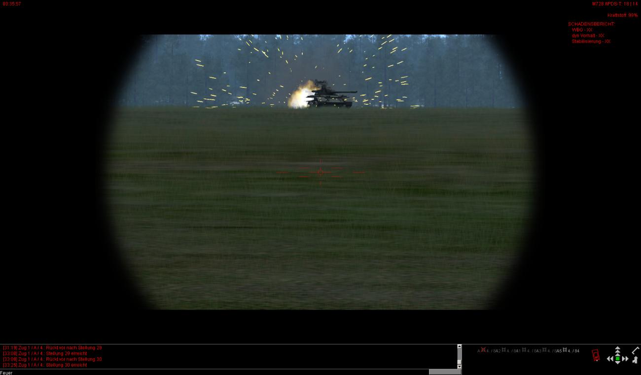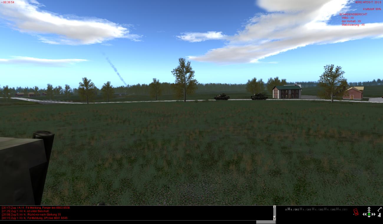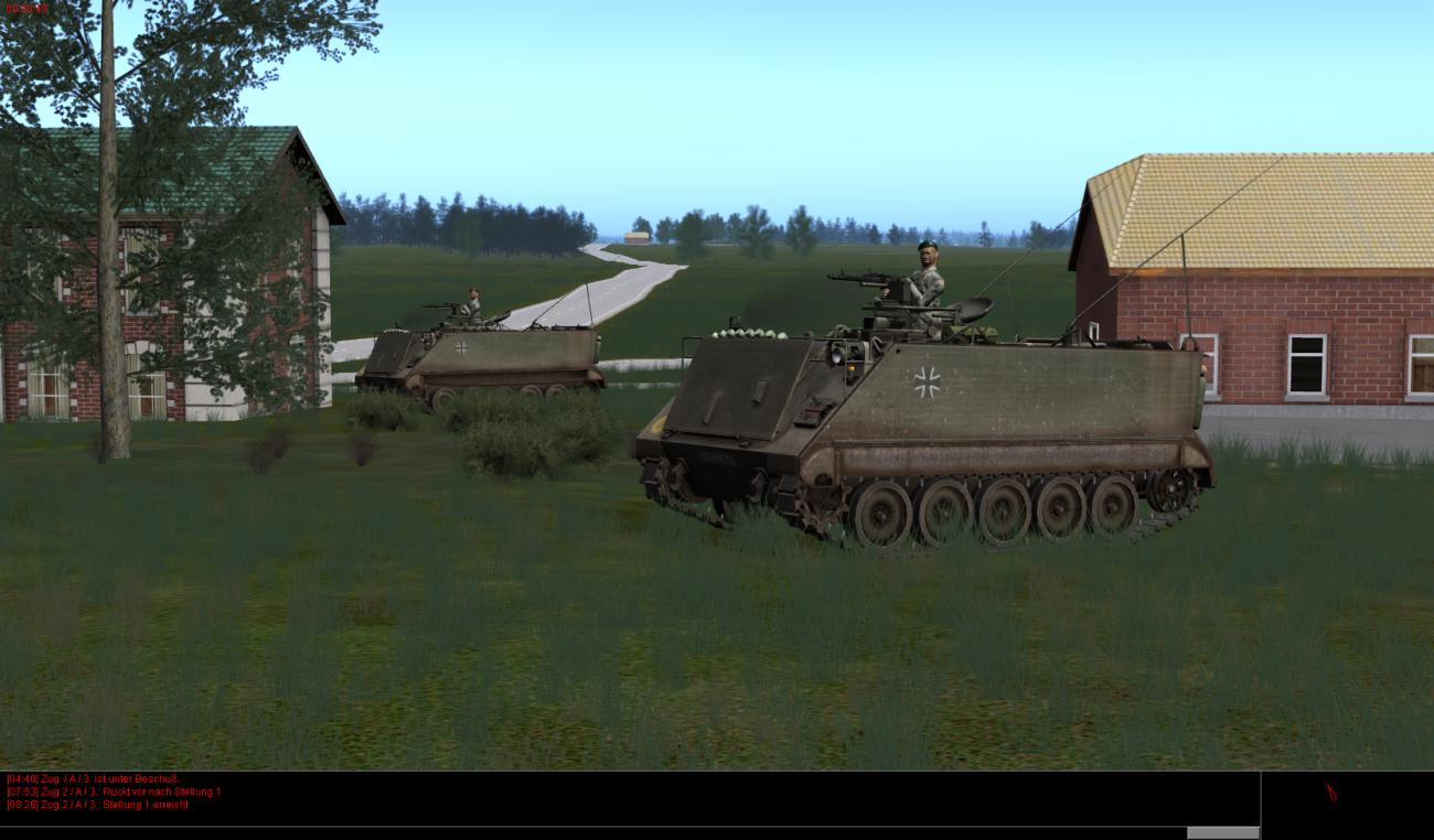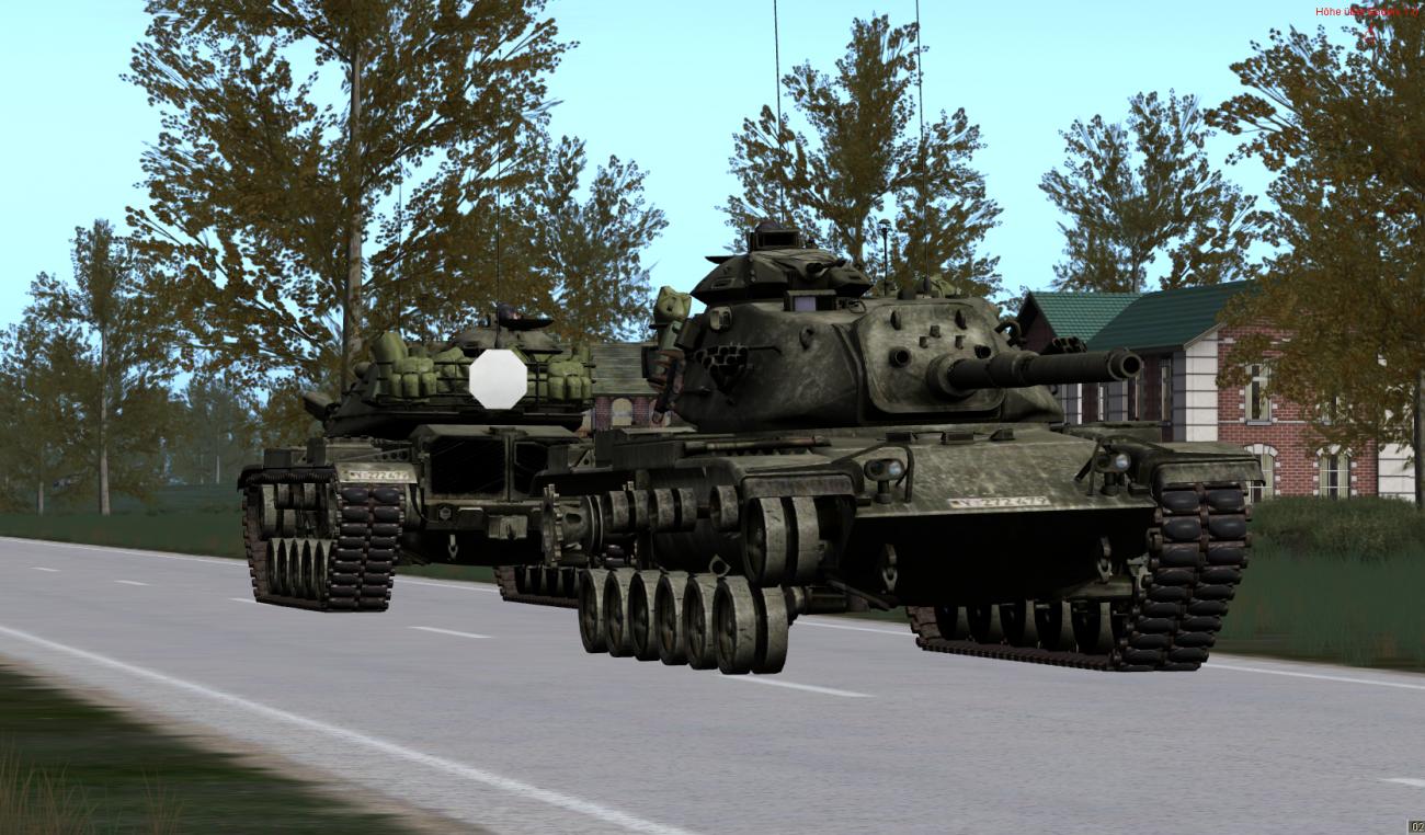 Ein gemischter Panzerzug (3x M48 + 2 M113A2G) eingesetzt in der Verzögerung. Der Rest des Panzerzuges ist KI und verzögert ebenfalls rechts von uns. Wir sind im Gefechtsstreifen der 3./72 eingesetzt, die einen erwartenden Nebenstoß des Hauptangriffs auf Munster-Süd abwehren soll.