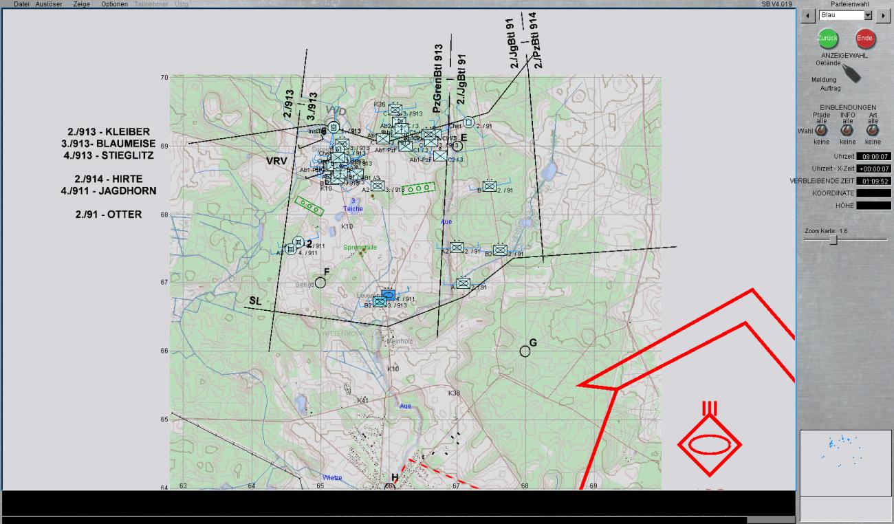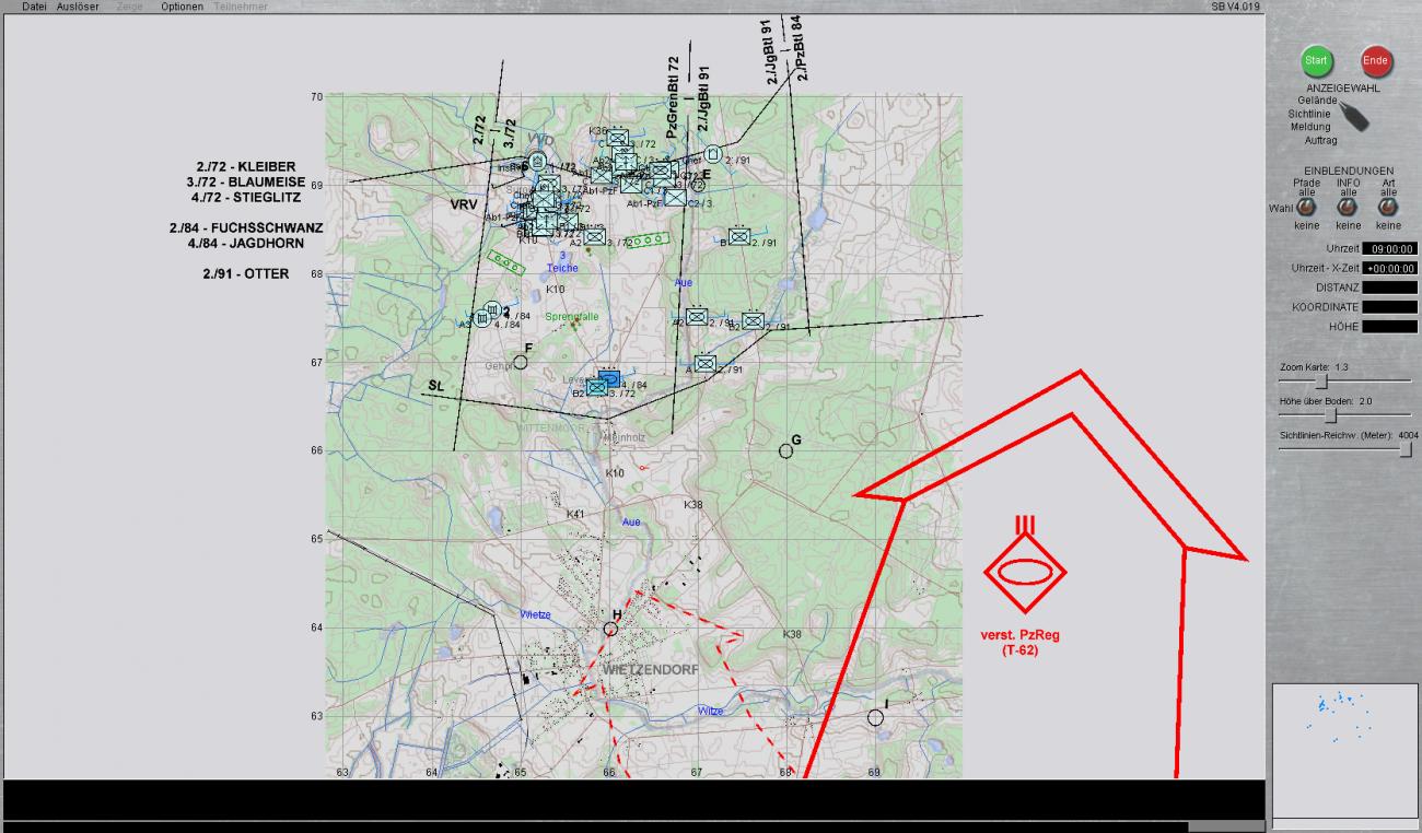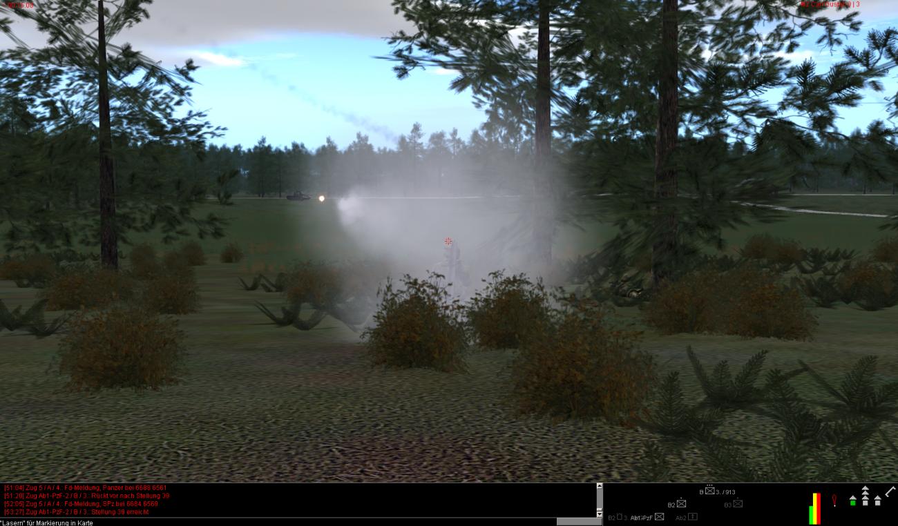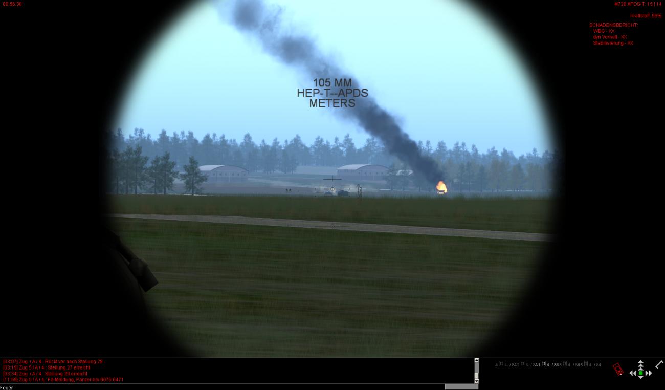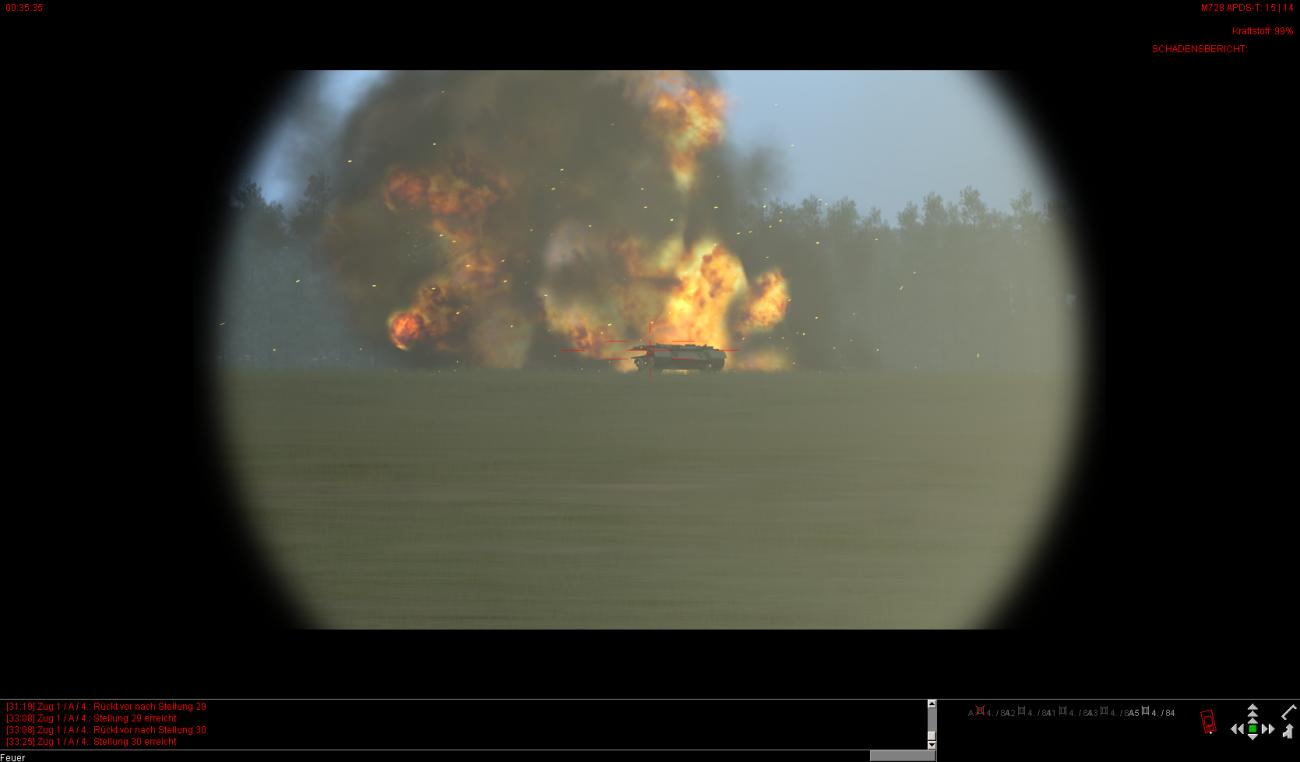 Ein gemischter Panzerzug (3x M48 + 2 M113A2G) eingesetzt in der Verzögerung. Der Rest des Panzerzuges ist KI und verzögert ebenfalls rechts von uns. Wir sind im Gefechtsstreifen der 3./72 eingesetzt, die einen erwartenden Nebenstoß des Hauptangriffs auf Munster-Süd abwehren soll.