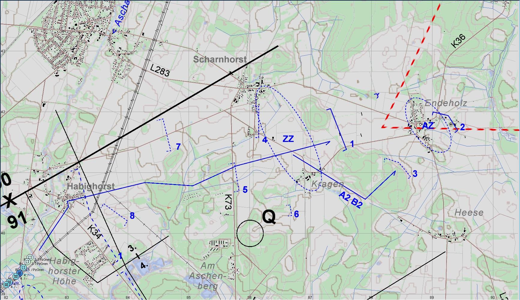 Auftrag: Erreichen und Überwachen Raum ENDEHOLZ, Abweisen fdl Aufklärung und Verzögern nachstoßender Kräfte.