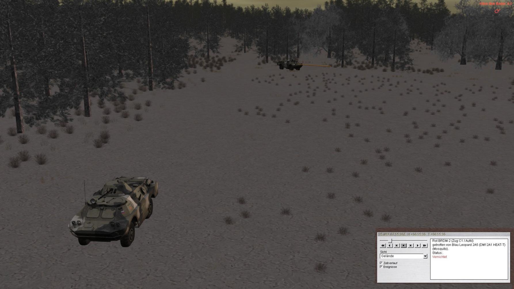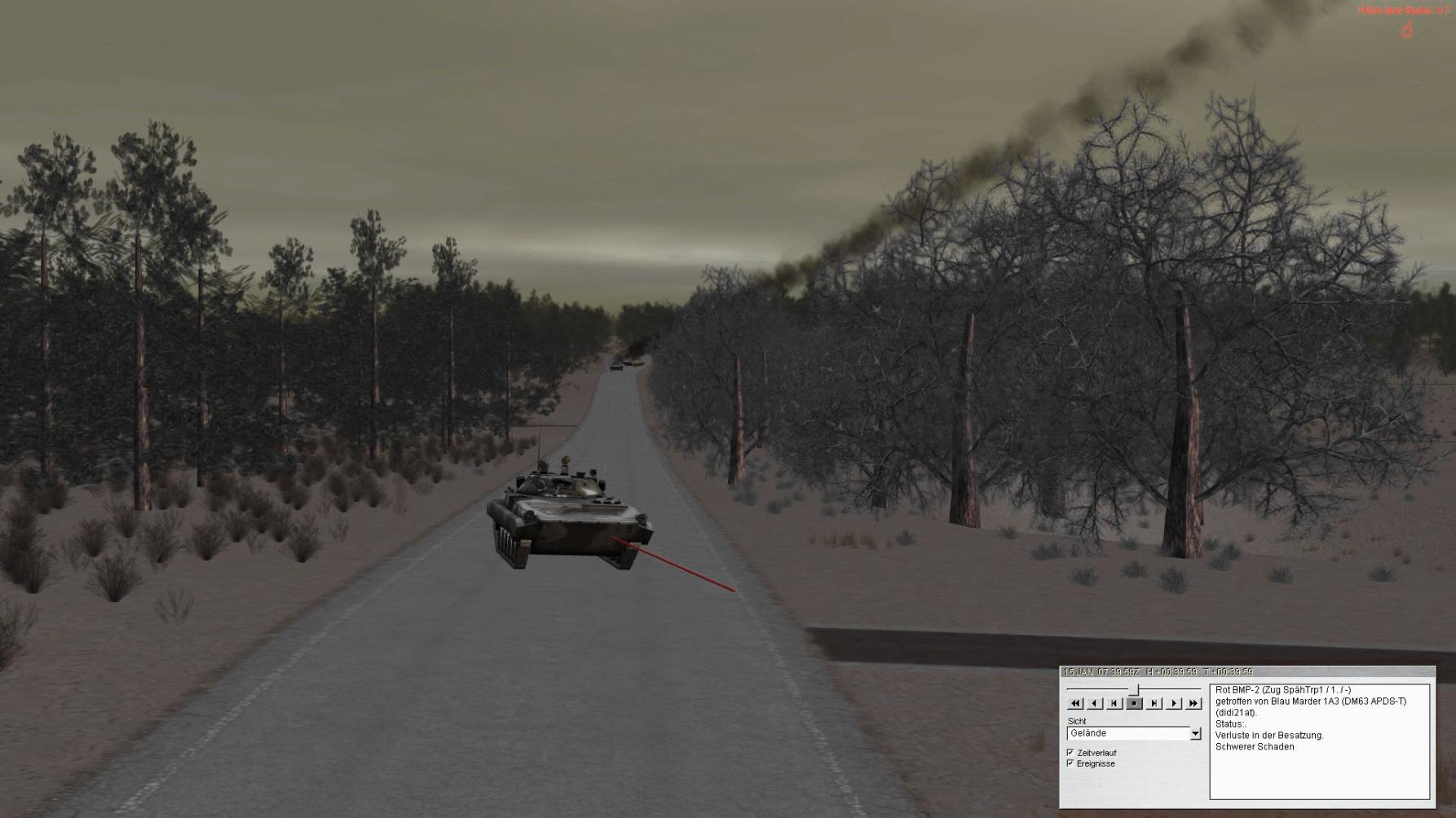 ROT führt nunmehr seine vorderste BMP-Kp ein, die im Feuer des vstkPzZg aus Stg 1 und 3 jedoch liegenbleibt: