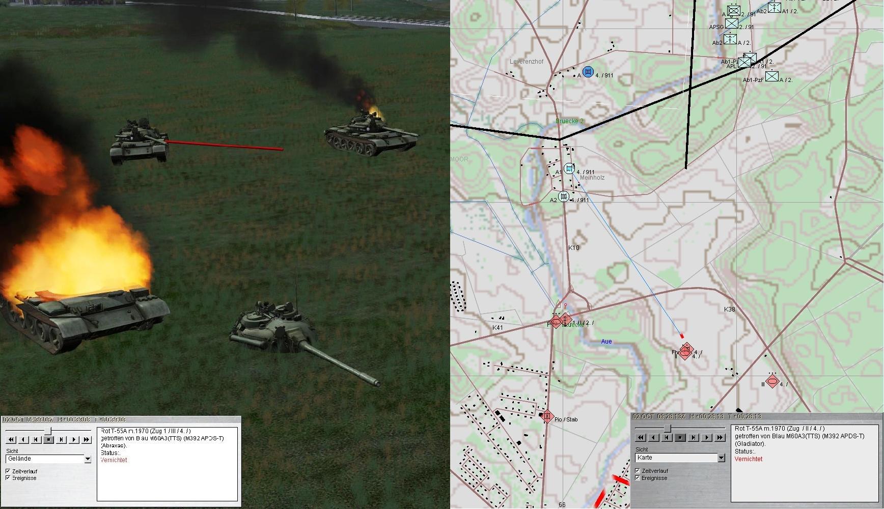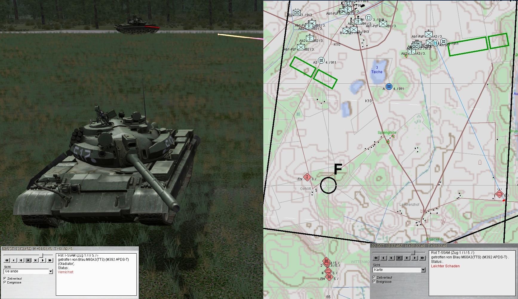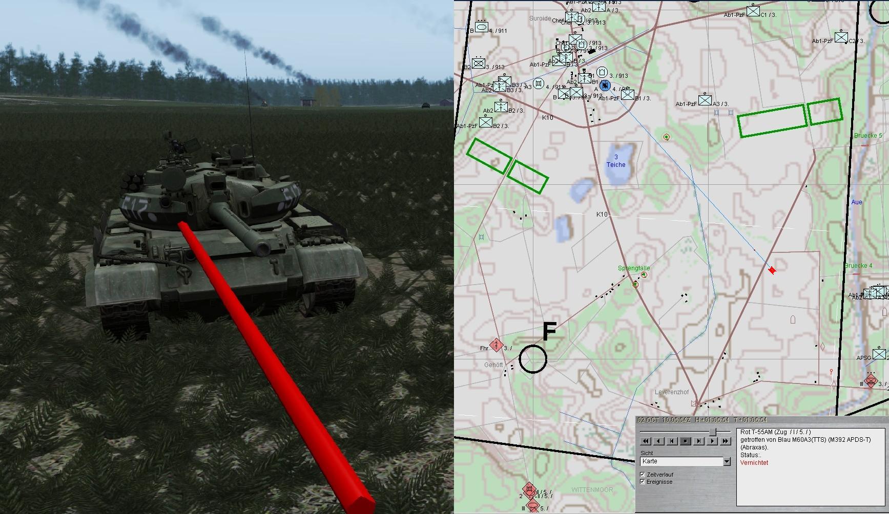 Scriptfehler: Bei 2. und 3. PzKp handelte es sich um T-55AM. Diese Version war mit Lasermesser, verbesserter Mun und vorallem mit verstärkter Panzerung sowie Zusatzpanzerung am Turm und Kette ausgerüstet. Diese Version kam erst Mitte der 70er-Jahre in die sowj. Truppen!