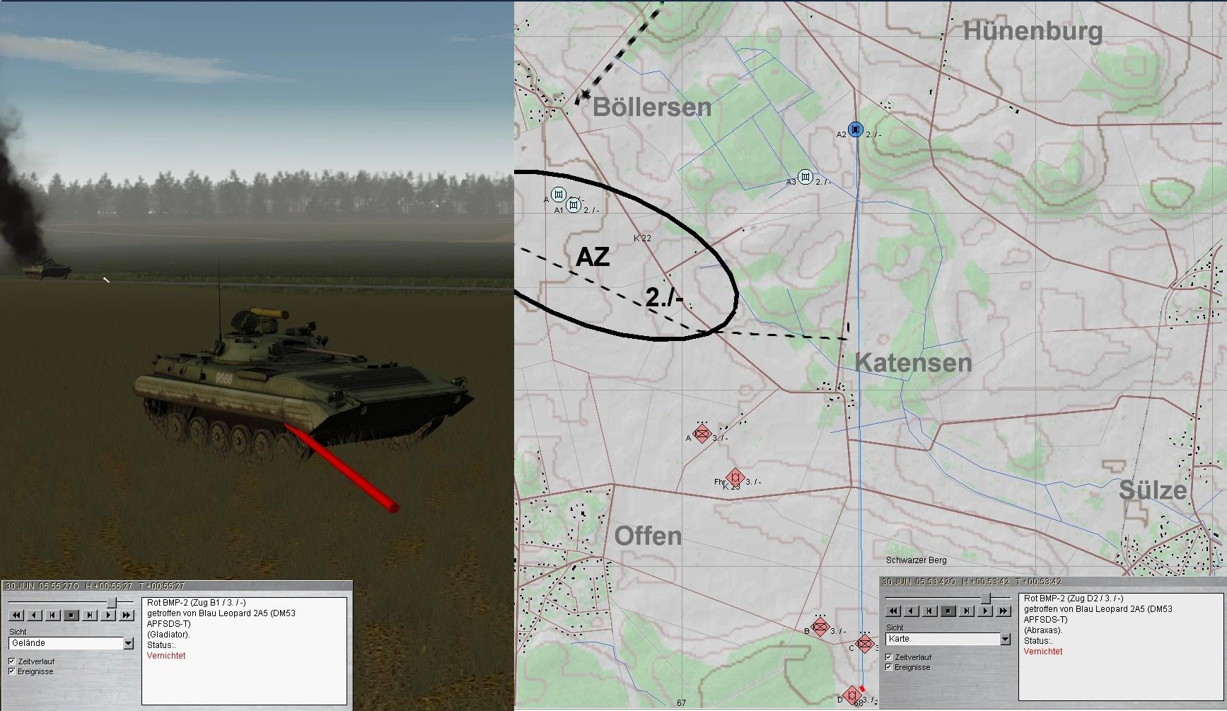 A tritt weiter auf AZ an und erkennt frühzeitig BMP-Kp, die letztlich aus Stellungen im gewonnenen AZ vernichtet werden kann:
