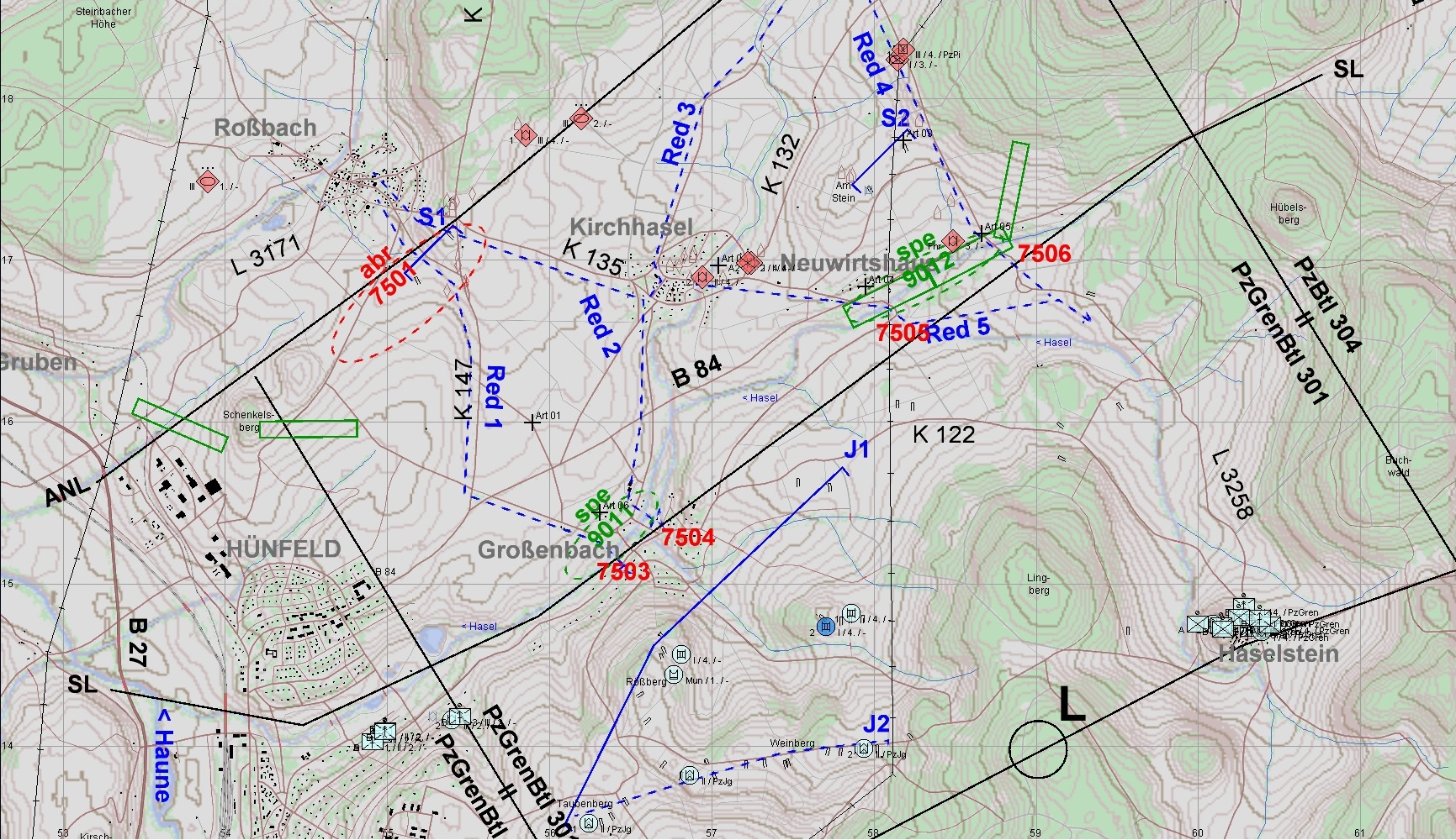 ROT greift aus N an und wird von US-Kräften verzögert.