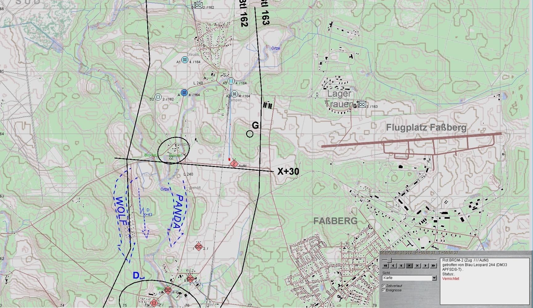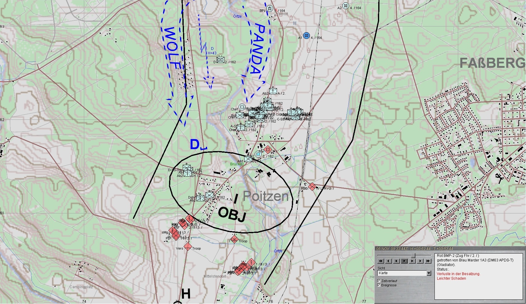 6. A erhält Auftrag "S-Rand Obj Stellung". ROT gliedert um und tritt erneut von Süden an: