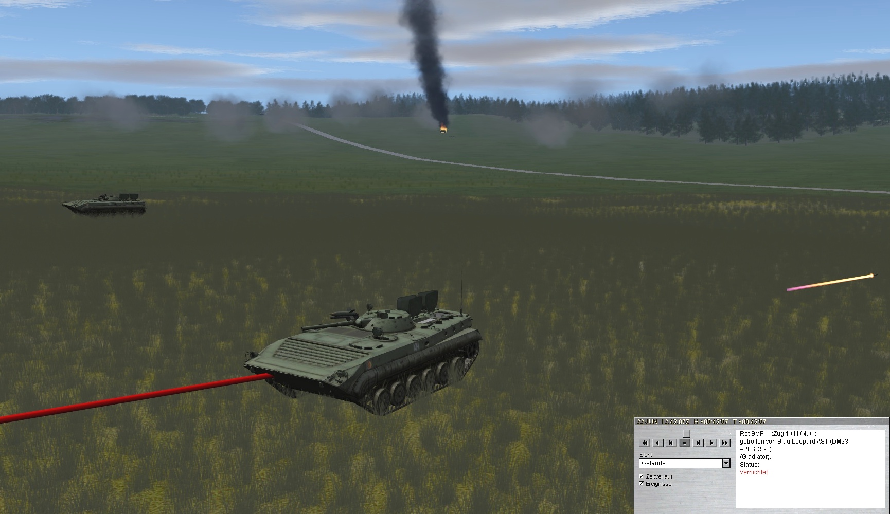 Die im rechten Bereich vor A3 angreifende PzKp wird vernichtet: