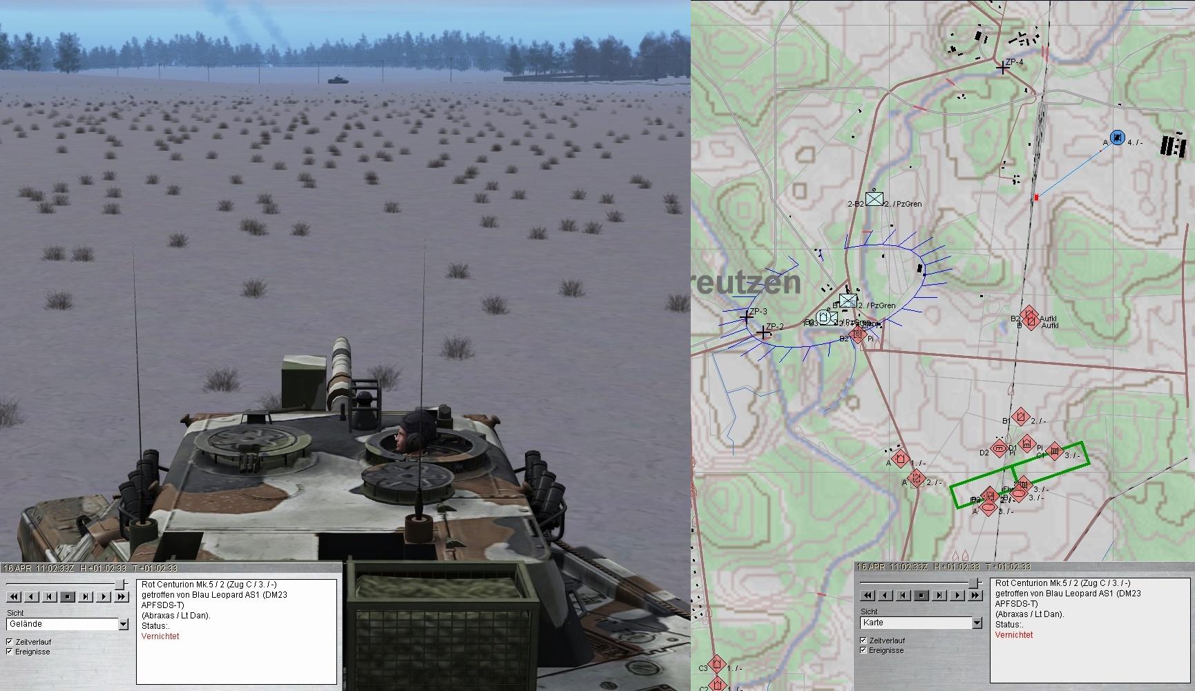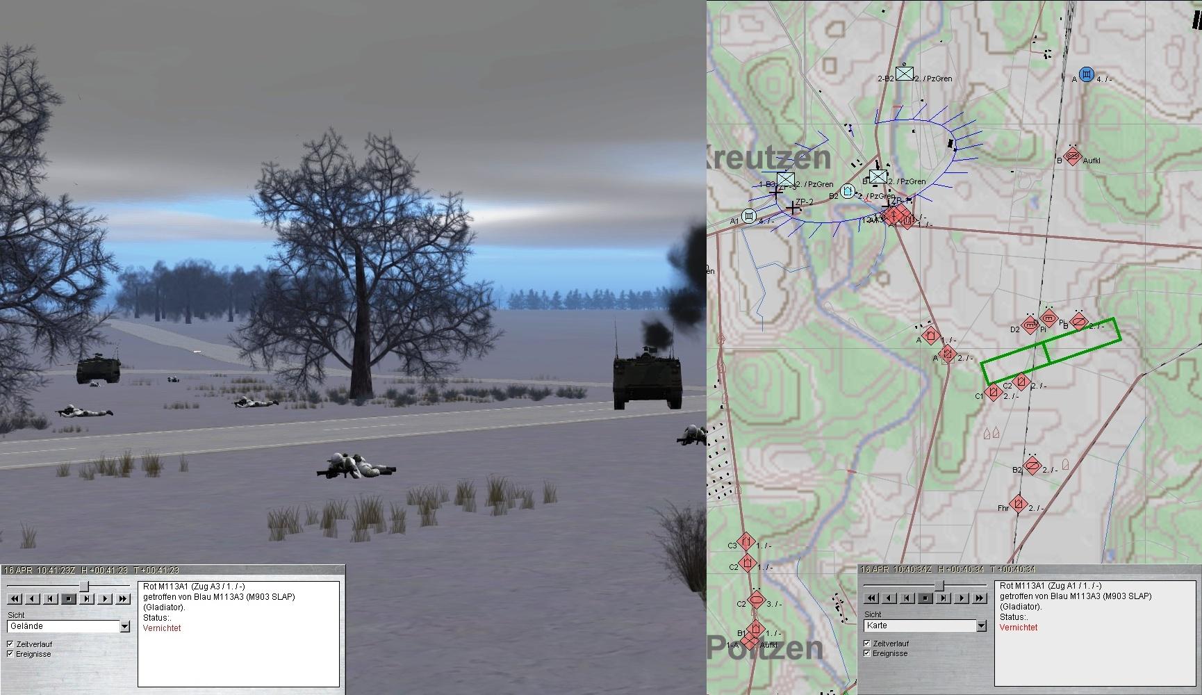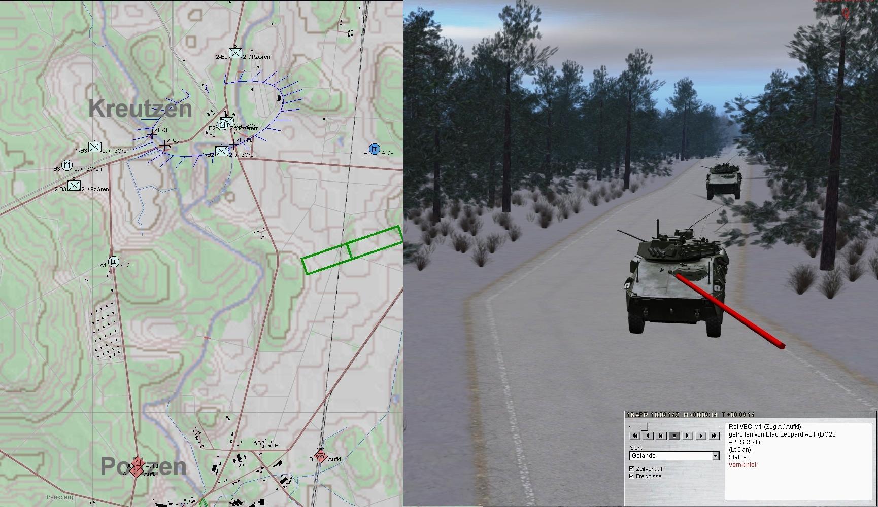 Das Gefecht ist der Versuch ein historisches Gefecht vom 16. April 1945 bei KREUTZEN gegen das 2. Btl der "Fife and Fortar Yeomanry" UK mit den Möglichkeiten von SB darzustellen.