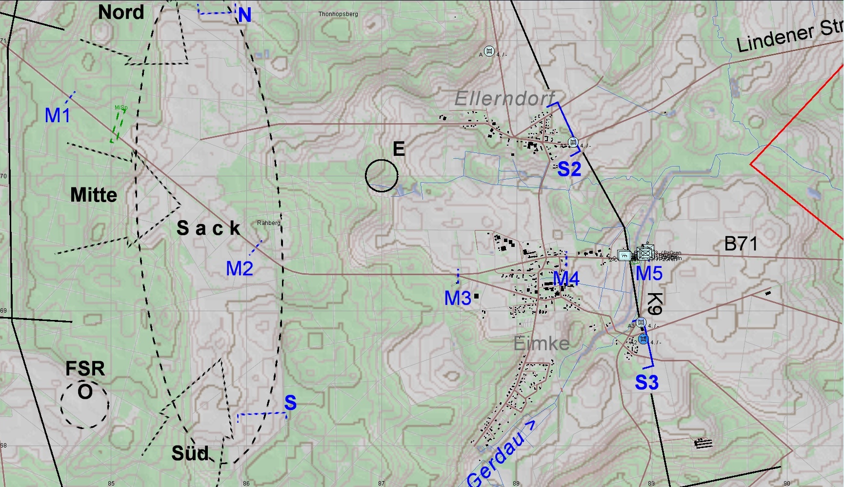 A-Zg ist ohne Verluste in die geplanten Stellungen N und S eingeflossen, die PzReserve steht bereit!