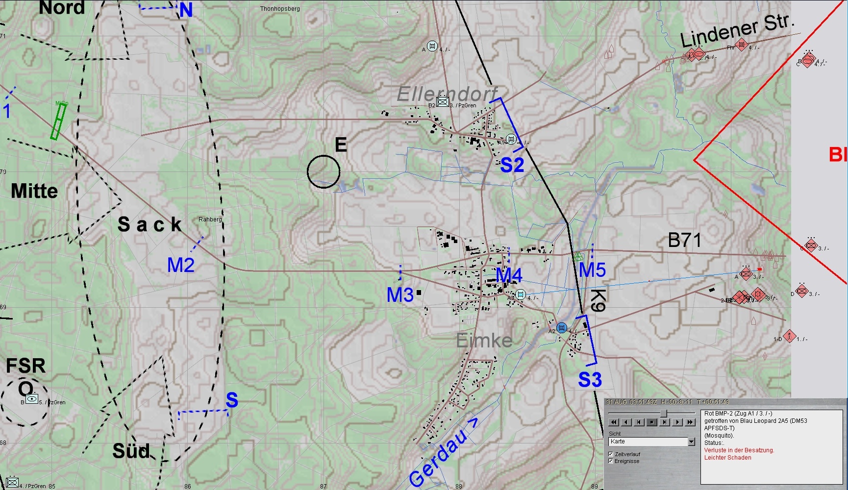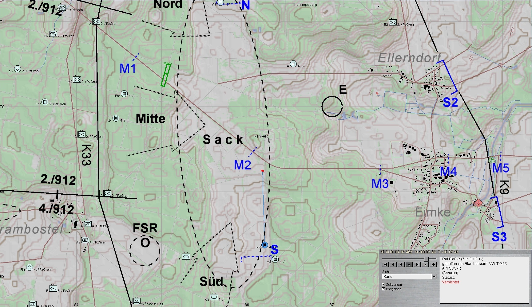 Fd bleibt bei ELLERNDORF liegen! Nur ein BMP geliegt der Vorstoß in den SACK und wird vernichtet:
