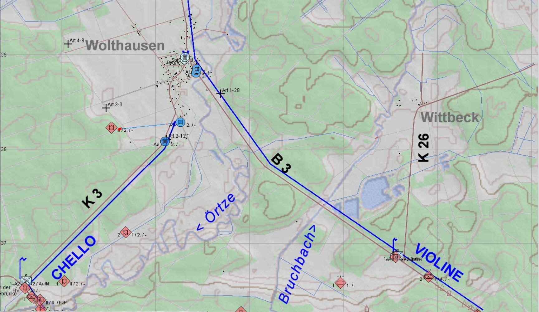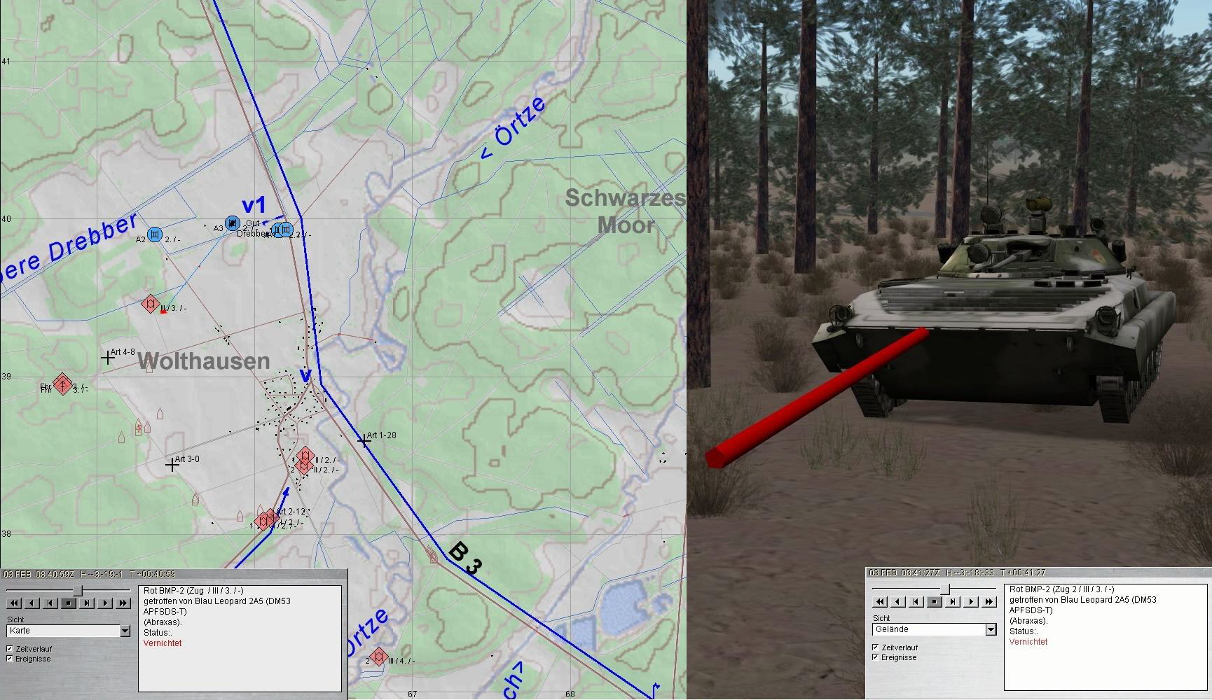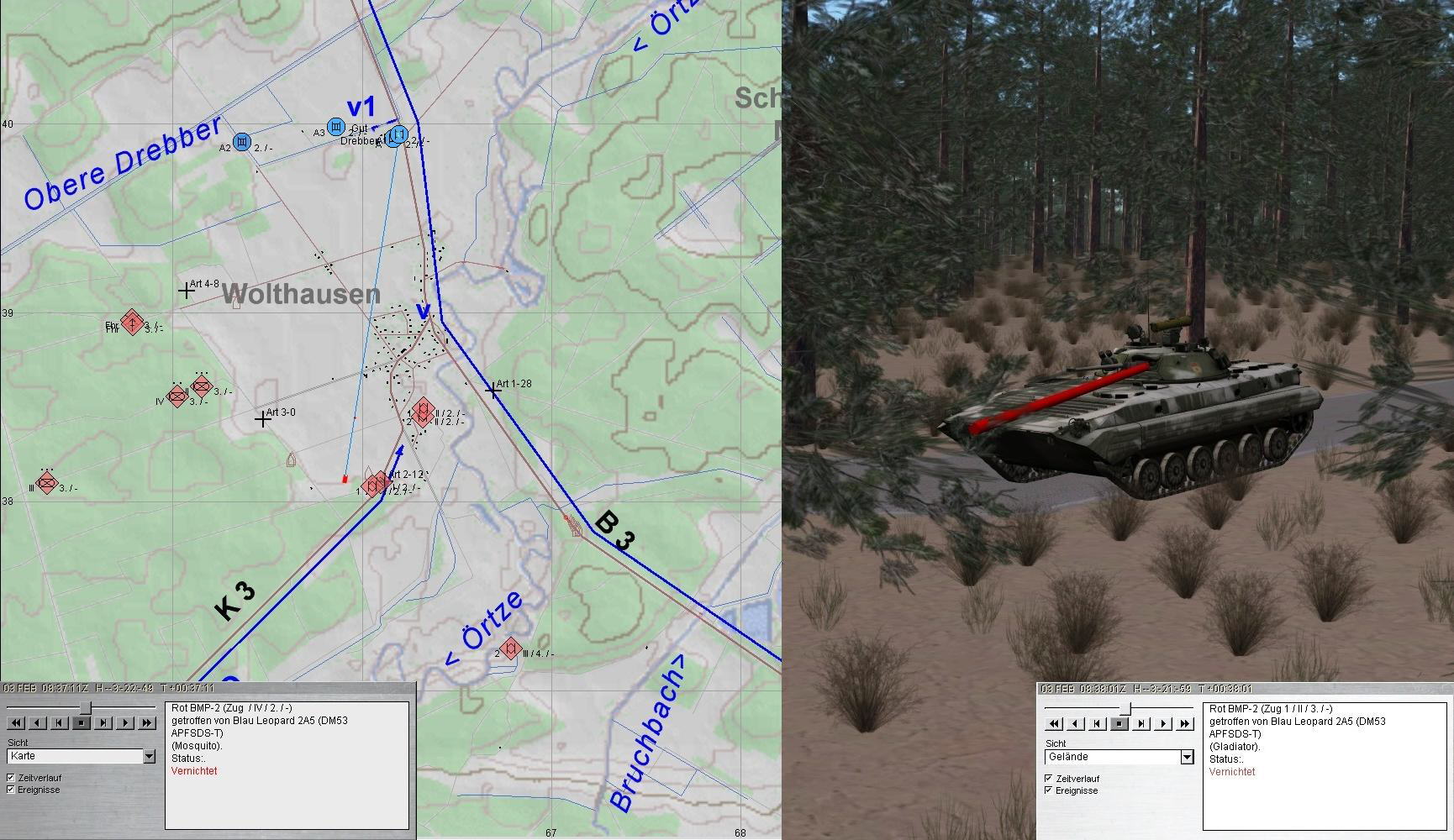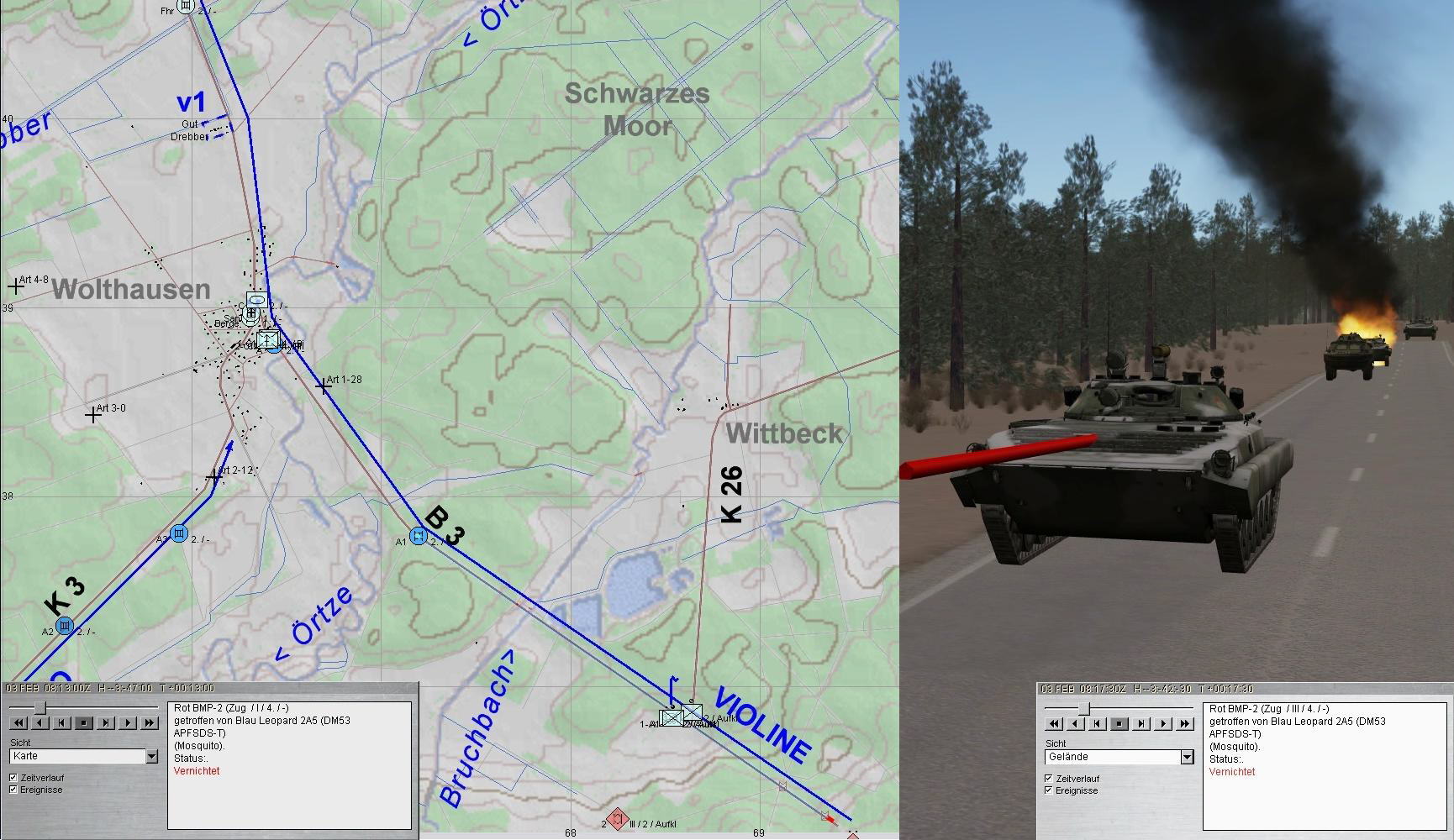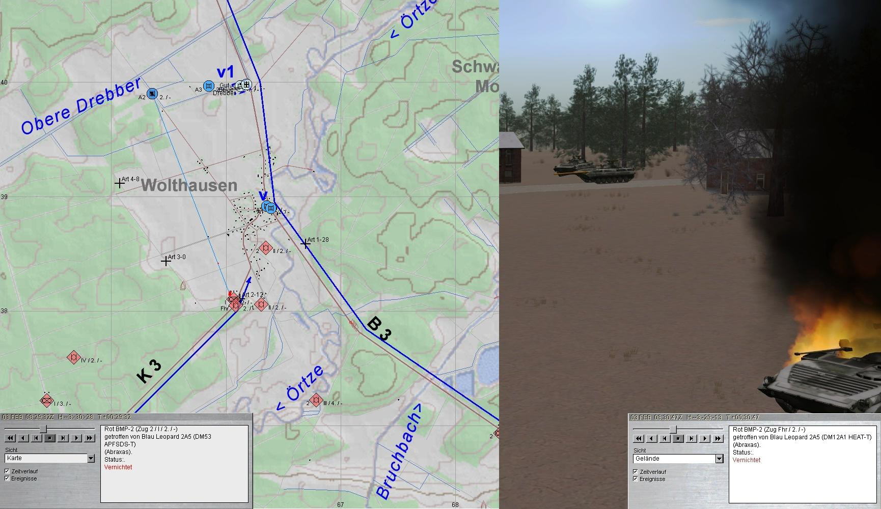 Während der Fd im Zuge B3 gestoppt werden konnte, holten BMP-Kräfte aus Südwesten auf WOLTHAUSEN aus: