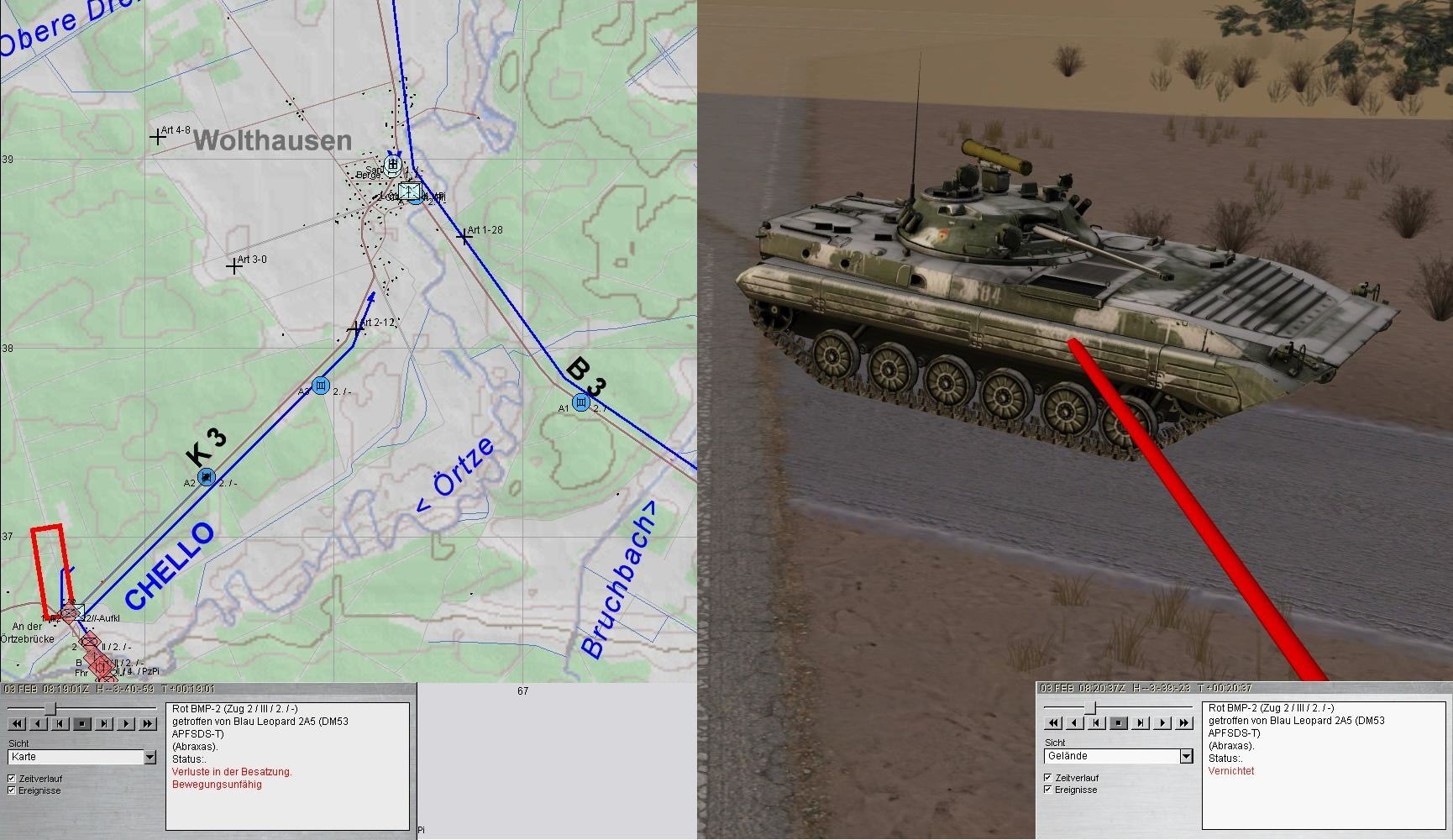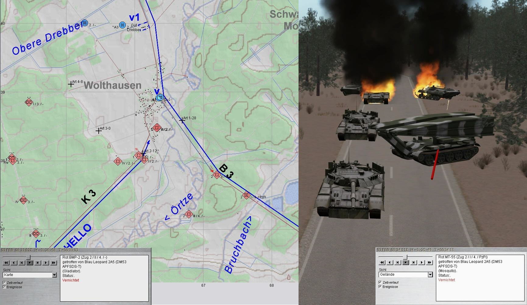 A fasste den Entschluss unter Überwachung der 2. Grp nach S aufzuklären. 2 BMP konnten noch vernichtet werden, dann war Ruhe:)