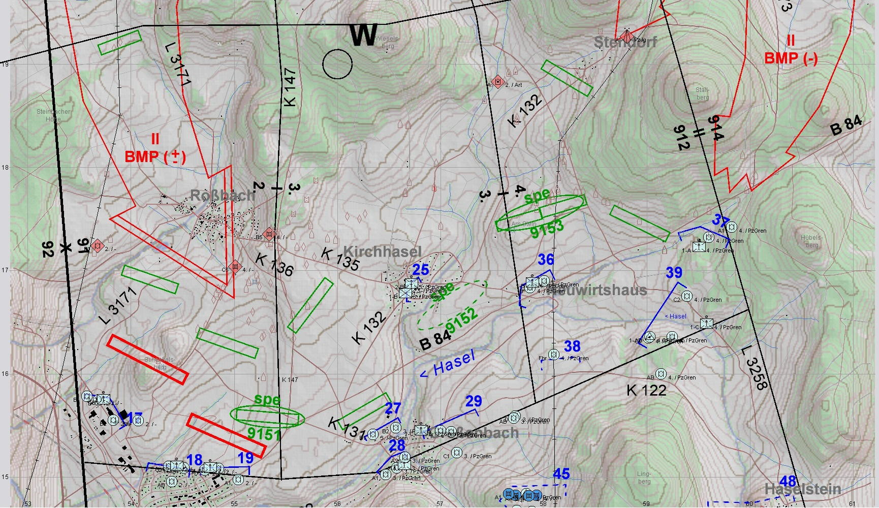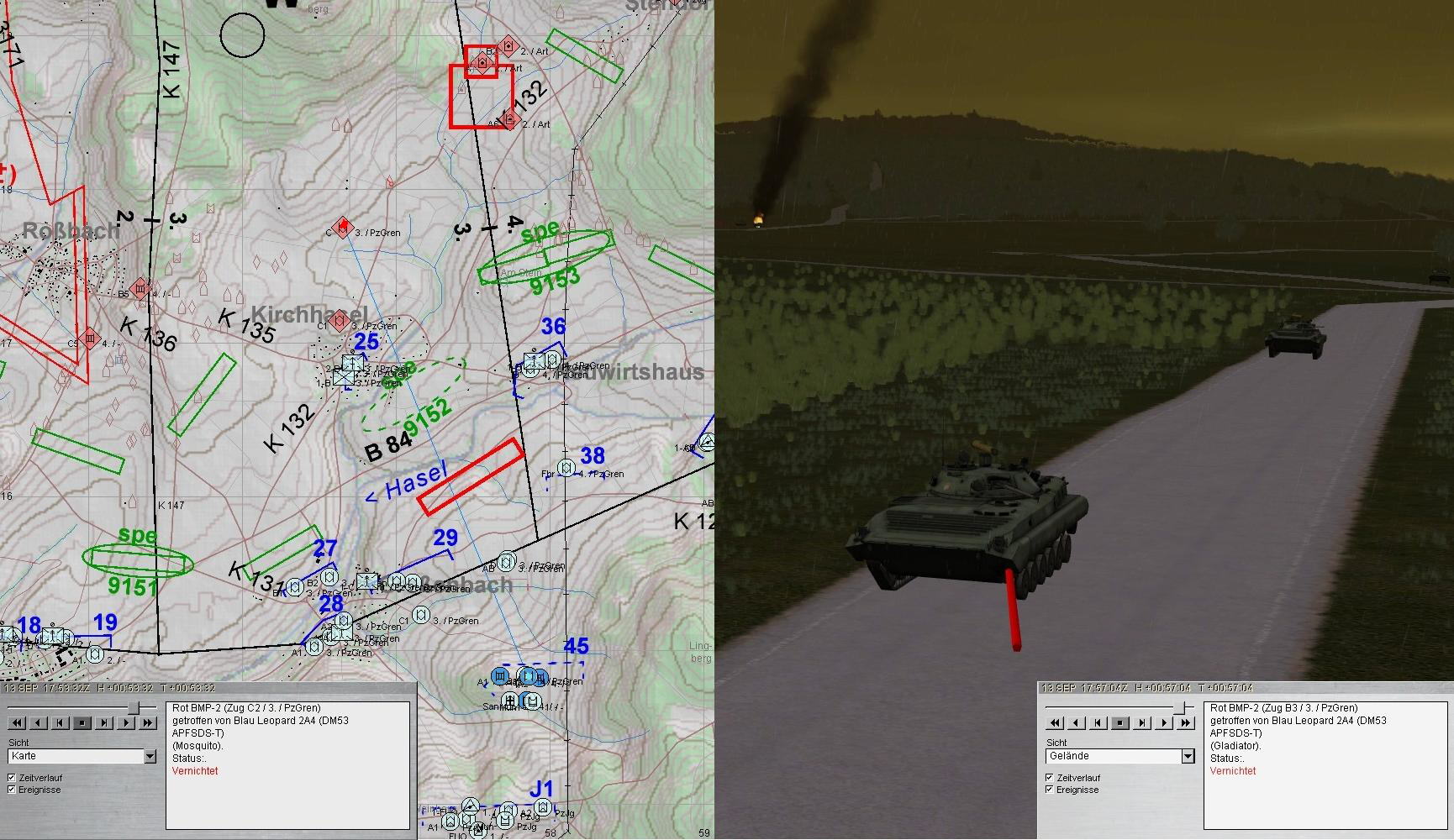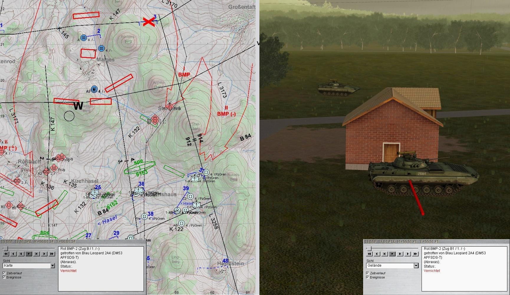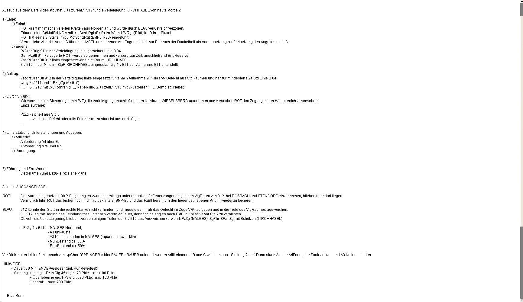 Die Verteidigung des blauen PzGrenBtl 912 gegen ein verstärktes BMP-Rgt war trotz einiger Verluste erfolgreich und A-Zg hatte dazu beigetragen!