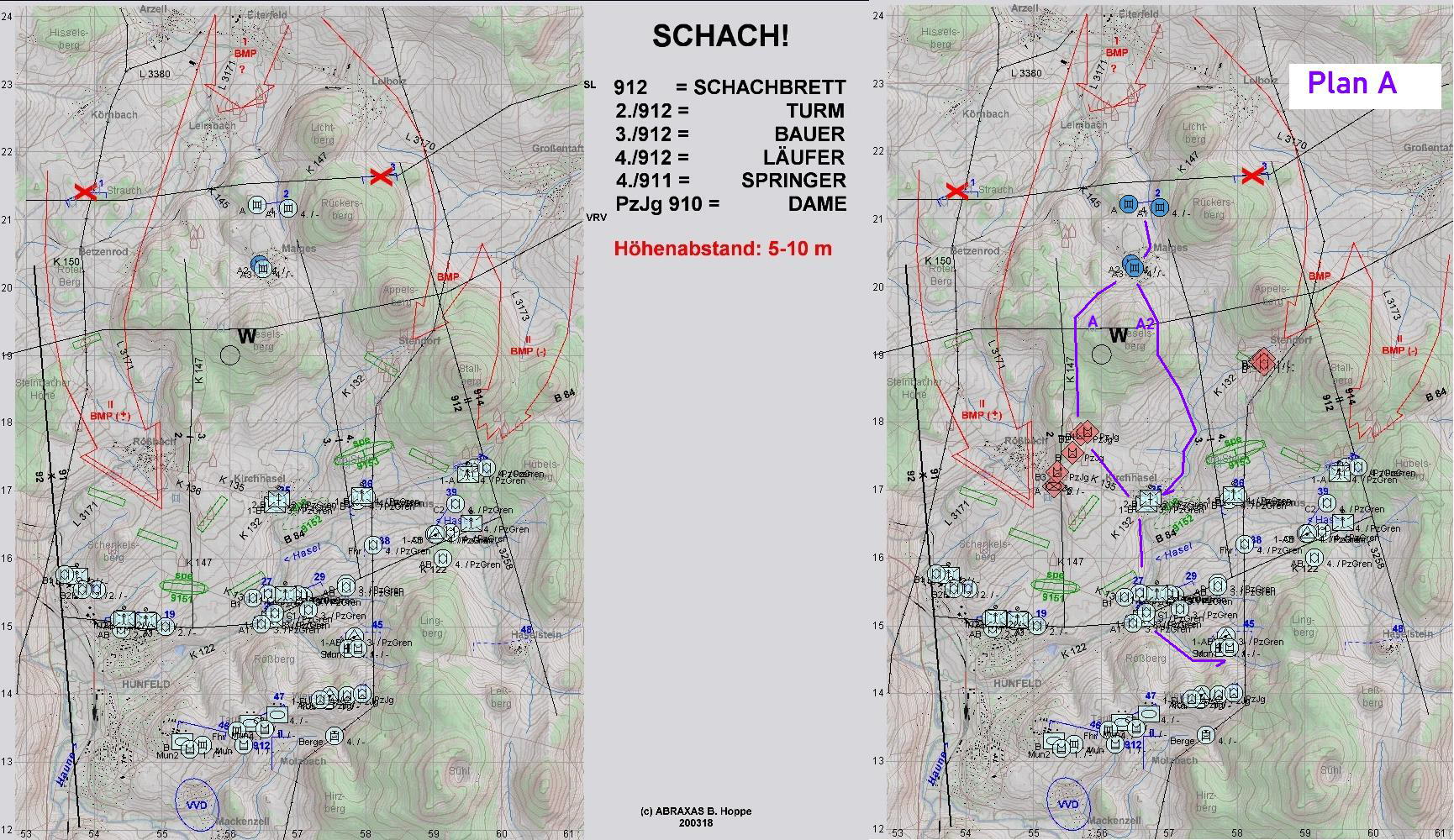 Während A u. A1 zunächst Nachmunitionierten, konnten A2 und 3 sofort den Feuerkampf aufnehmen und den BMP-Fd rechts bekämpfen: