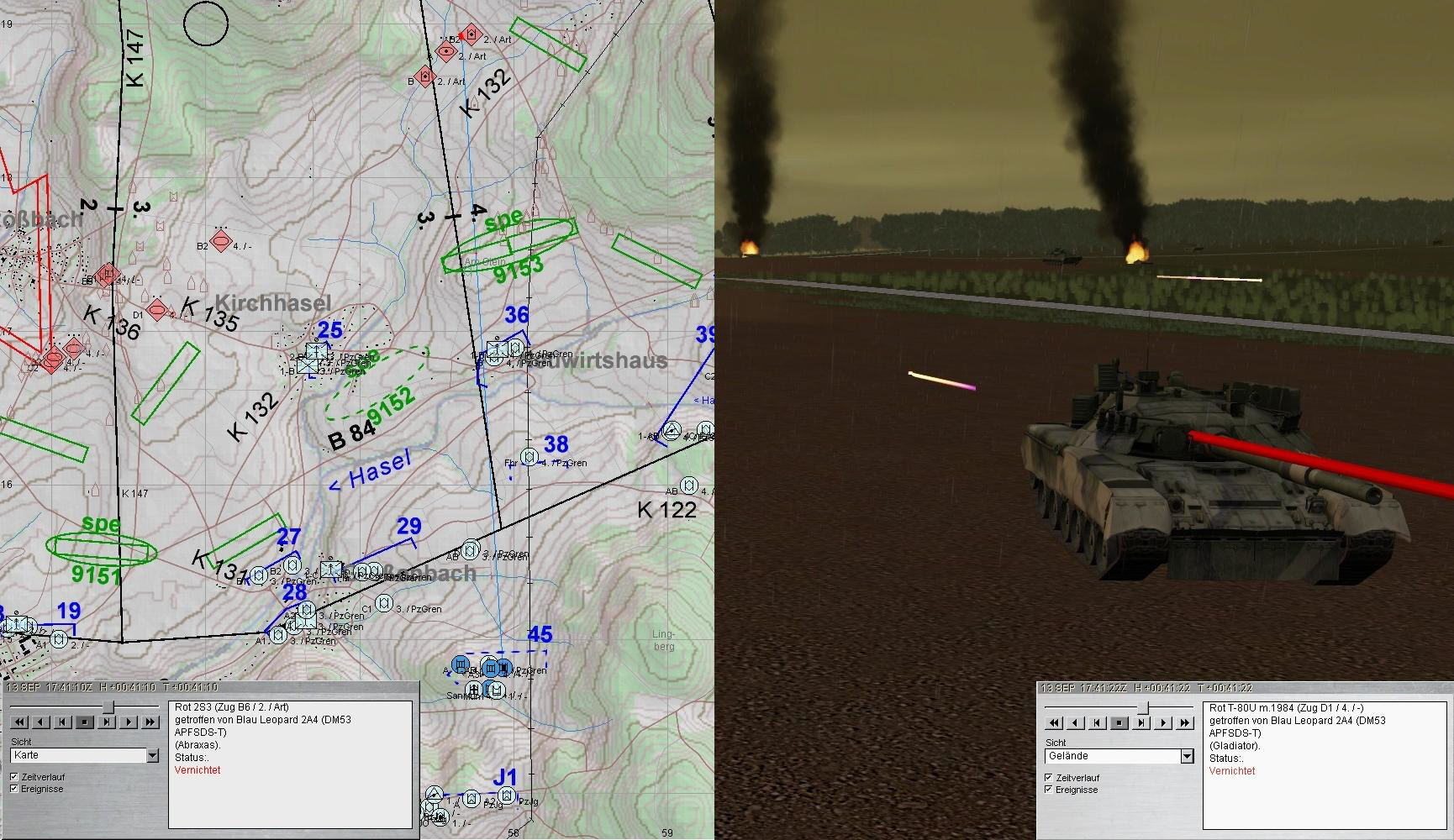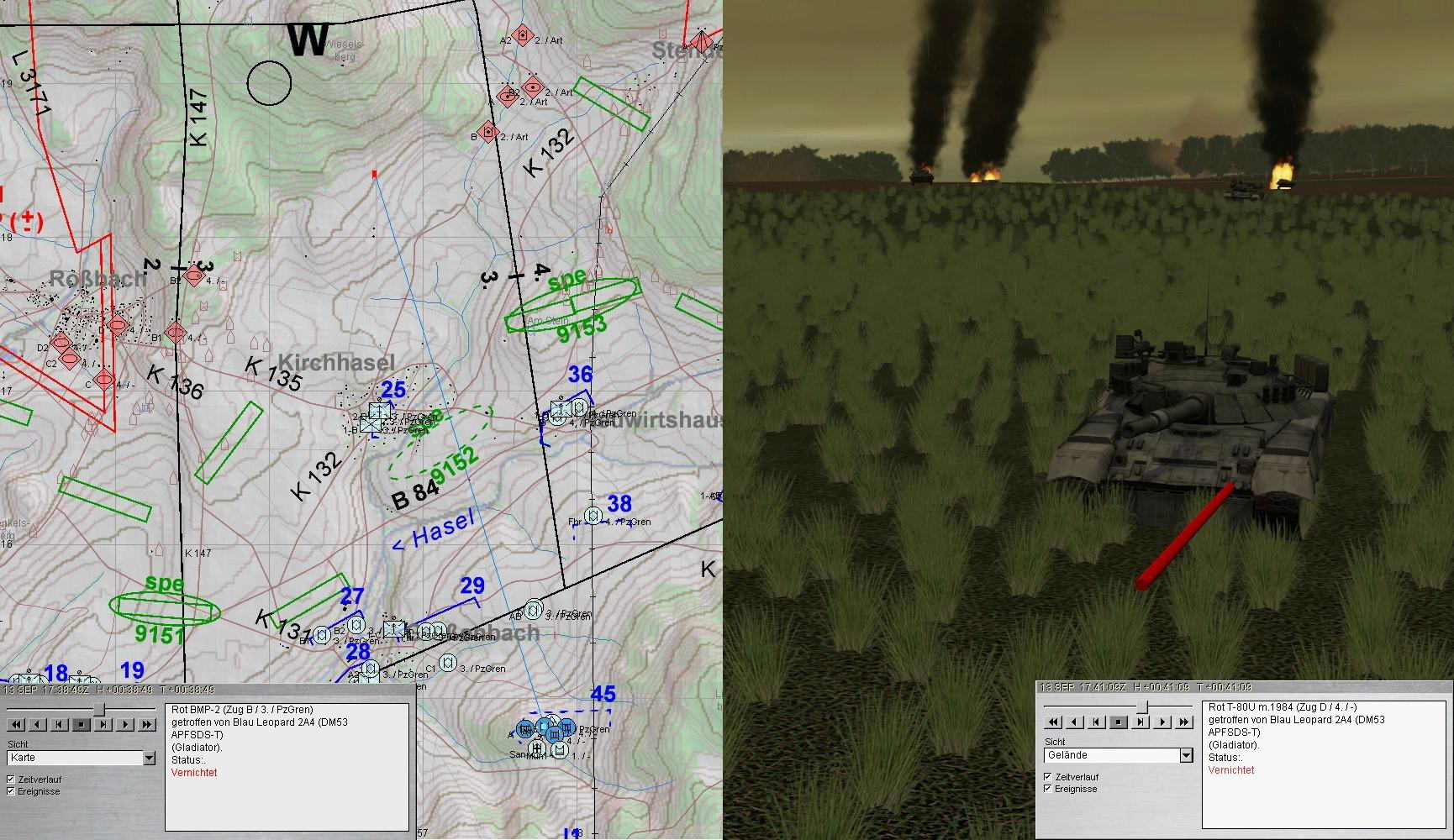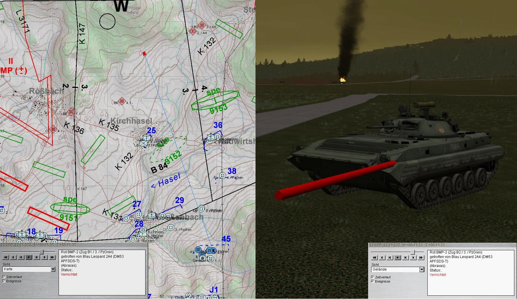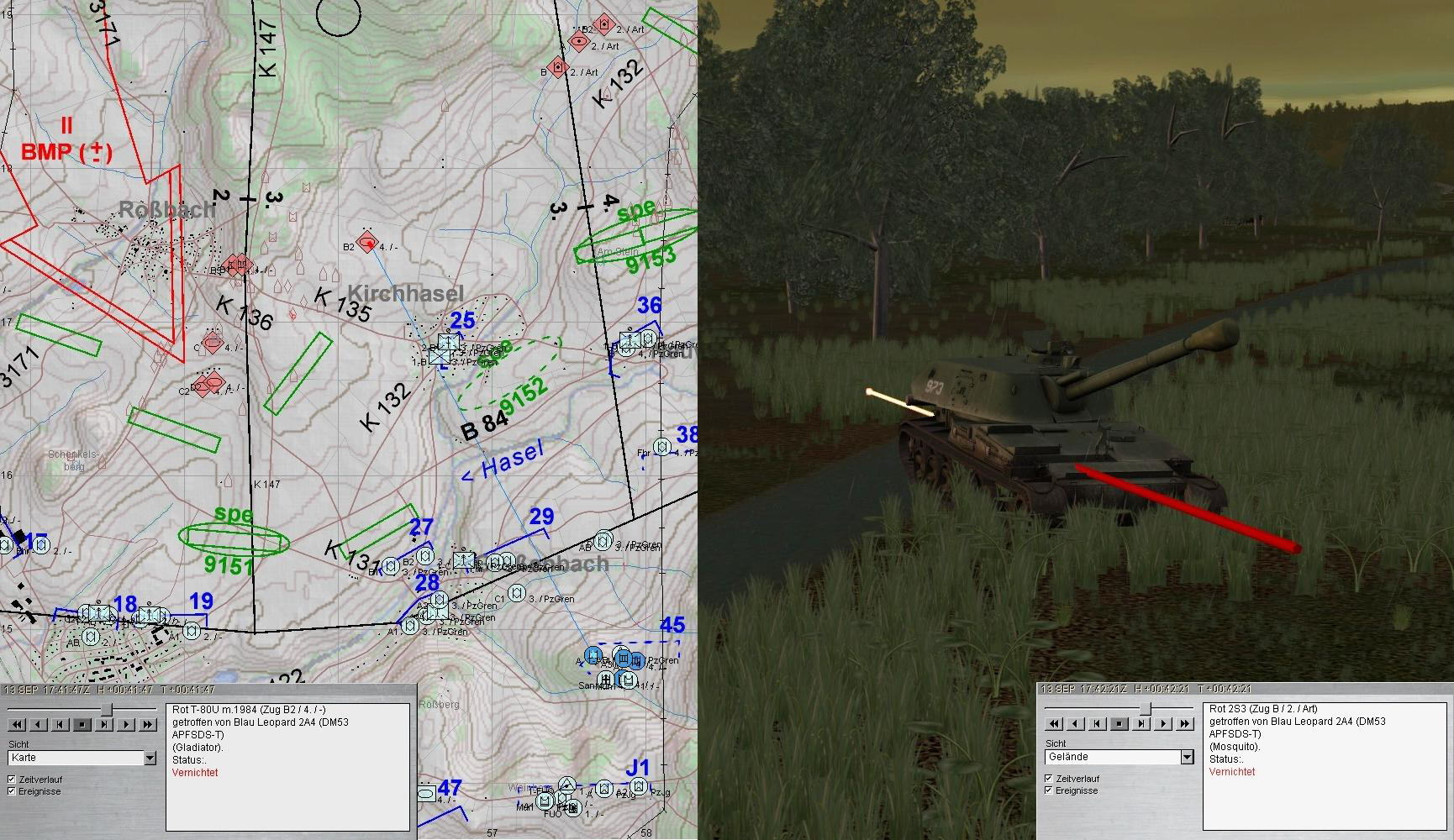Während A u. A1 sich um die T-80 kümmerten, bekämpften A2 u. 3 restliche BMP und FdArt: