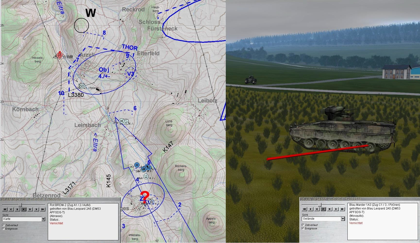 Ein fdl SpähTrp westl ARZELL wurde erkannt und vernichtet; leider auch einer unserer MARDER - von A1:sadface: