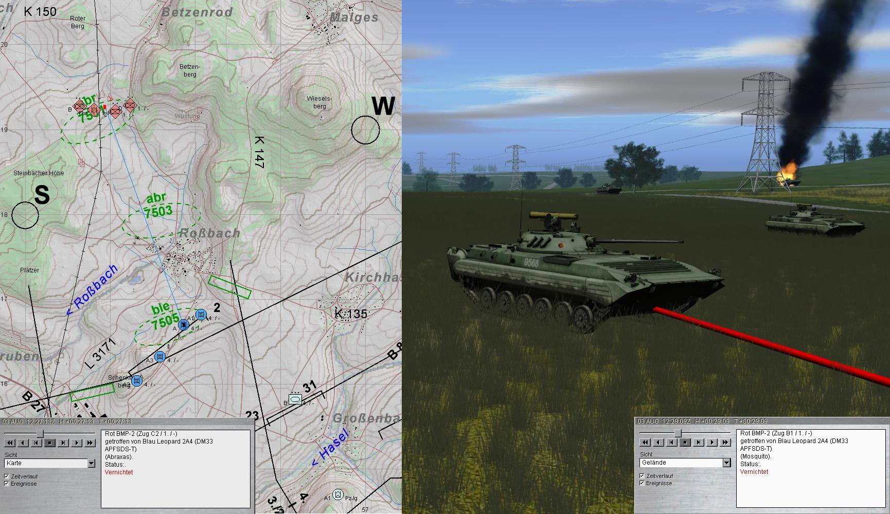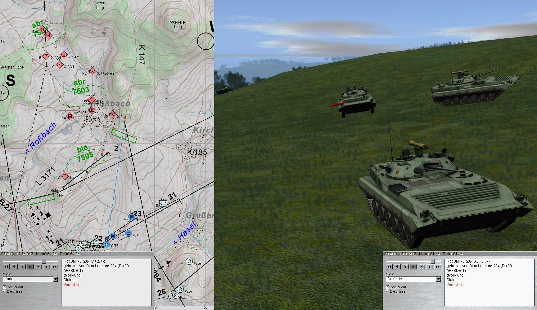 Nachdem A die Stellung 2 bezogen hatte, wichen die SpähTrps des BrigSpähZg vor BMP-Fd aus. Wenig später wurden fdl Aufklärung erkannt und vernichtet: