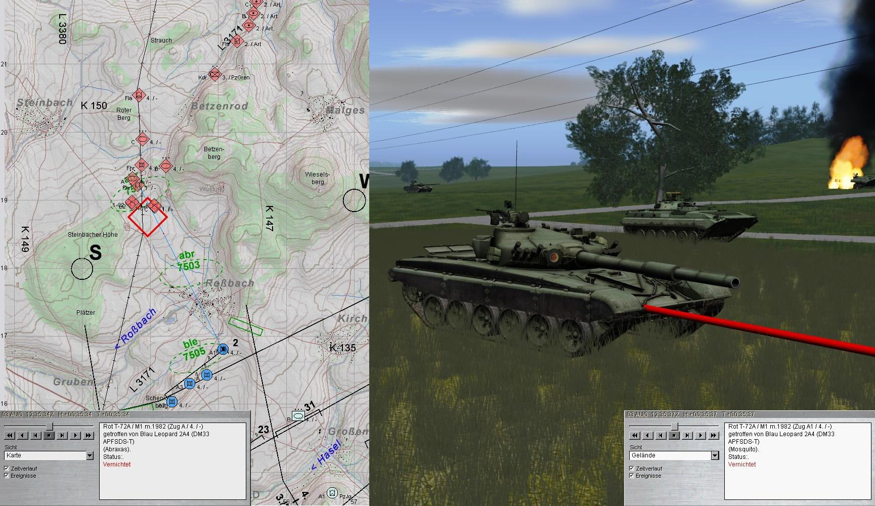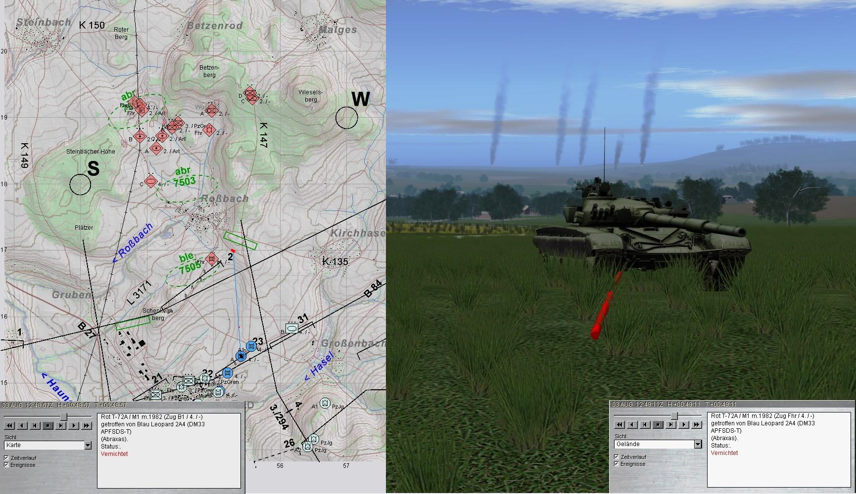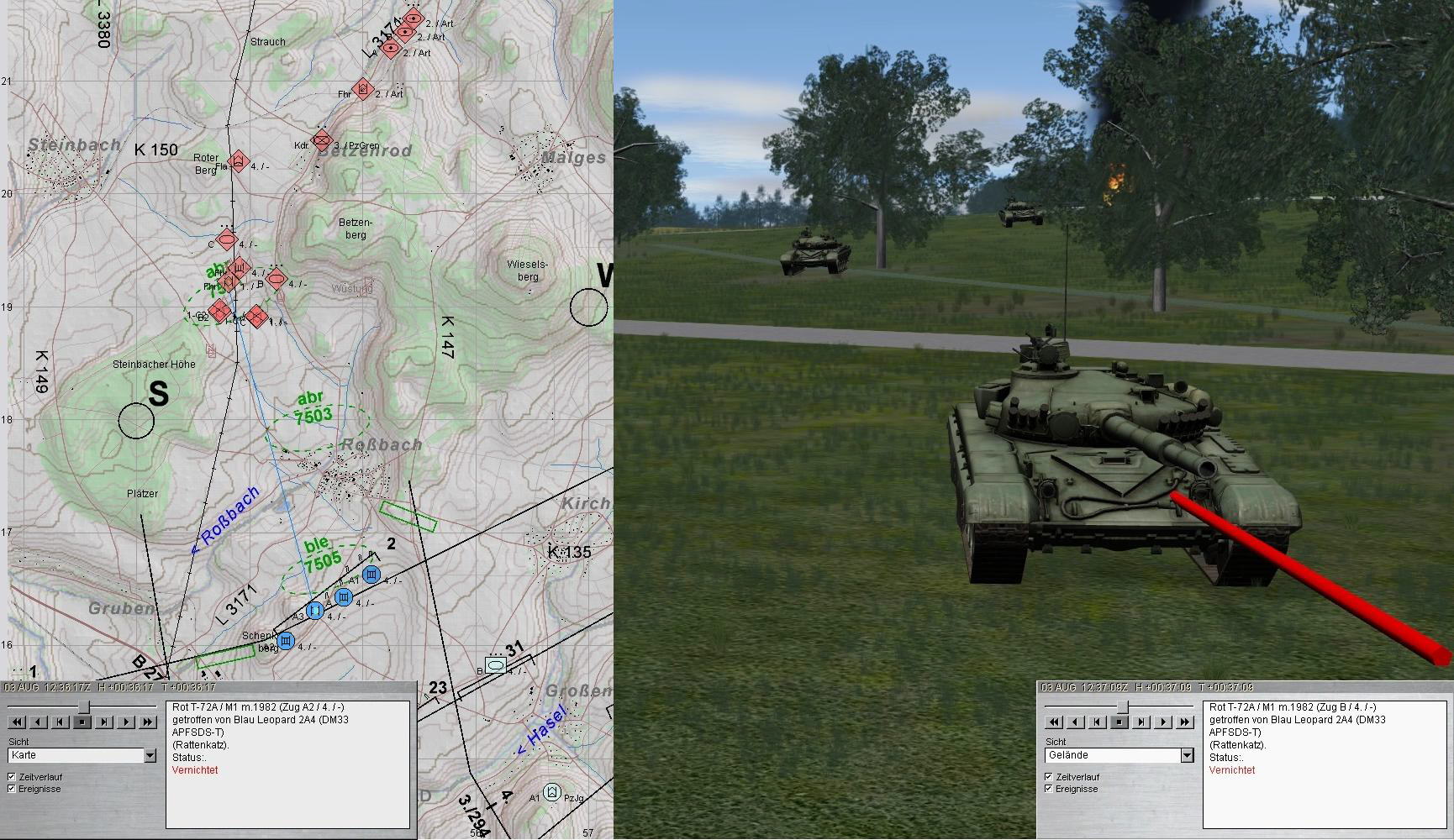 A-Zg musste zwar frühzeitig Stellung 2 aufgeben, konnte aber die Feindpanzer und -schützenpanzer letztlich aus Stellung 23 vernichten.