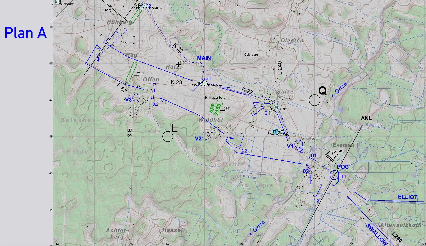 A nahm die geplante Aufnahmestellung ein. Ein SpähTrp der RSDG nahm Verbindung auf und informierte A bzgl. ausweichender UK-Kräfte.
