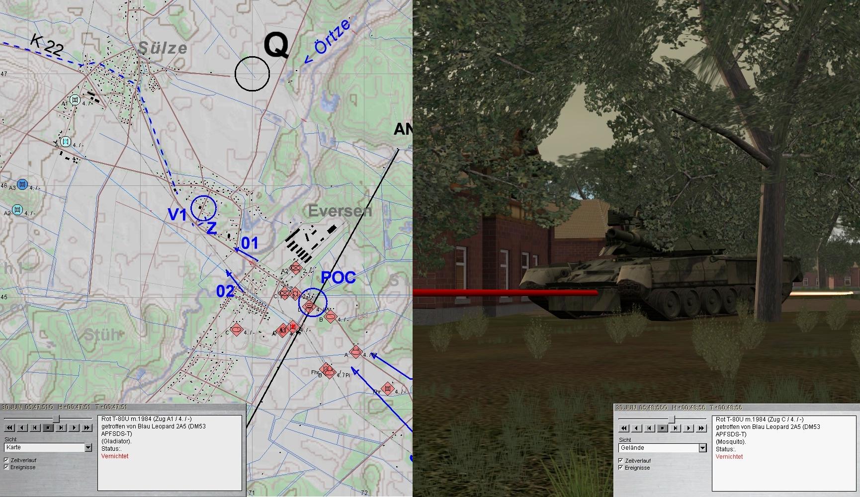 Nun griffen T-80 ins Geschehen ein. A verhinderte zunächst das Überwinden der ÖRTZE: