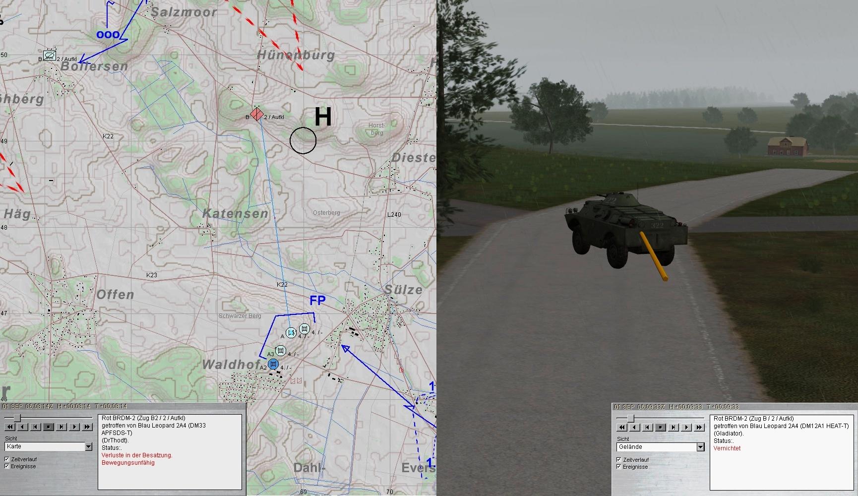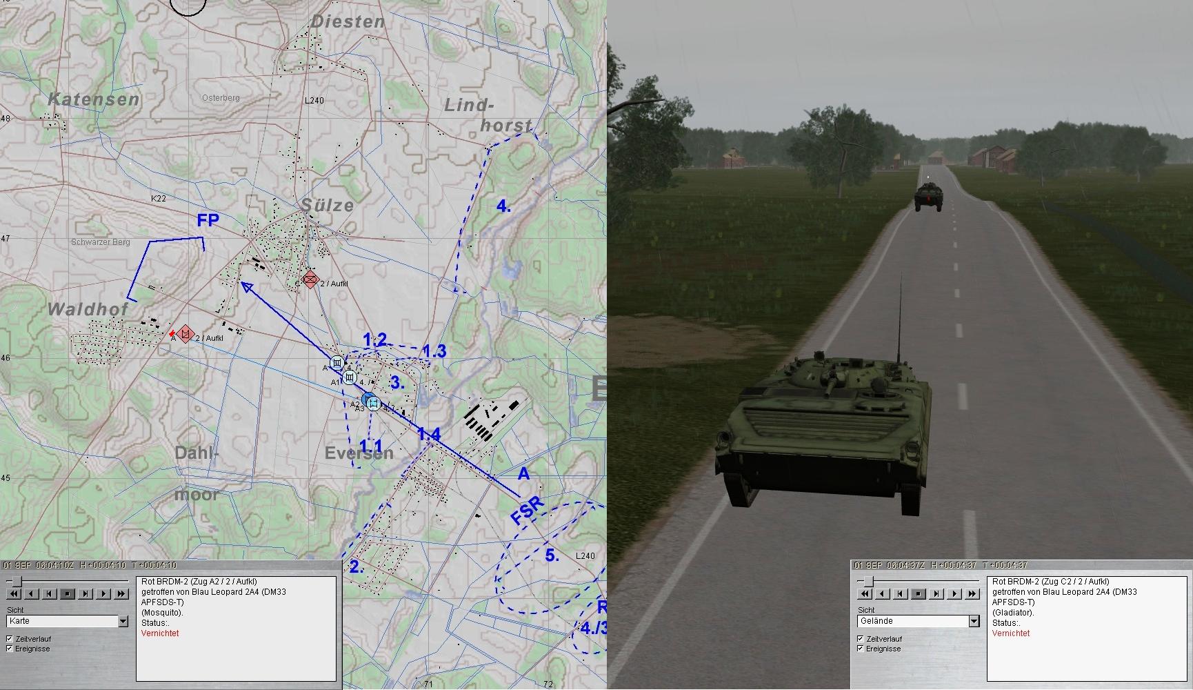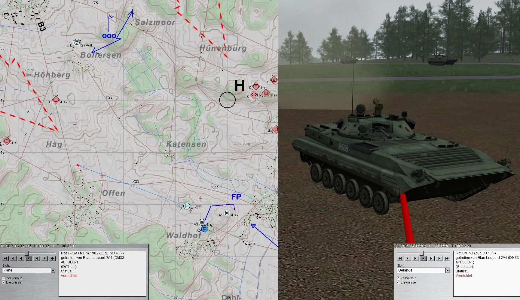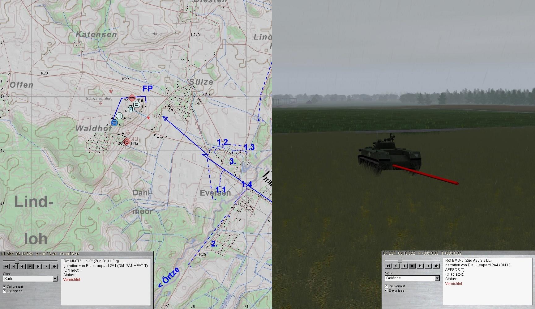 Als die Munition von A1 zur Neige ging, übernahm A2 und A1 wich zum MunTrp aus. Die 2. BMP-Kp im N konnte gestoppt werden.