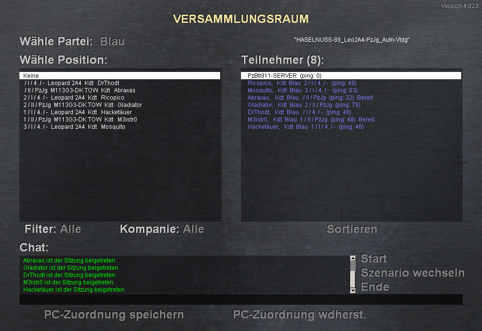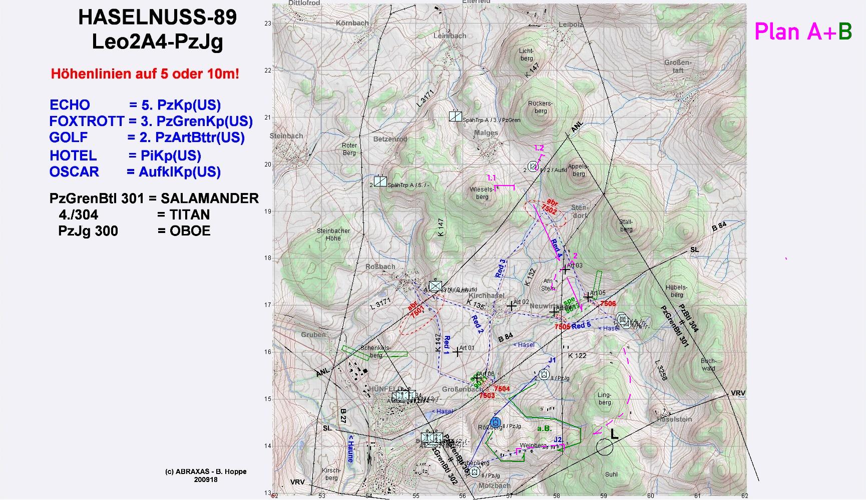 Die Aufnahme der US-Kräfte konnte abgeschlossen werden. A-Zg wurde von A2 nunmehr geführt und wich kämpfend auf Stellung 2 aus. PzJgZg B eröffnete den Feuerkampf auf BMP-Kp links:
