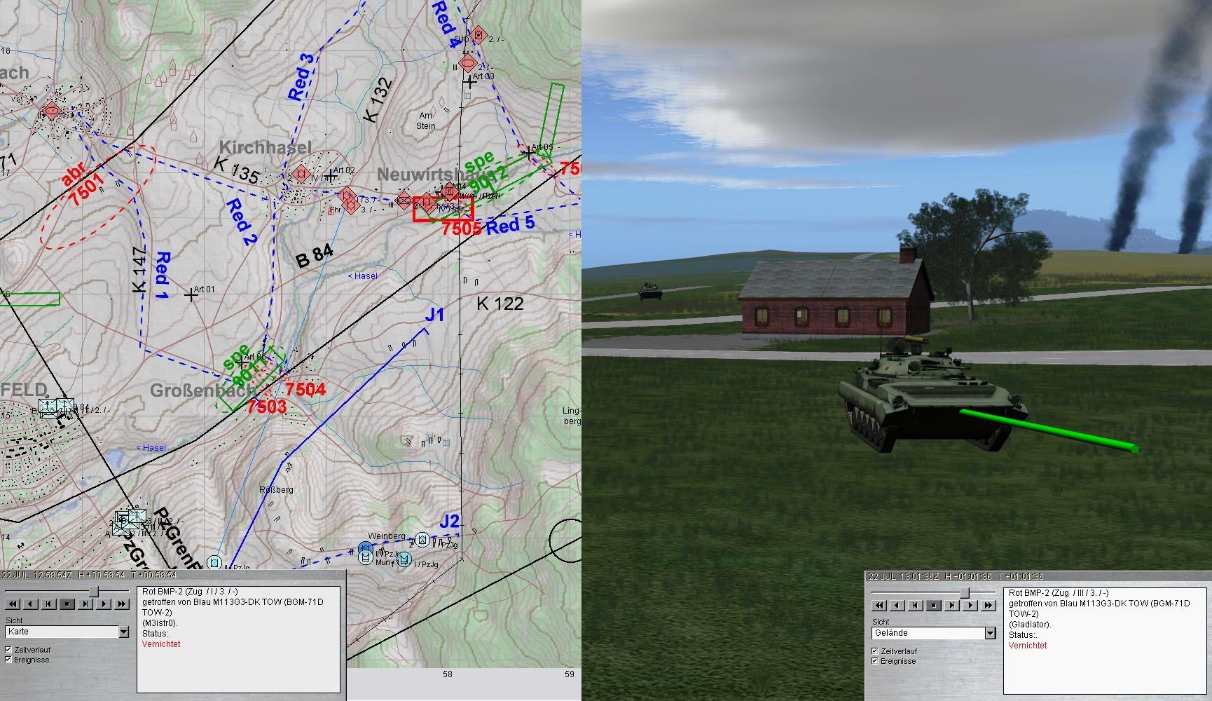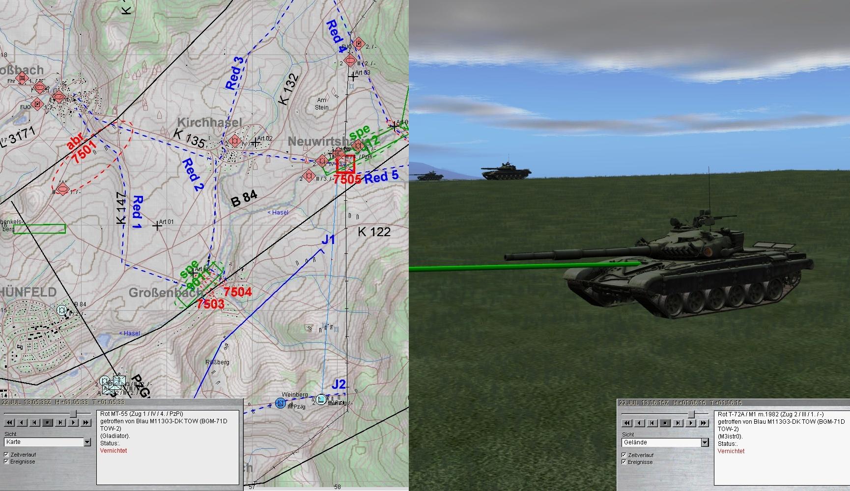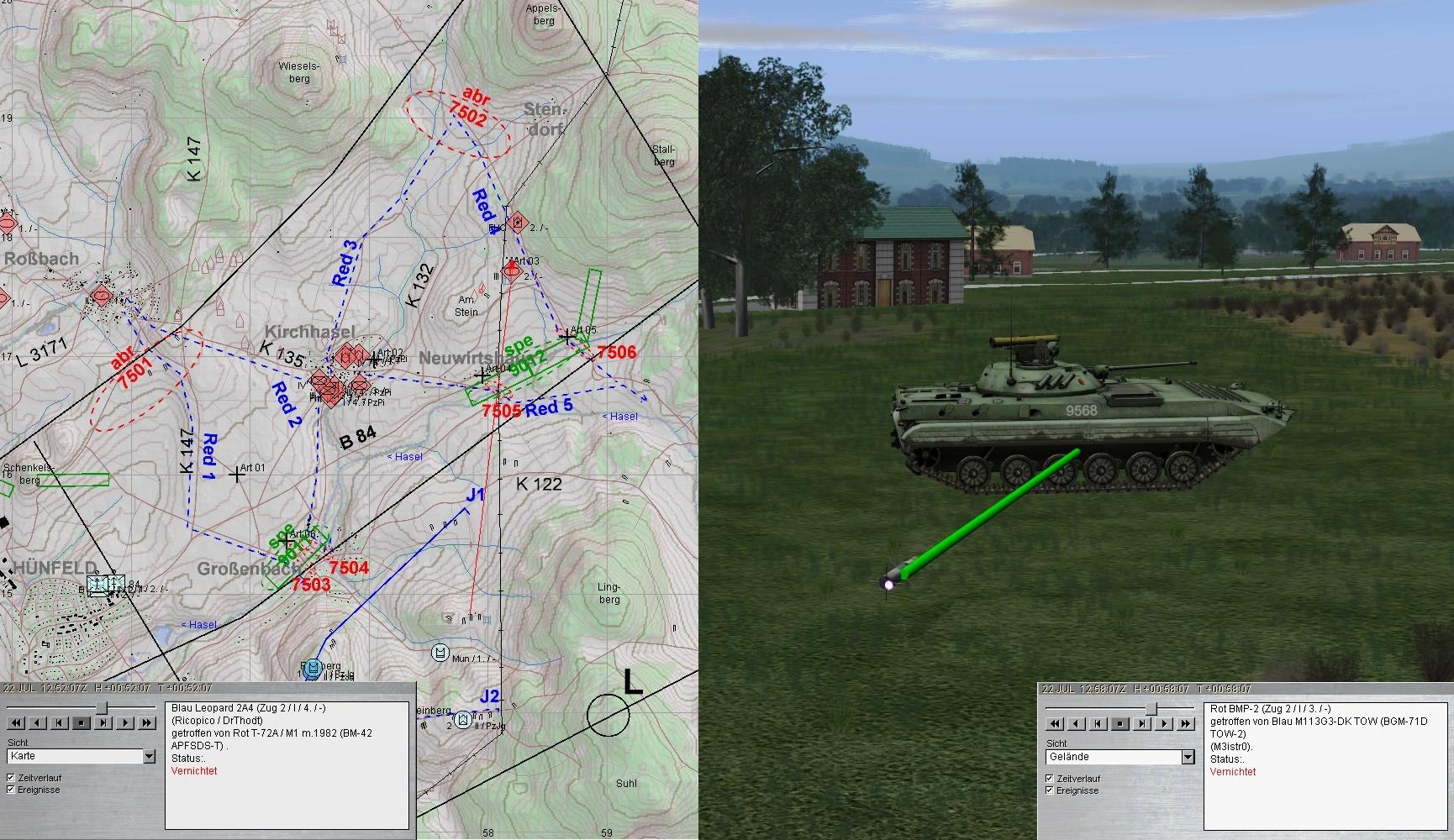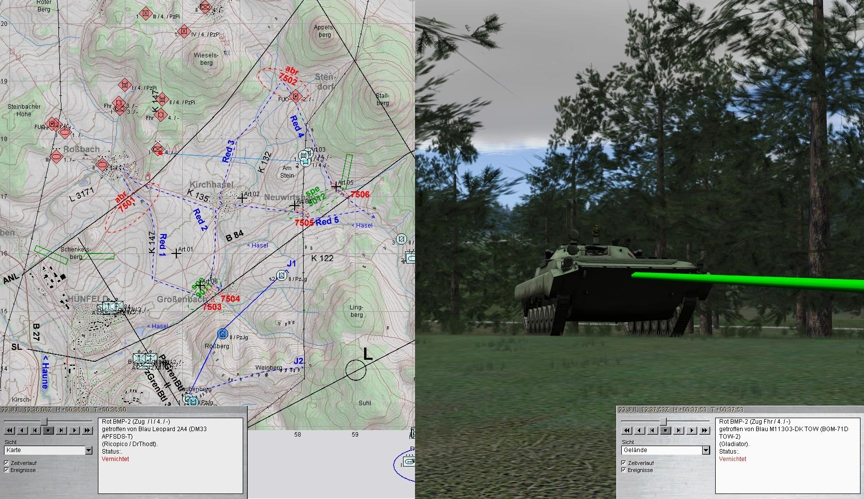 - Gefechtsfeldbeobachtung optimieren - zum Zeitpunkt des Treffers hatte ich die BMP-Kp nw von Kirchhasel am Wickel und habe die Kampfpanzer gar nicht wahrgenommen.