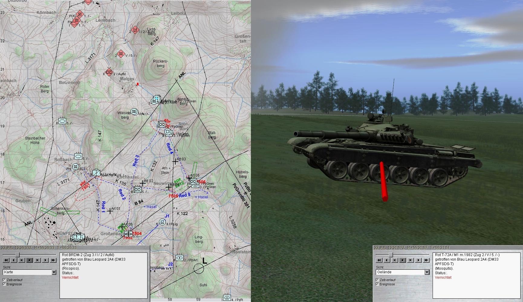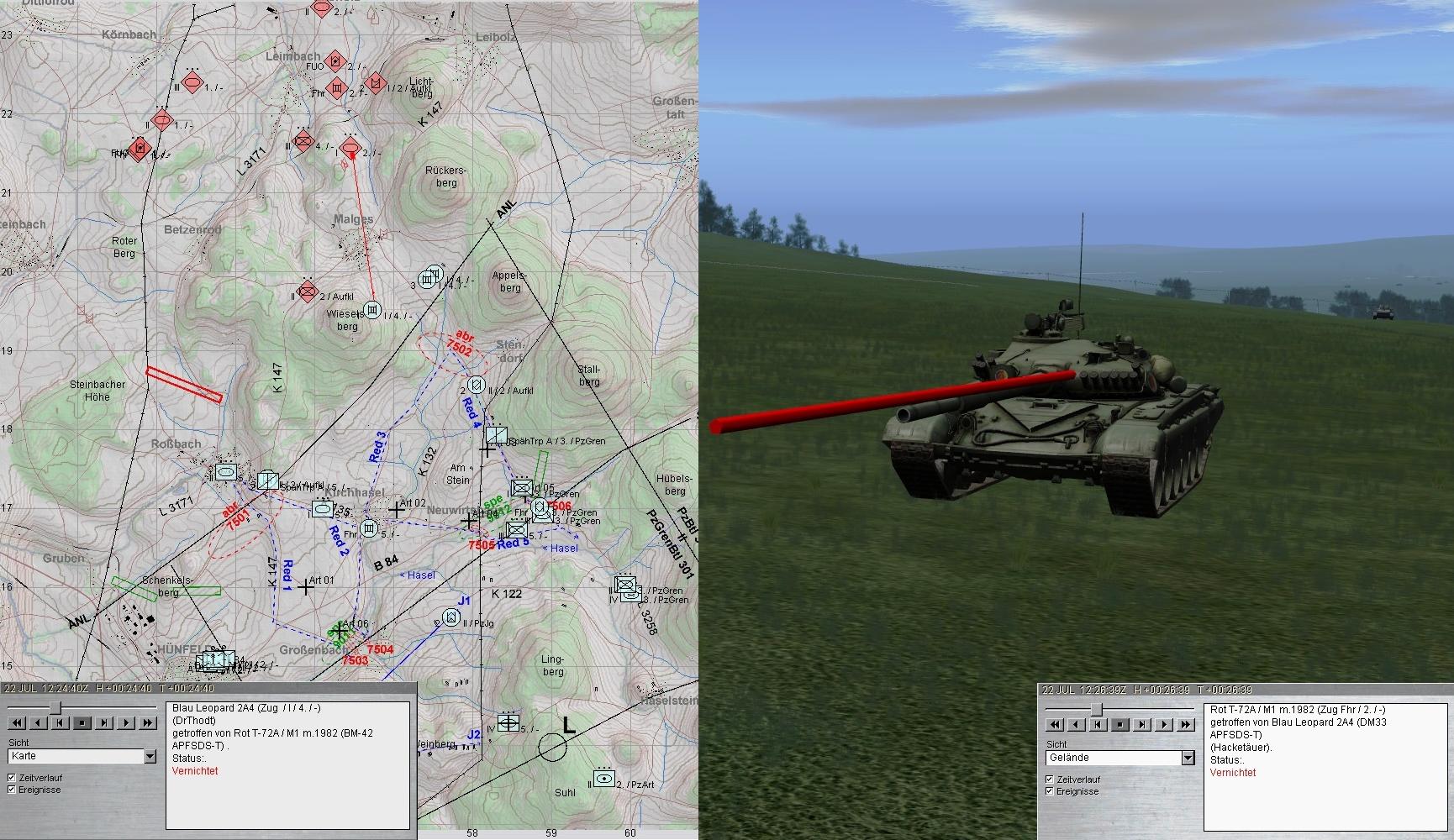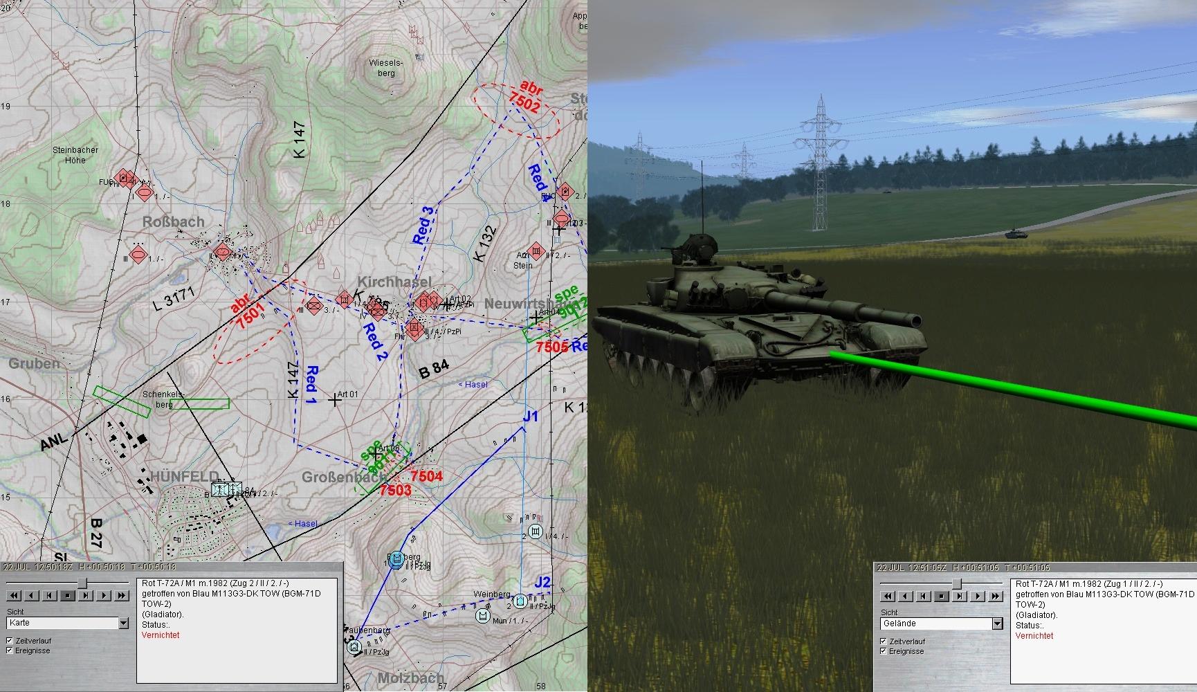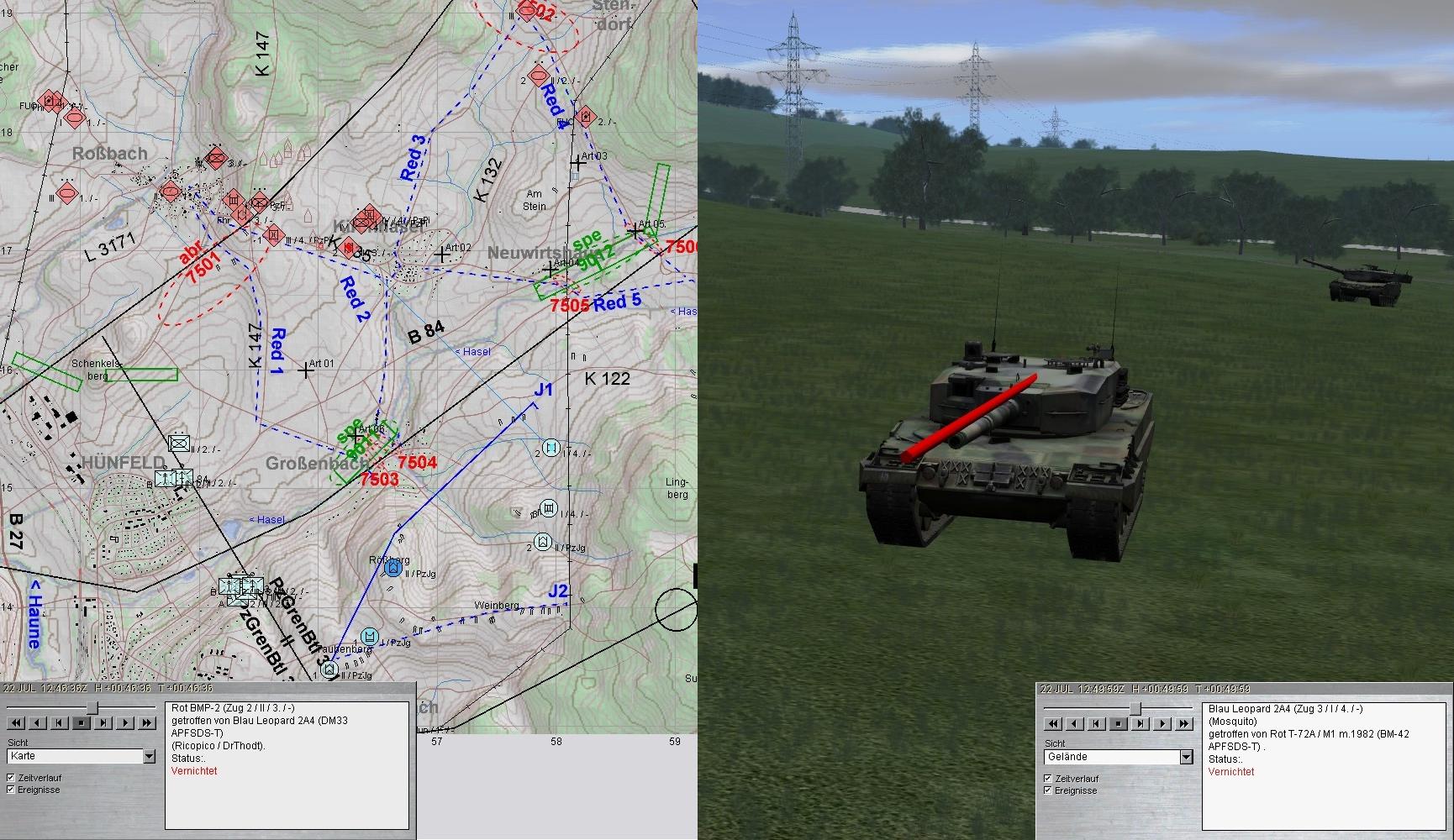 - Gefechtsfeldbeobachtung optimieren - zum Zeitpunkt des Treffers hatte ich die BMP-Kp nw von Kirchhasel am Wickel und habe die Kampfpanzer gar nicht wahrgenommen.